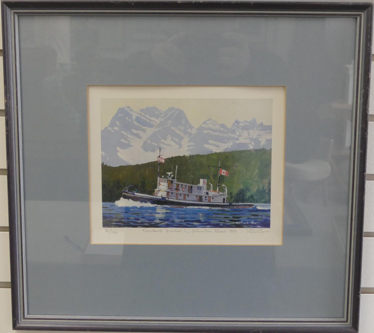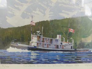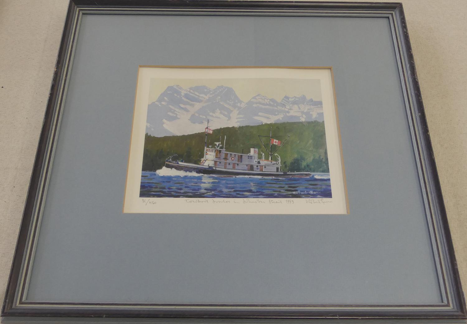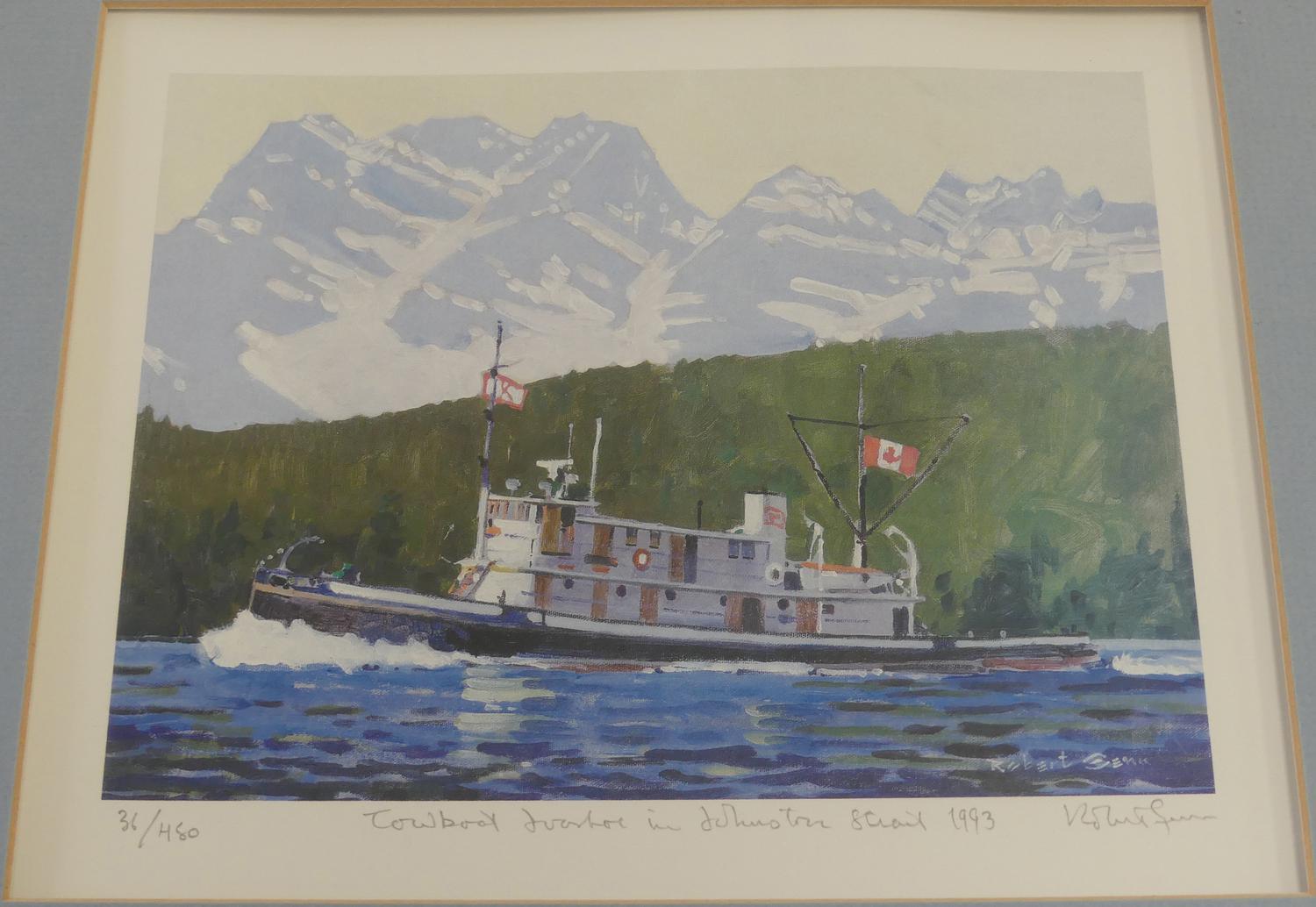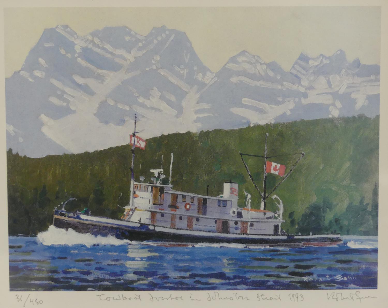 robert genn (1936-2014), limited edition print #36/450, dated 1993, 8" x 9", "tow boat - johnstone straight"