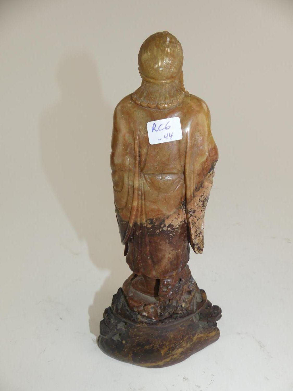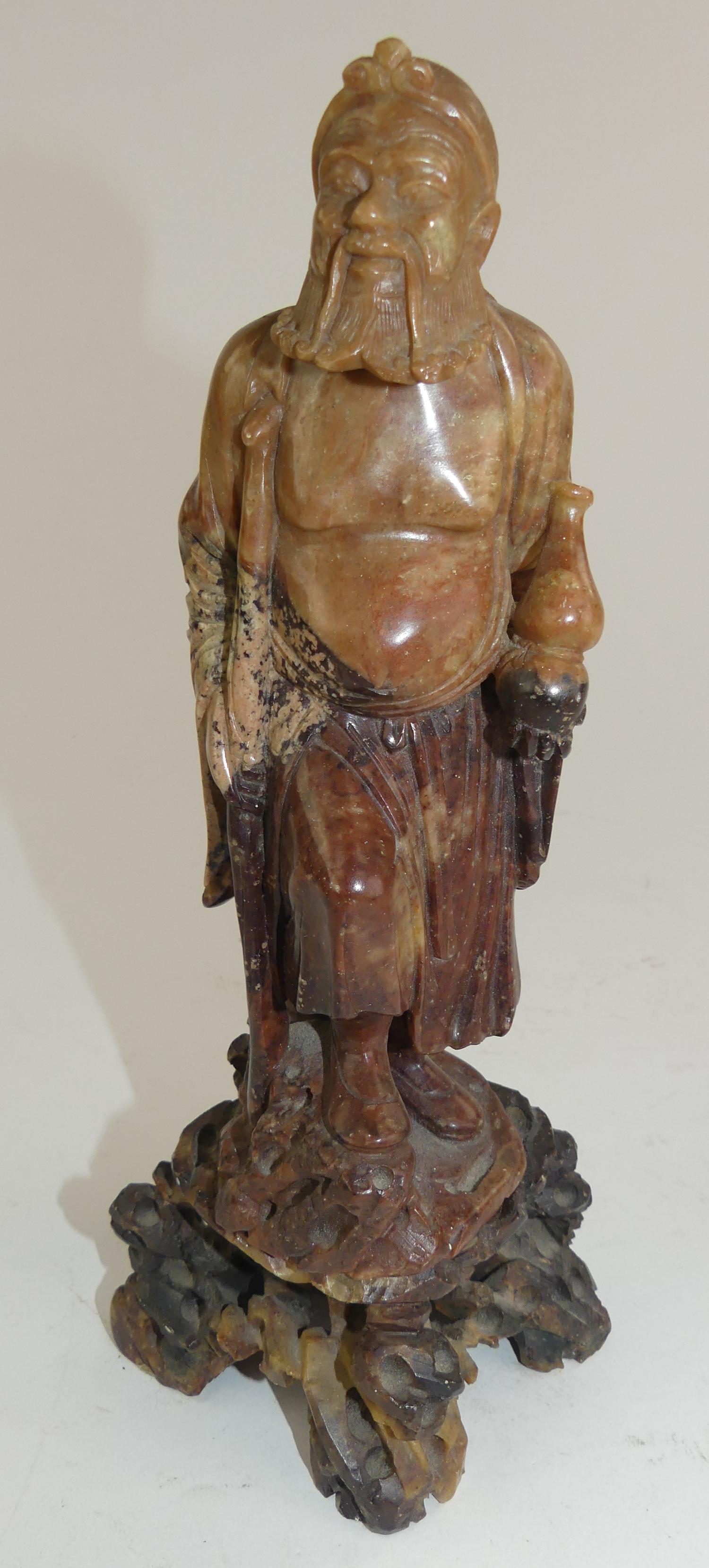 chinese carved soap stone figure on stand, ht 9 1/2"