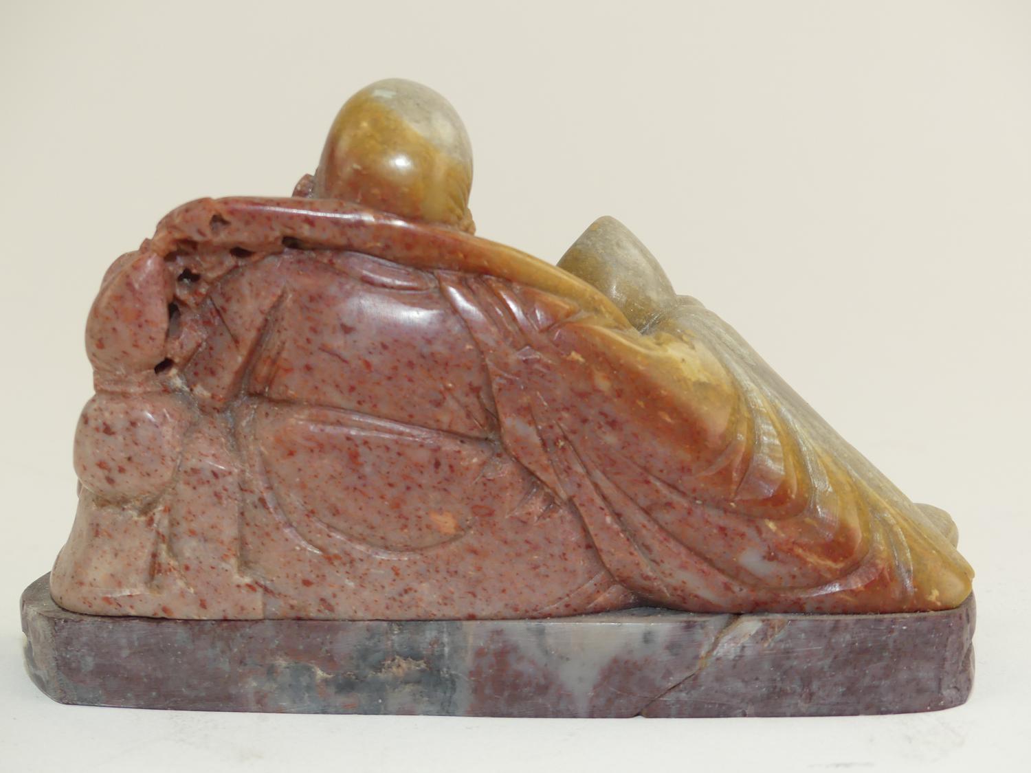 chinese carved hardstone buddha figure on stand, 5" x 3" x 1 1/2"