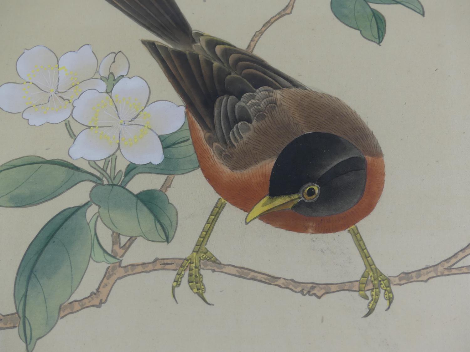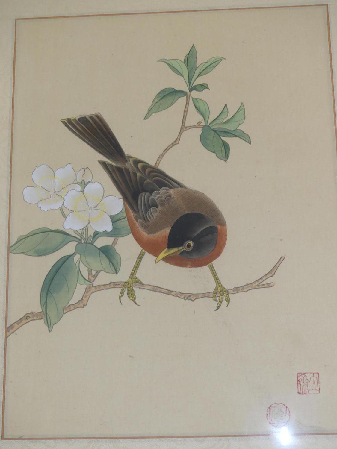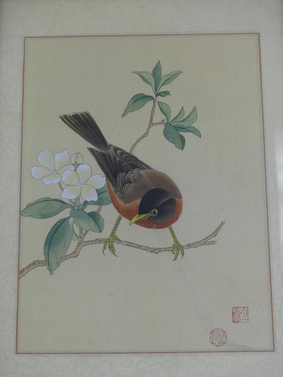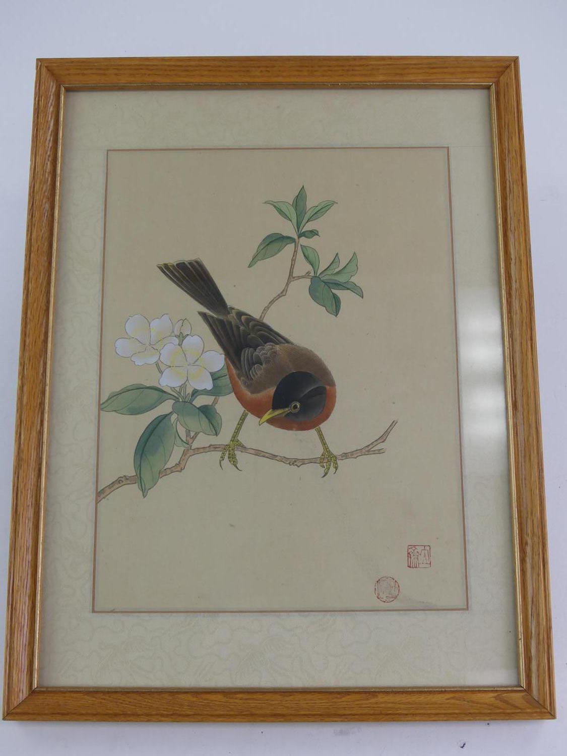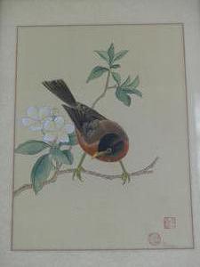 japanese woodblock print, 12" x 9", "robin on flowering branch"