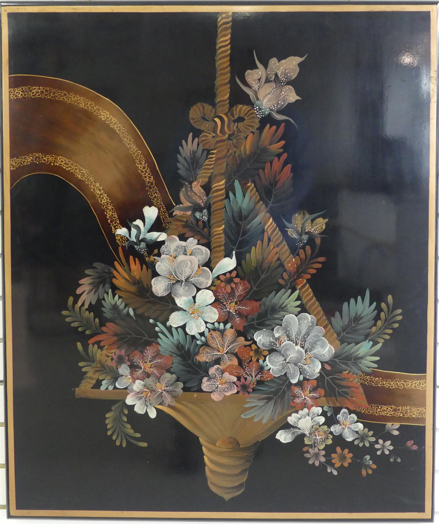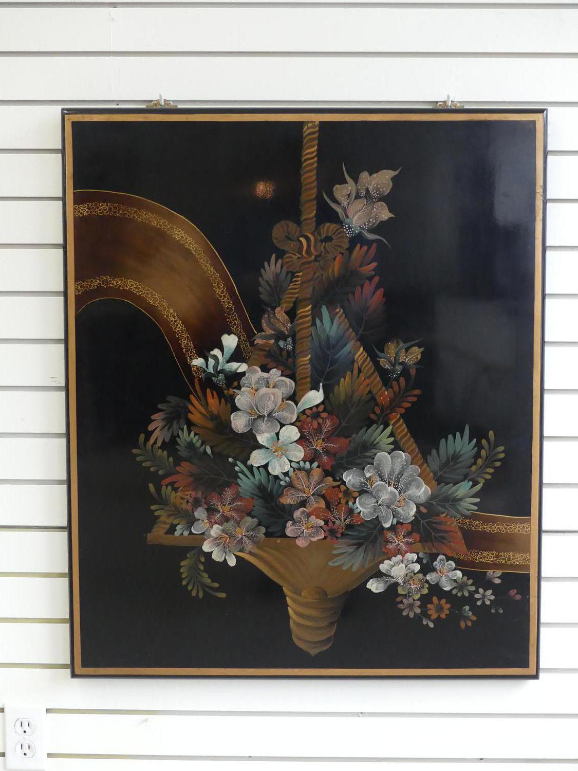 chinese gilded and painted lacquered panel, 36" x 30"