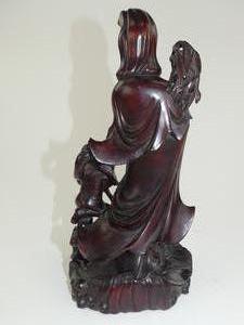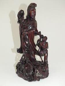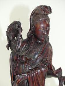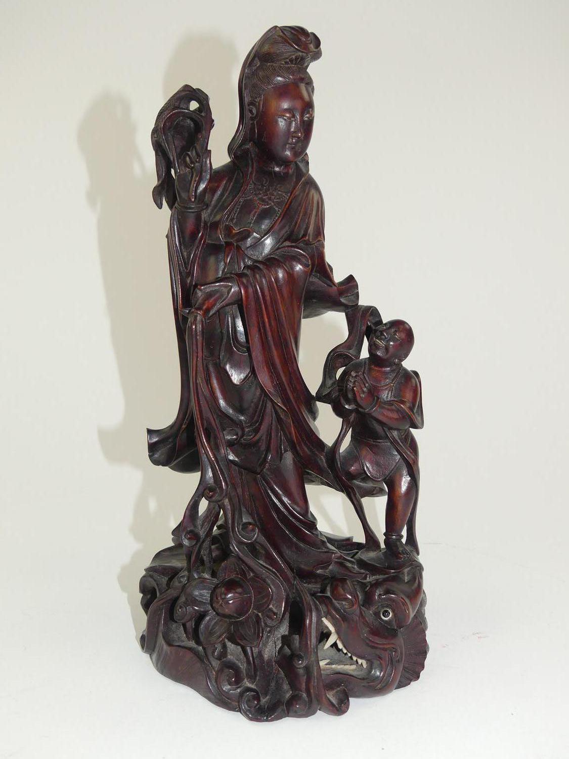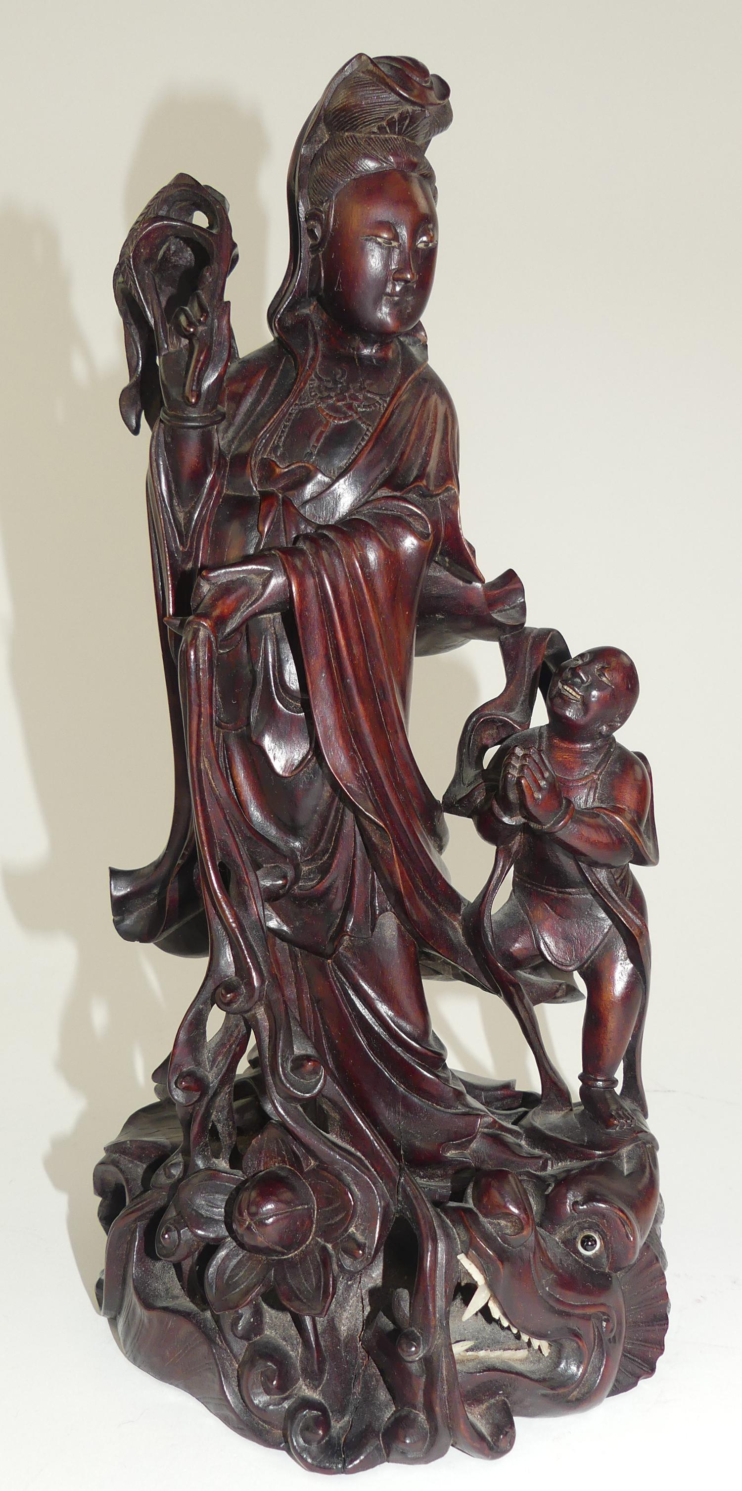 chinese carved hardwood figure of quan yin, mid 20th century, ht 12 1/2"
