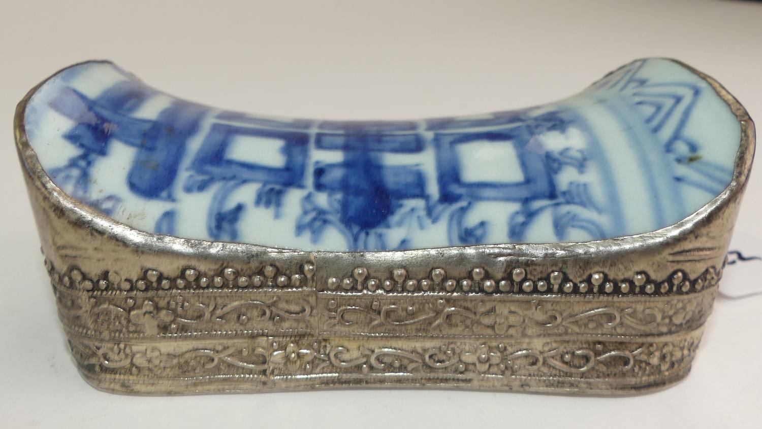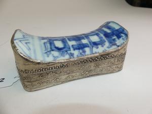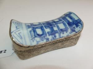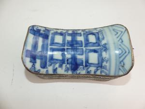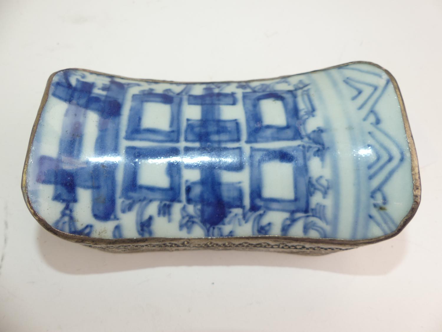 chinese blue and white porcleain inset dresser box, 5" x 3"