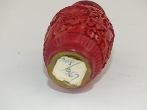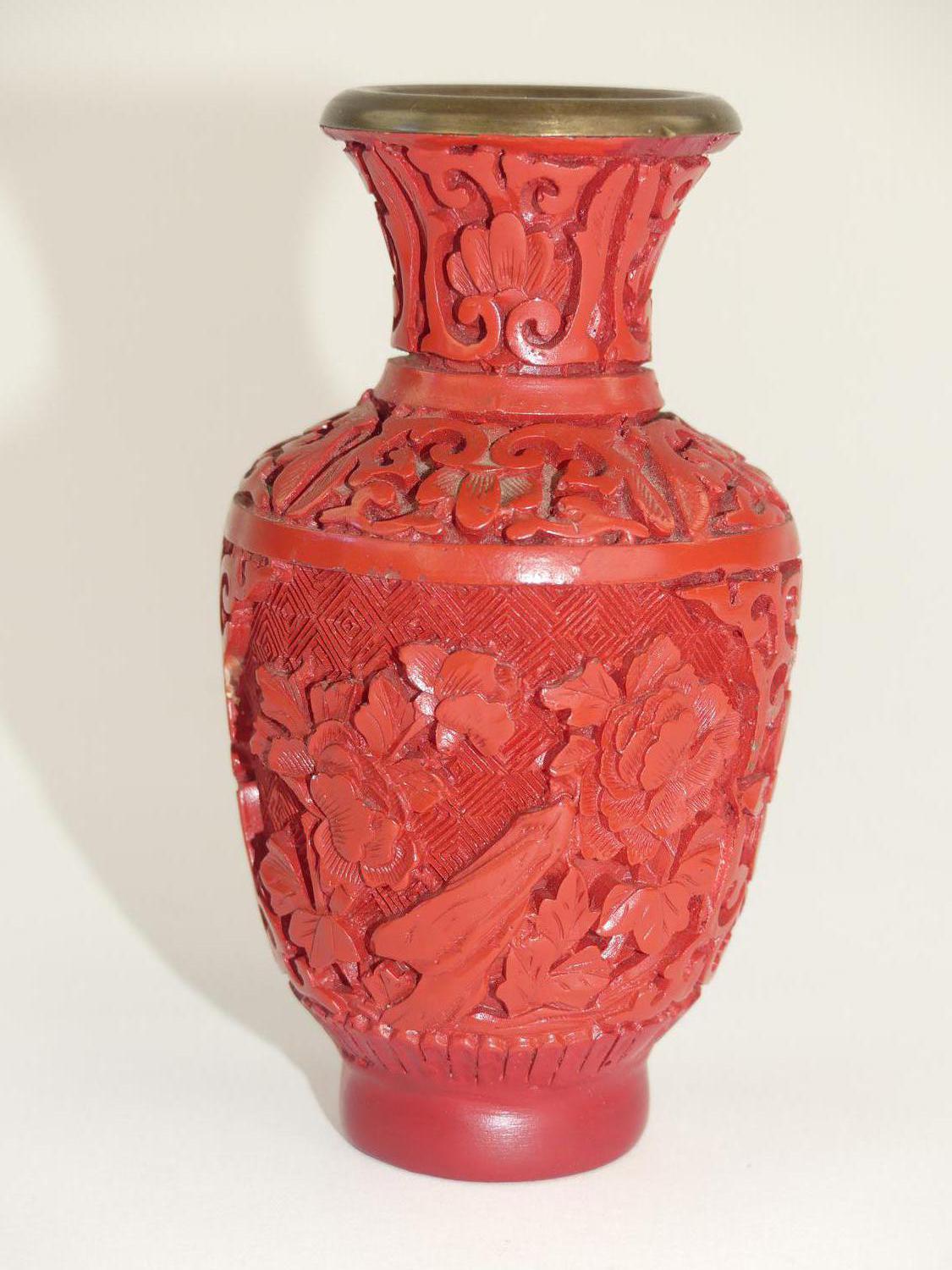 chinese cinnabar vase, ht 4"