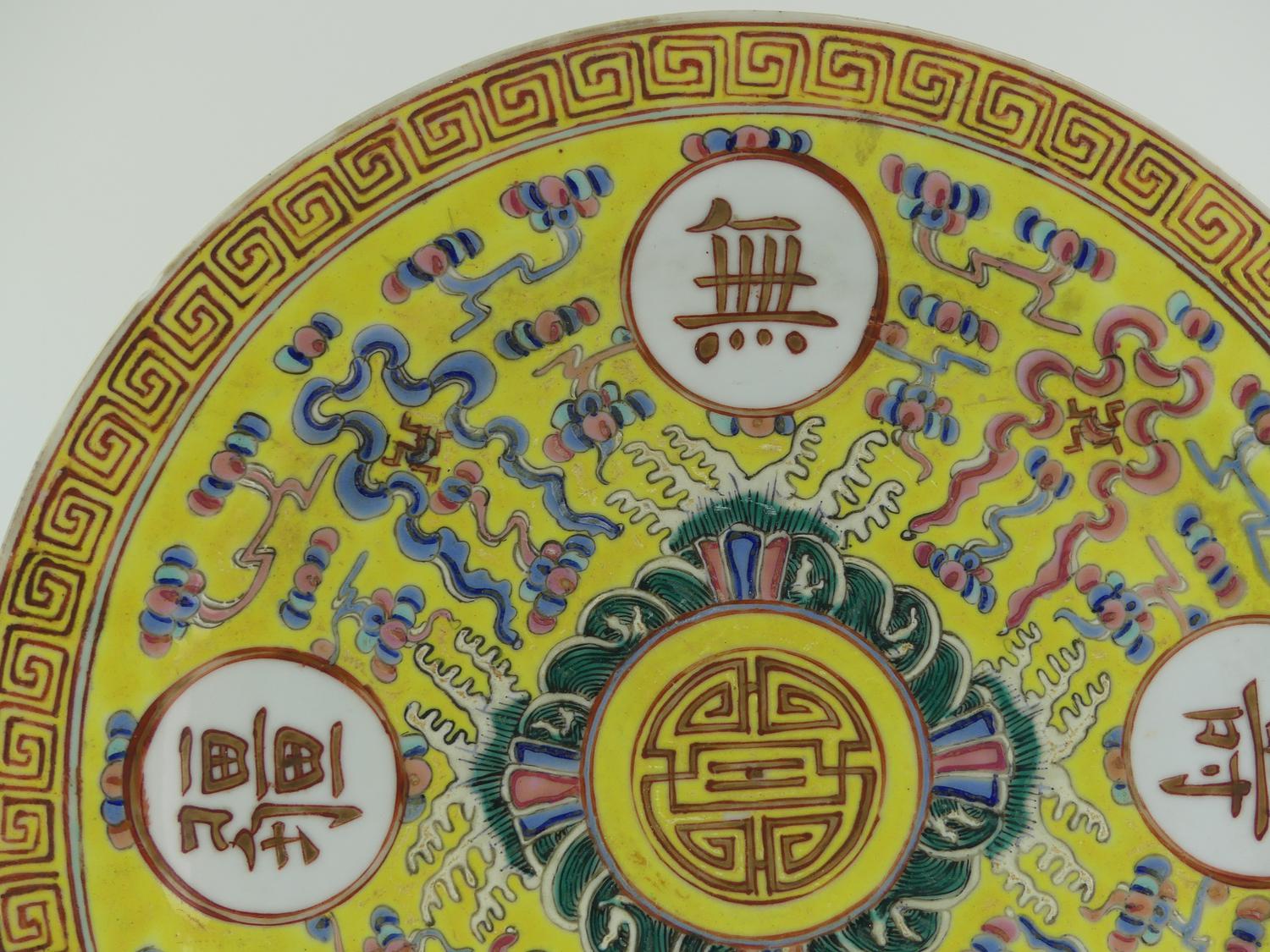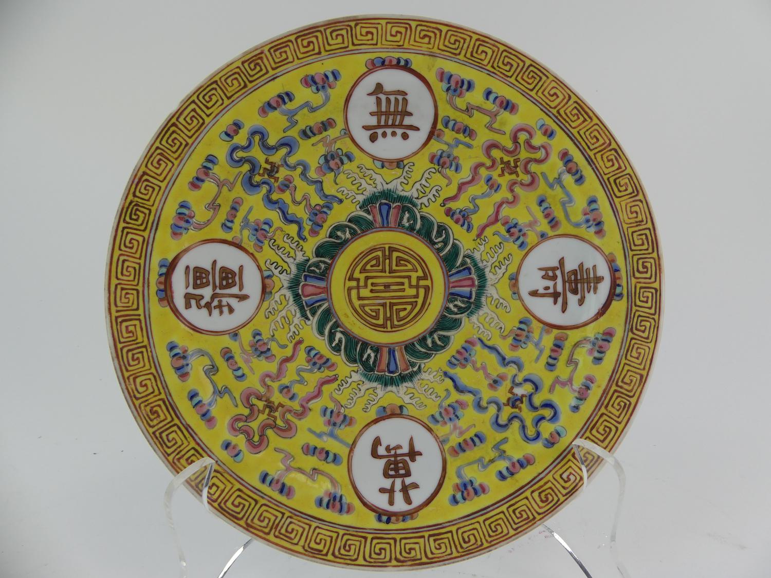 chinese yellow ground longevity plate, 6 character mark, 10" diameter