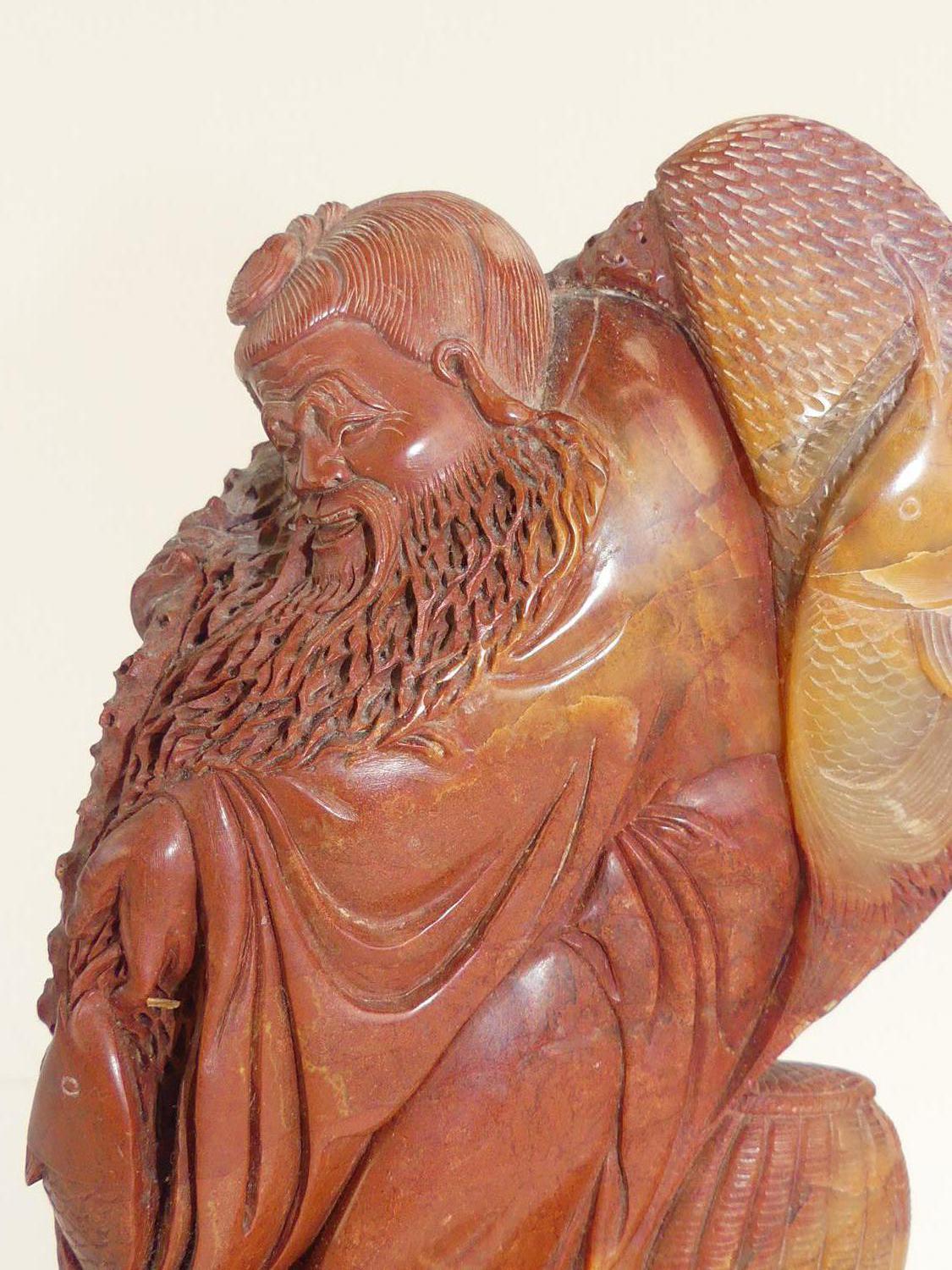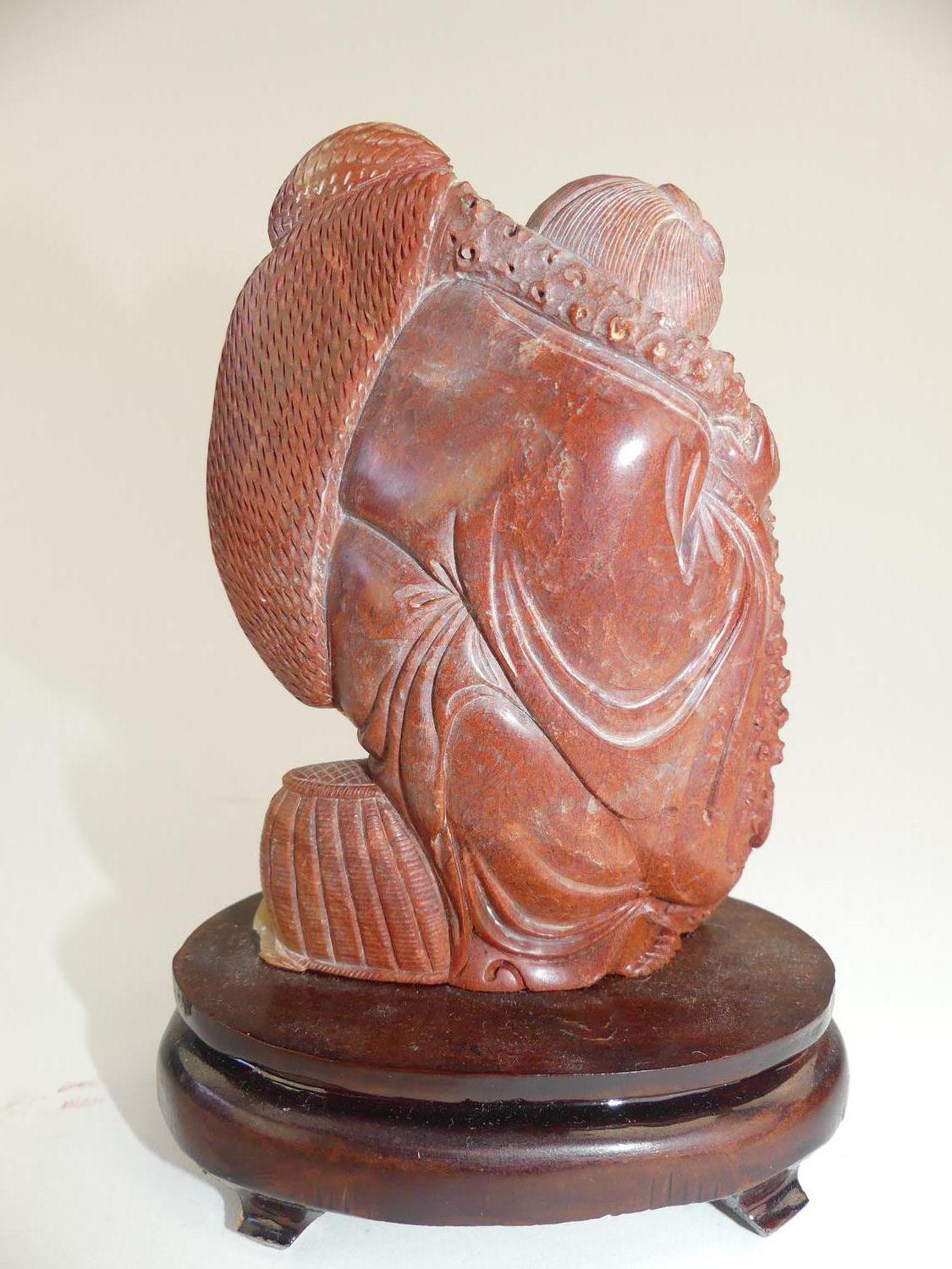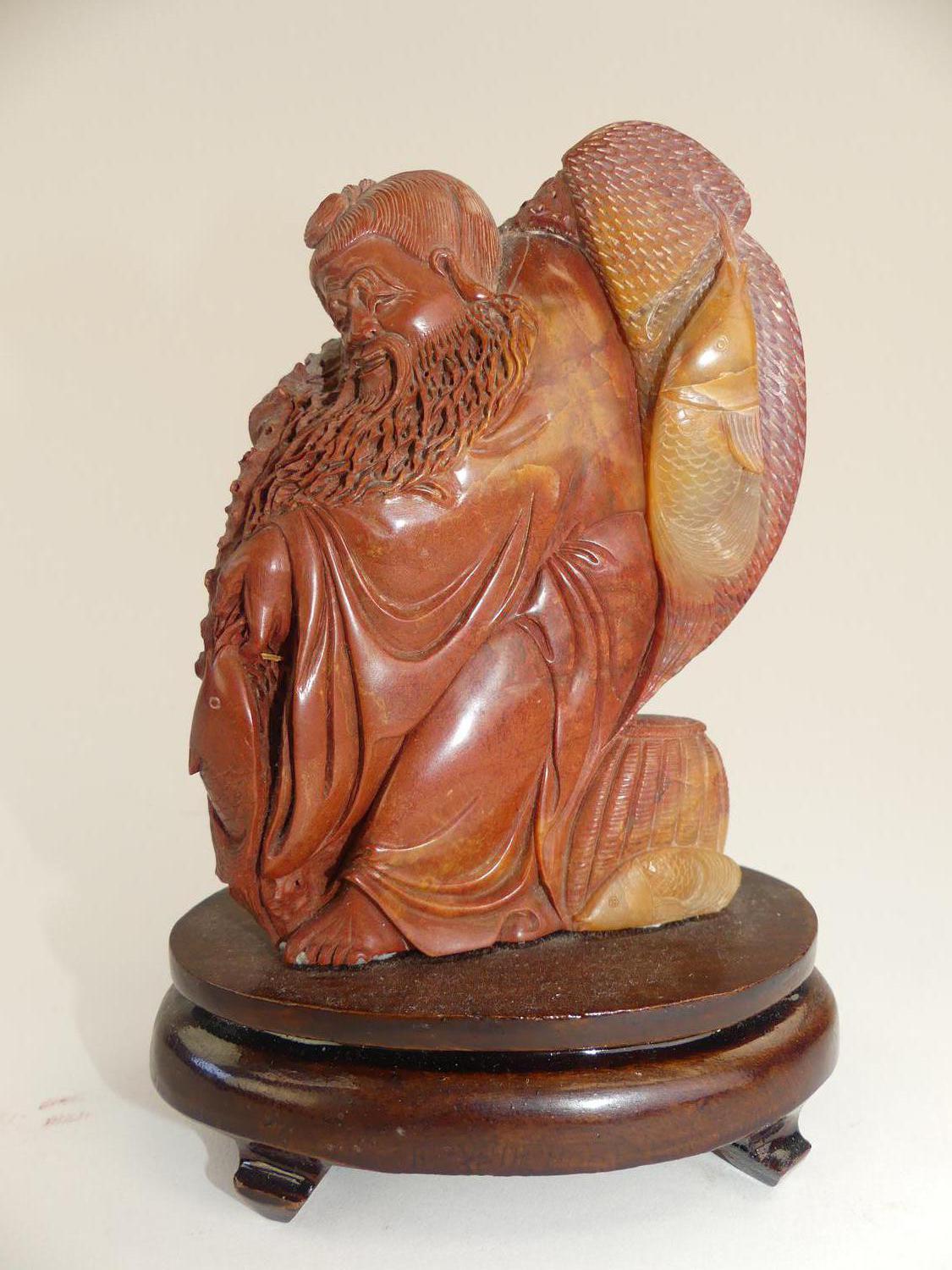 chinese carved stone figure of a fisherman, ht 5 1/2"