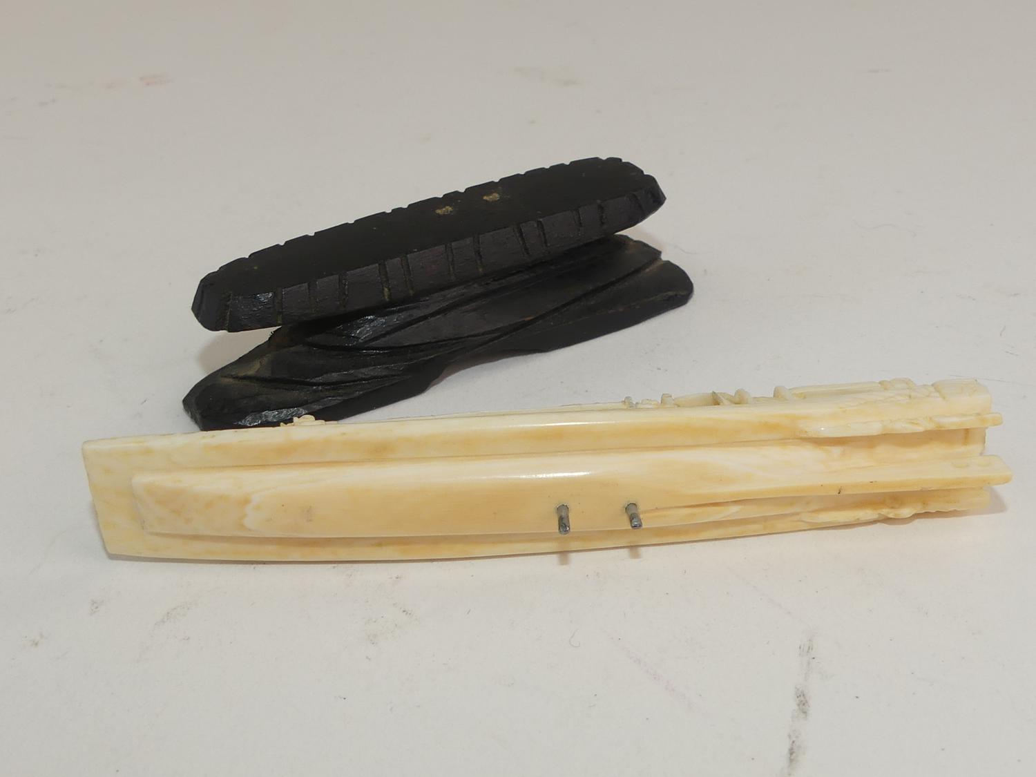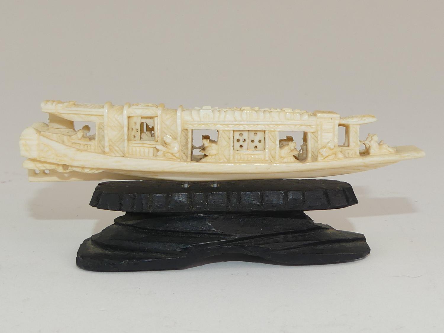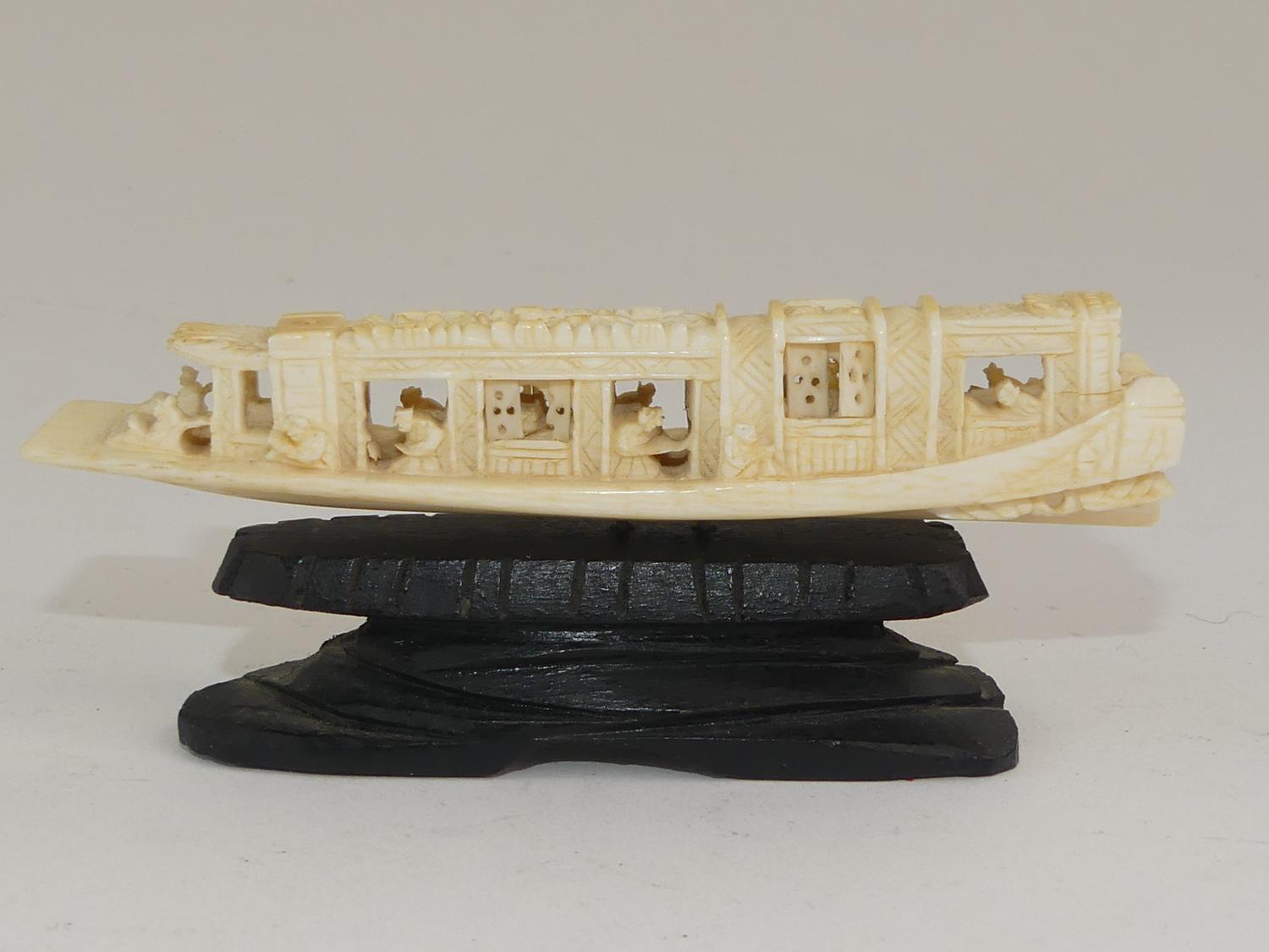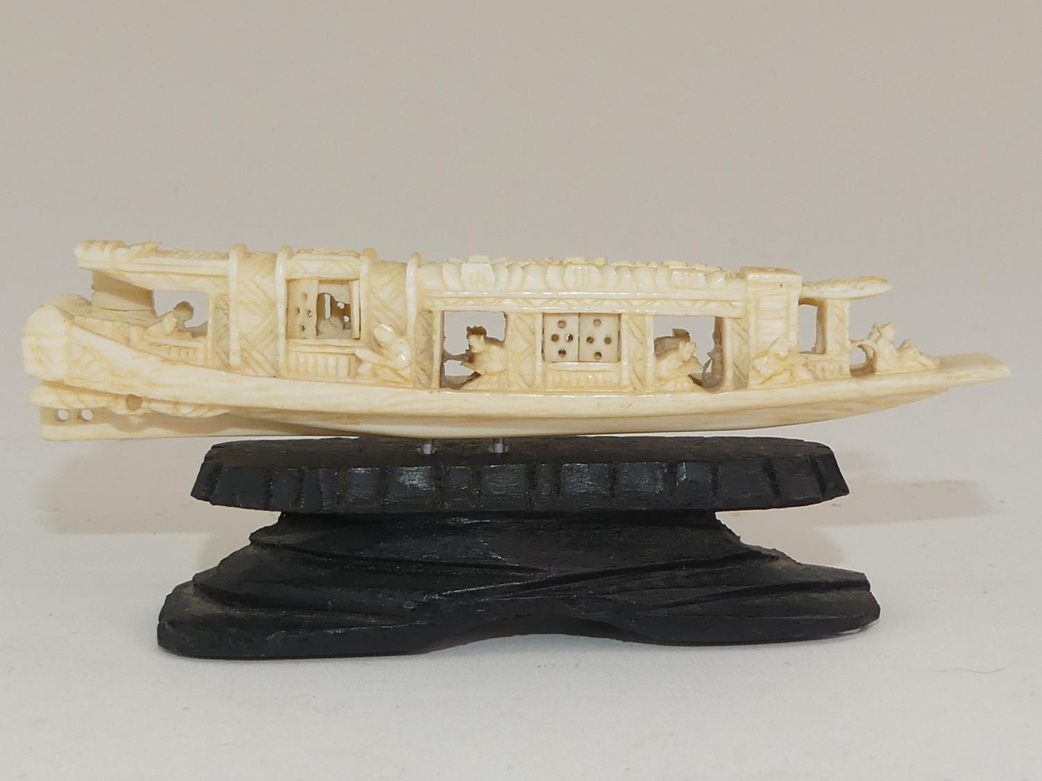chinese carved ivory boat on stand, early 20th century, length 4"