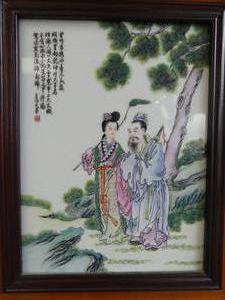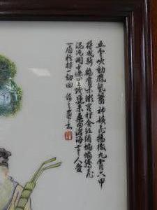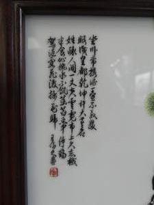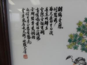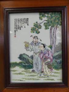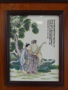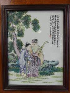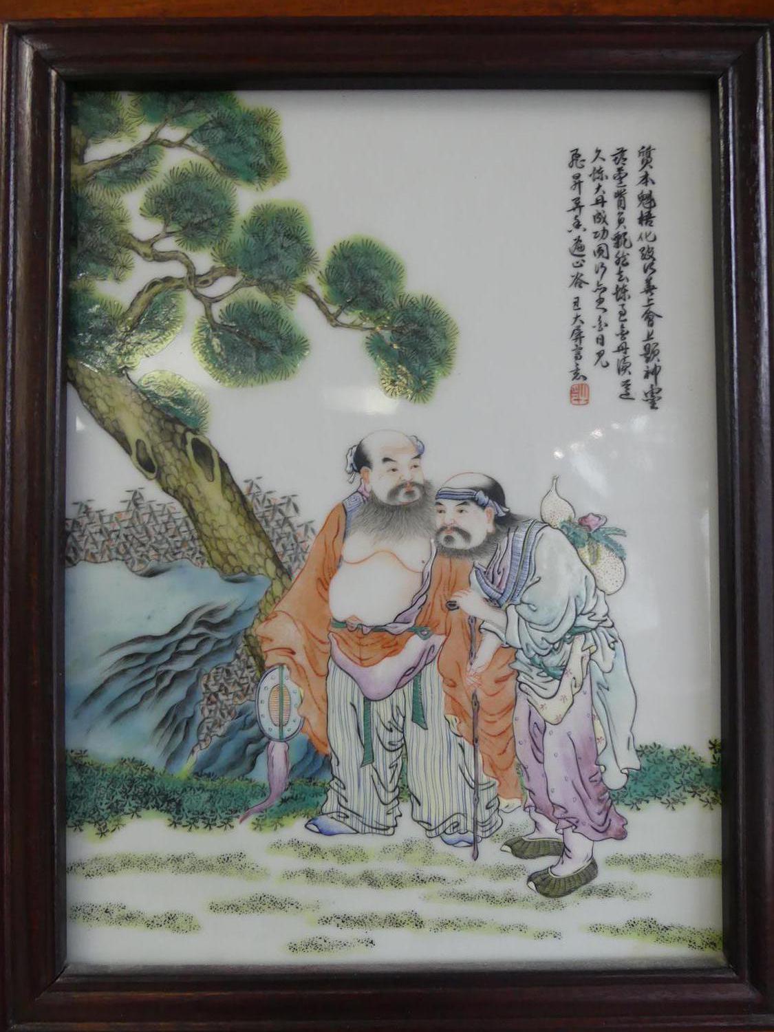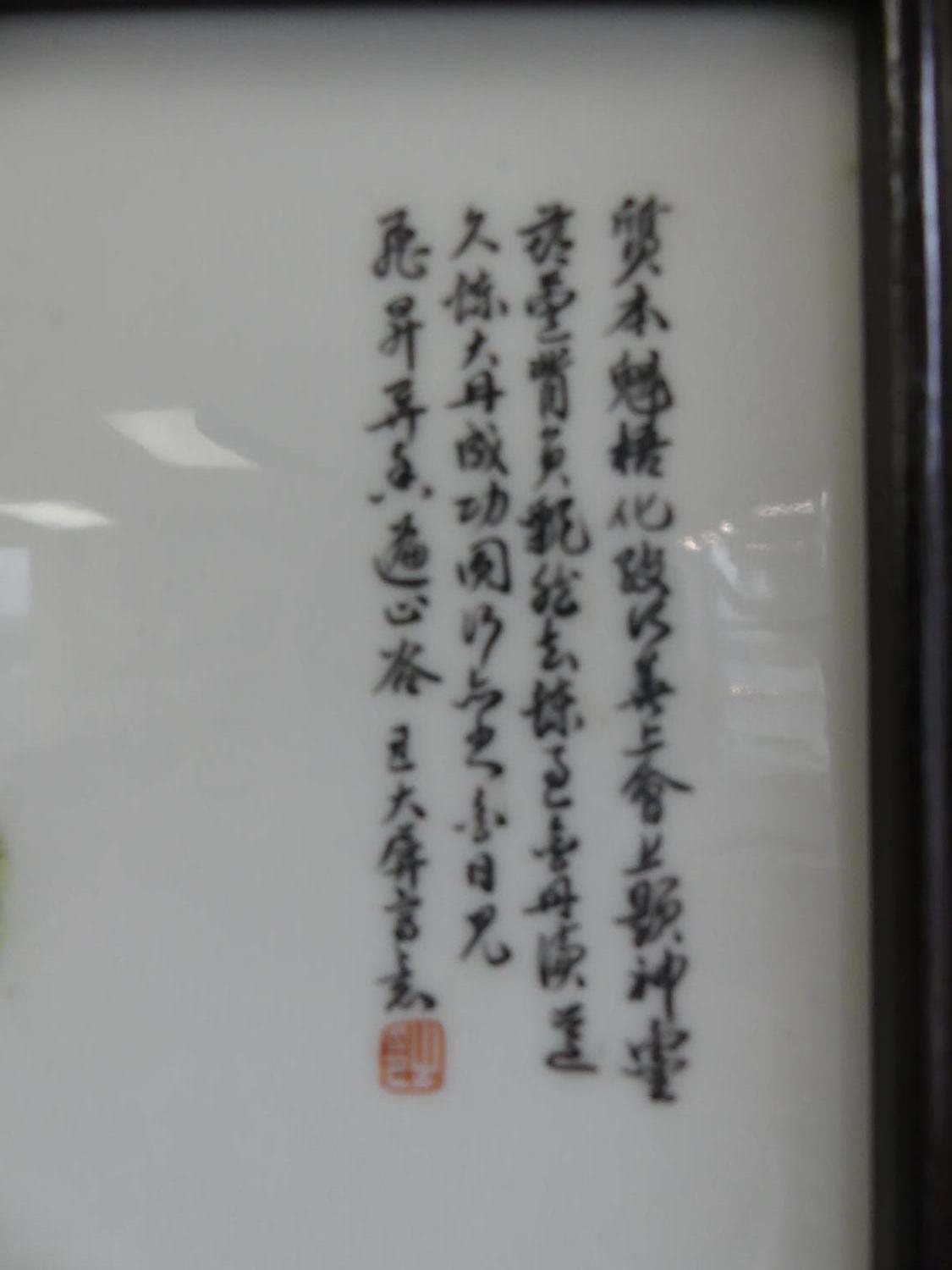 set of four hardwood framed chinese porcleain panels, 12" x 9"