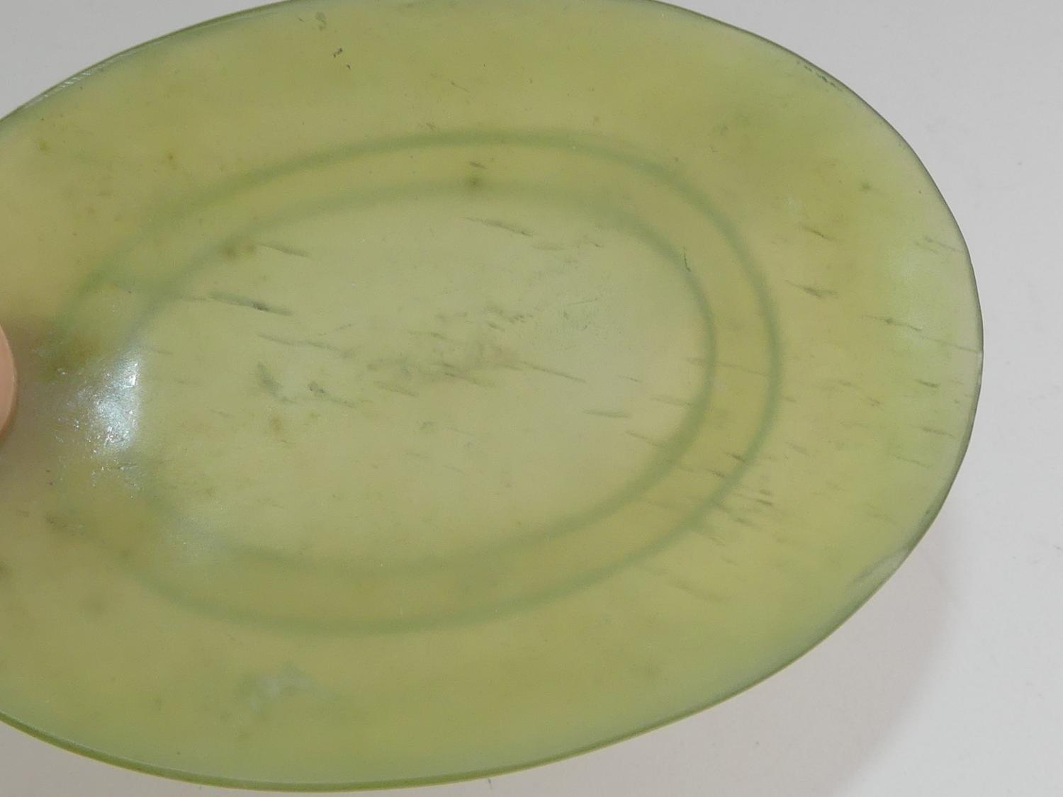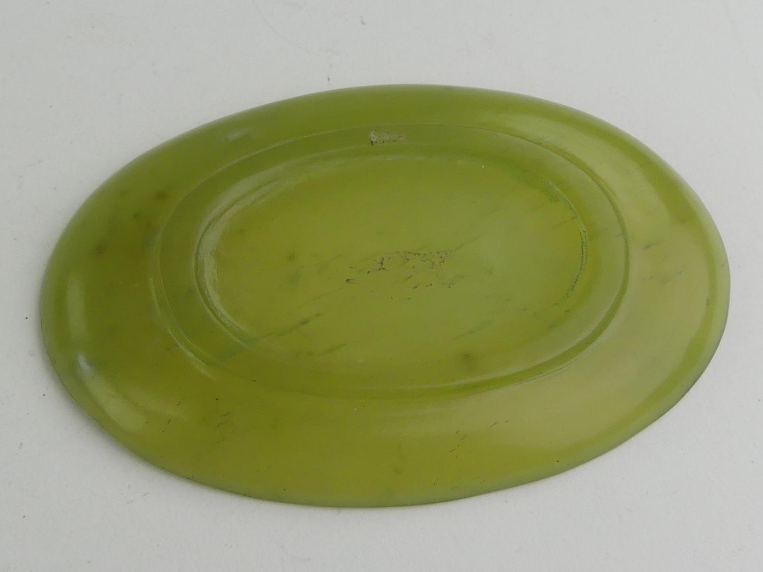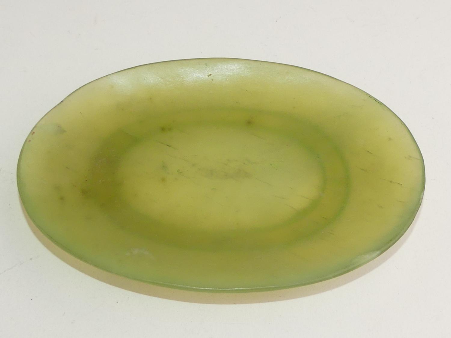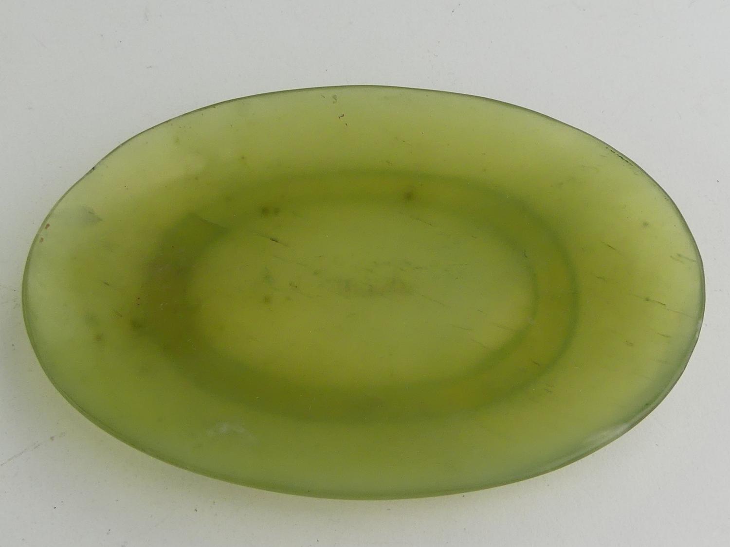 asian carved green jade dish, 4 1/2" x 3 1/4"