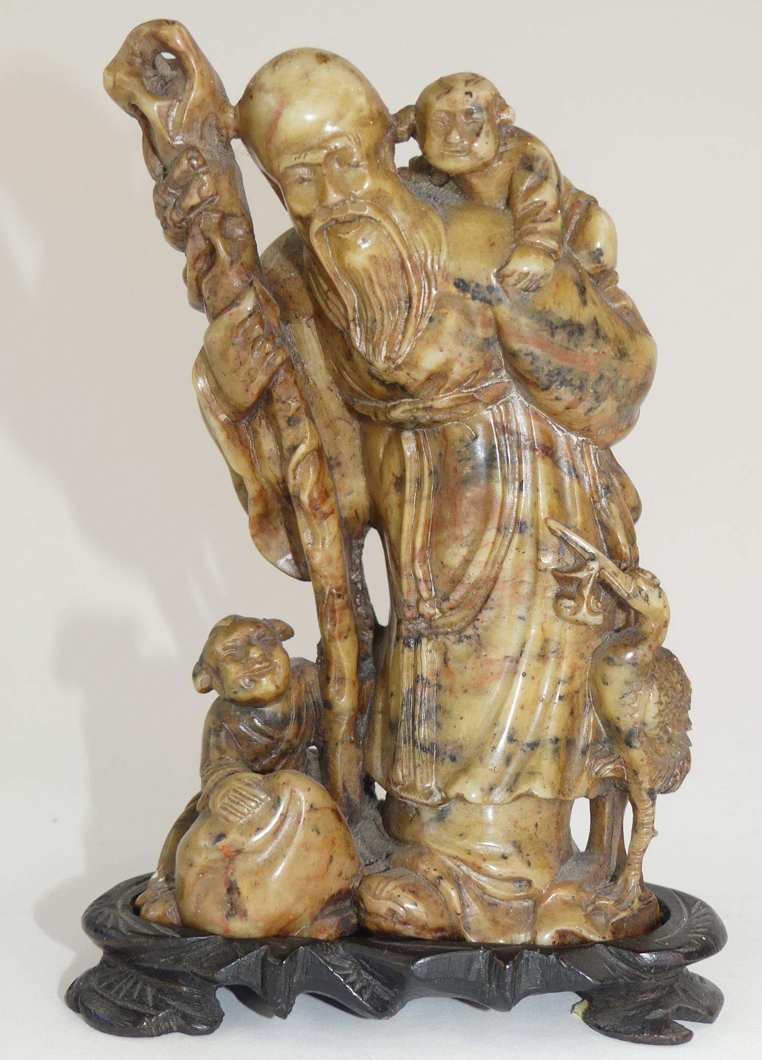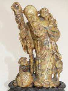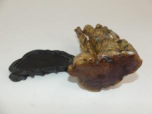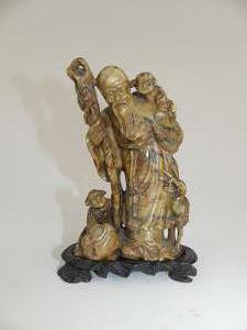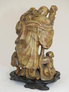 chinese carved stone figure on stand, ht 6 1/2"