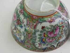 chinese canton rose bowl, 19th century, 2 1/4" x 5 1/4"