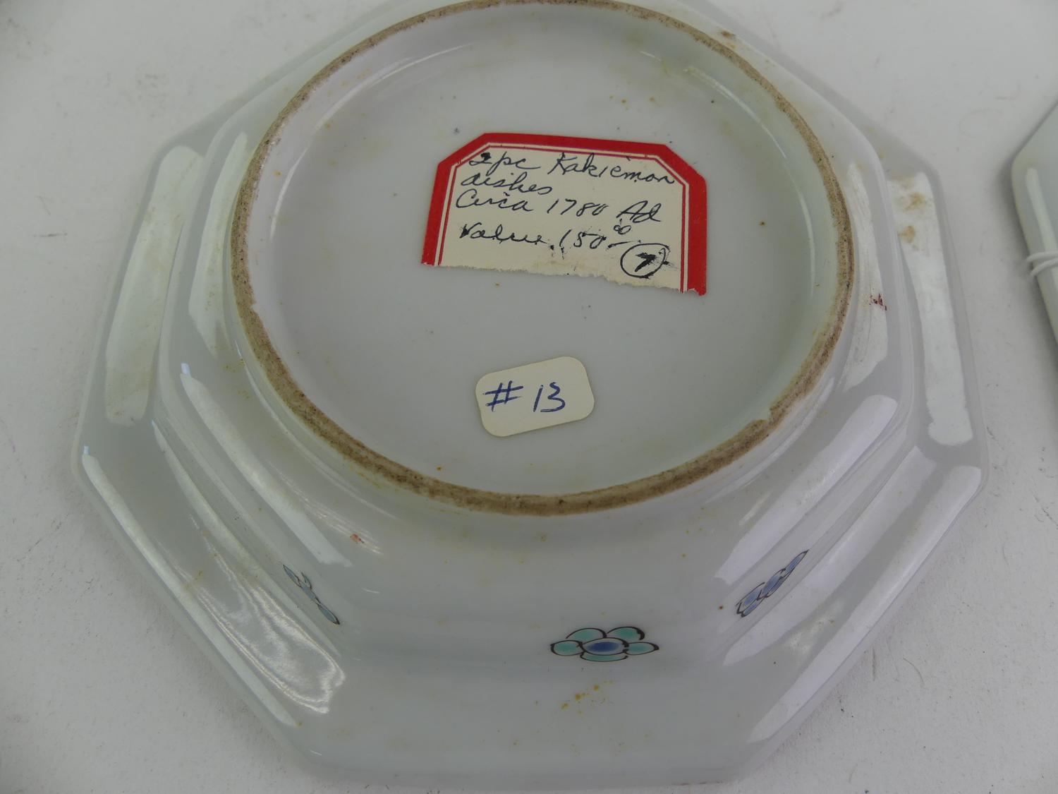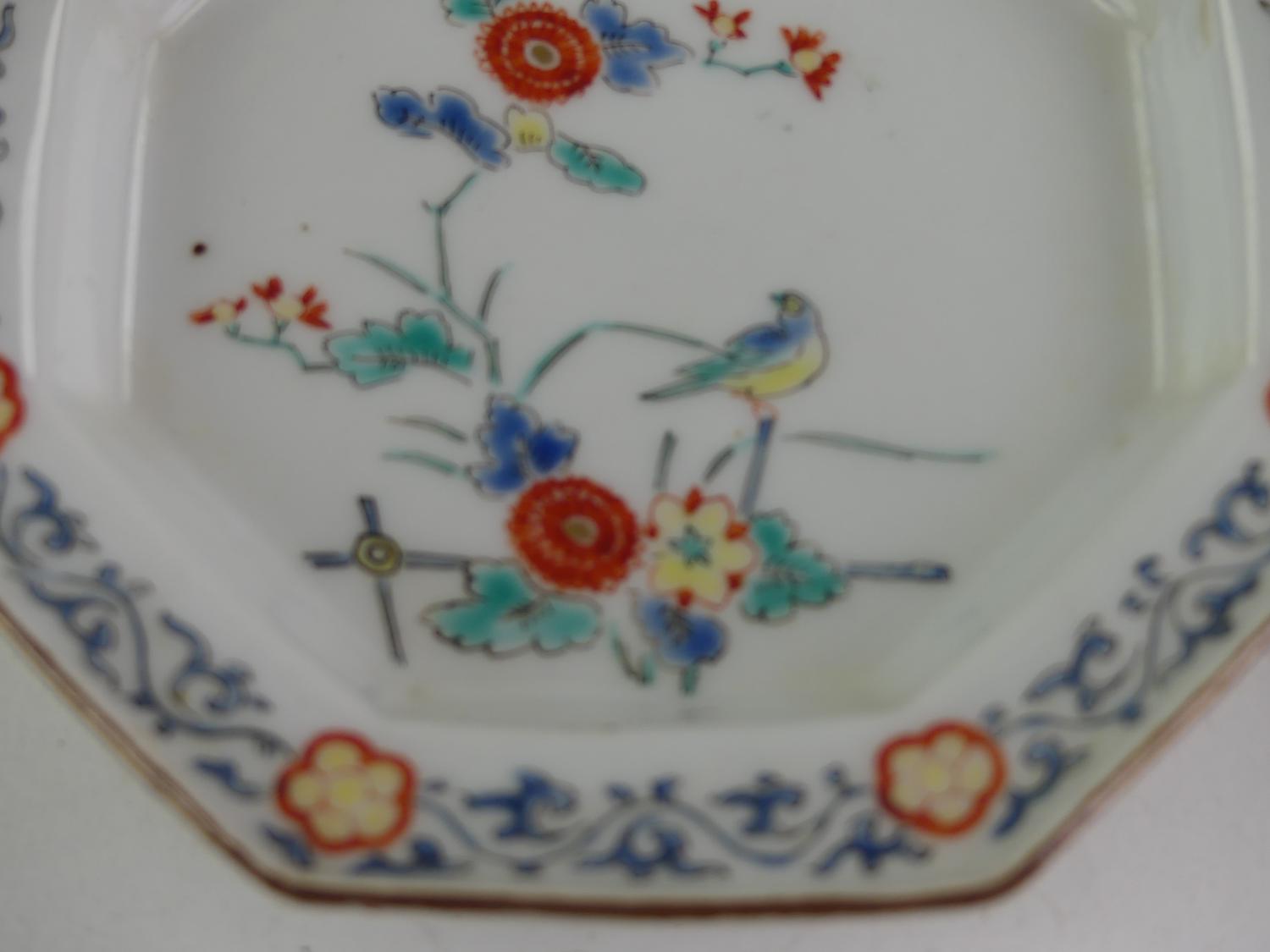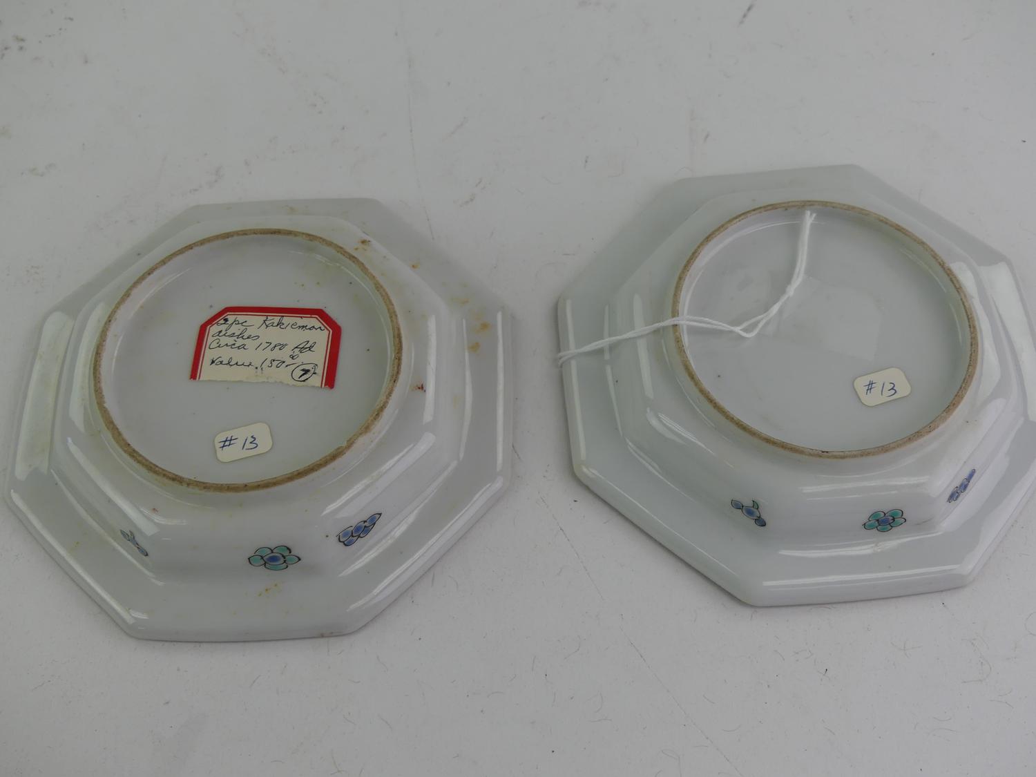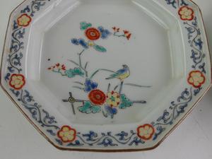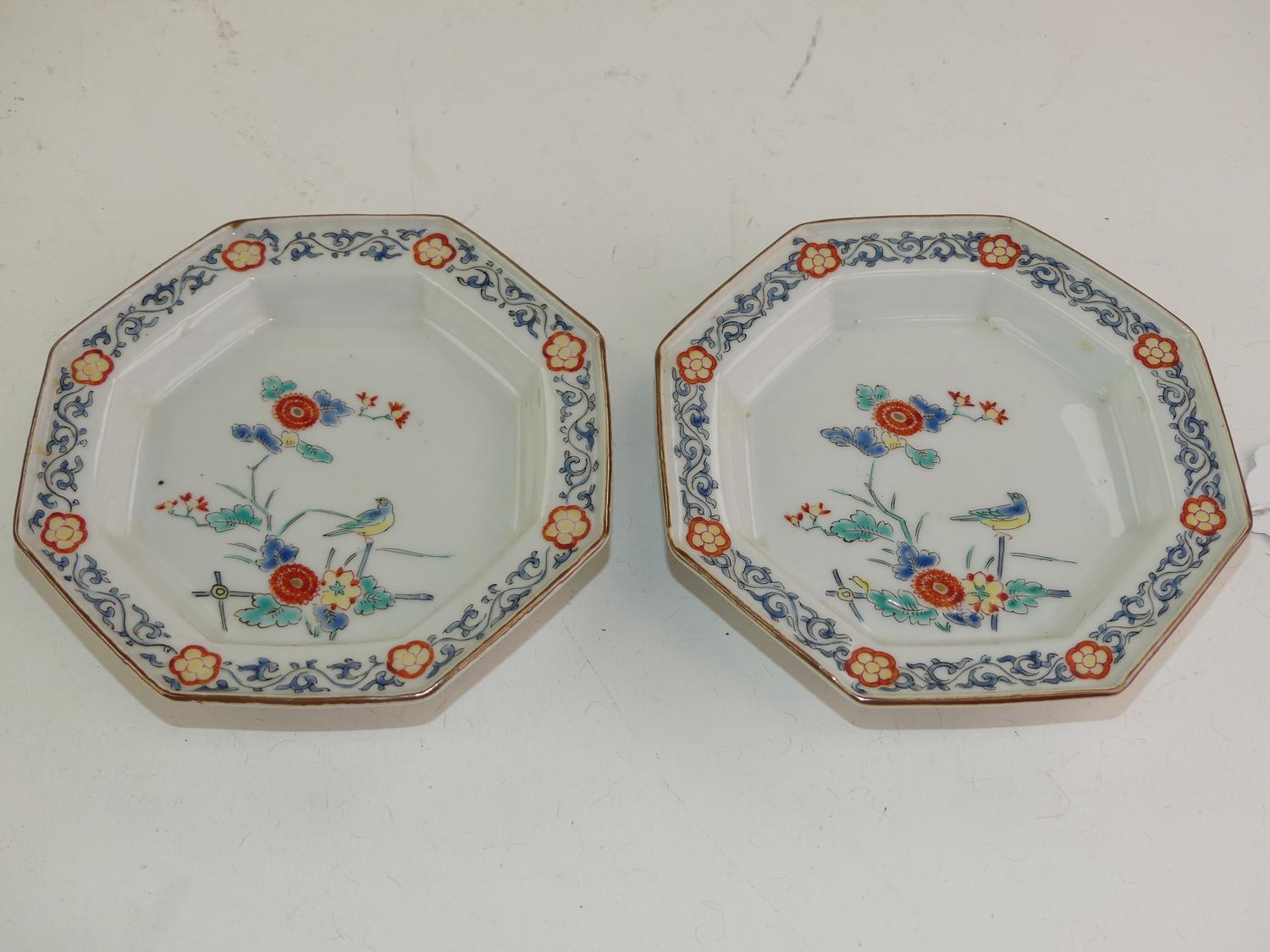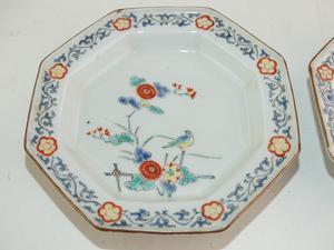 pair of japanese kakiemon porcelain octagonal dishes, early 19th century, dia. 4 3/4"