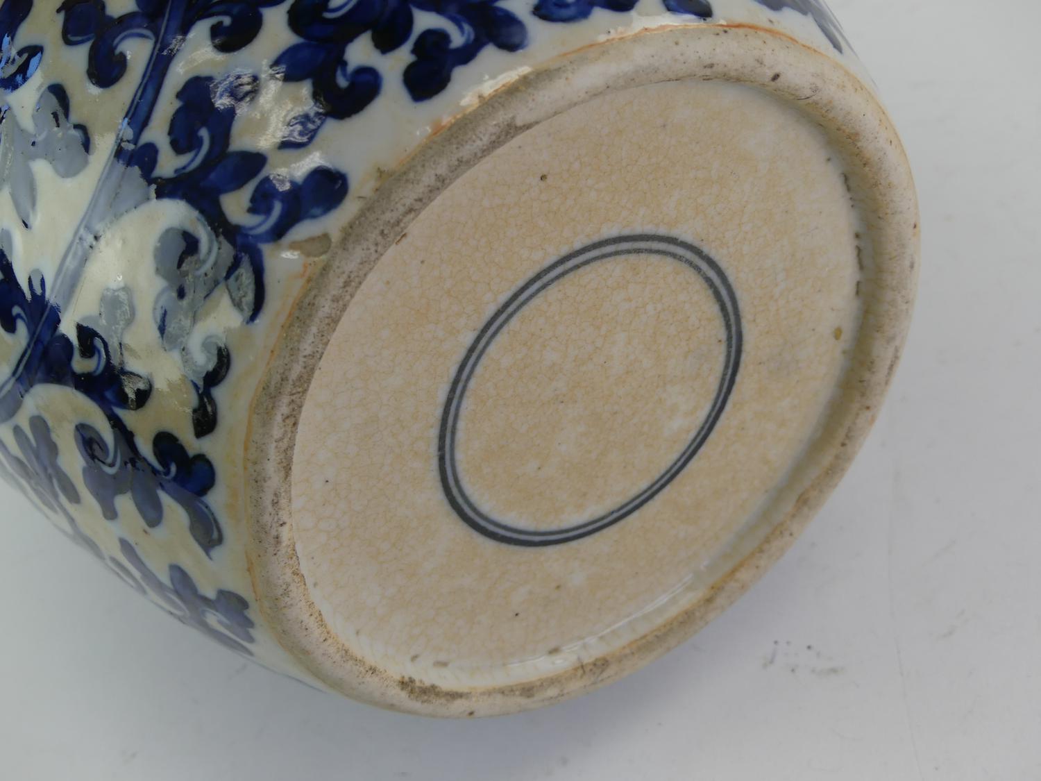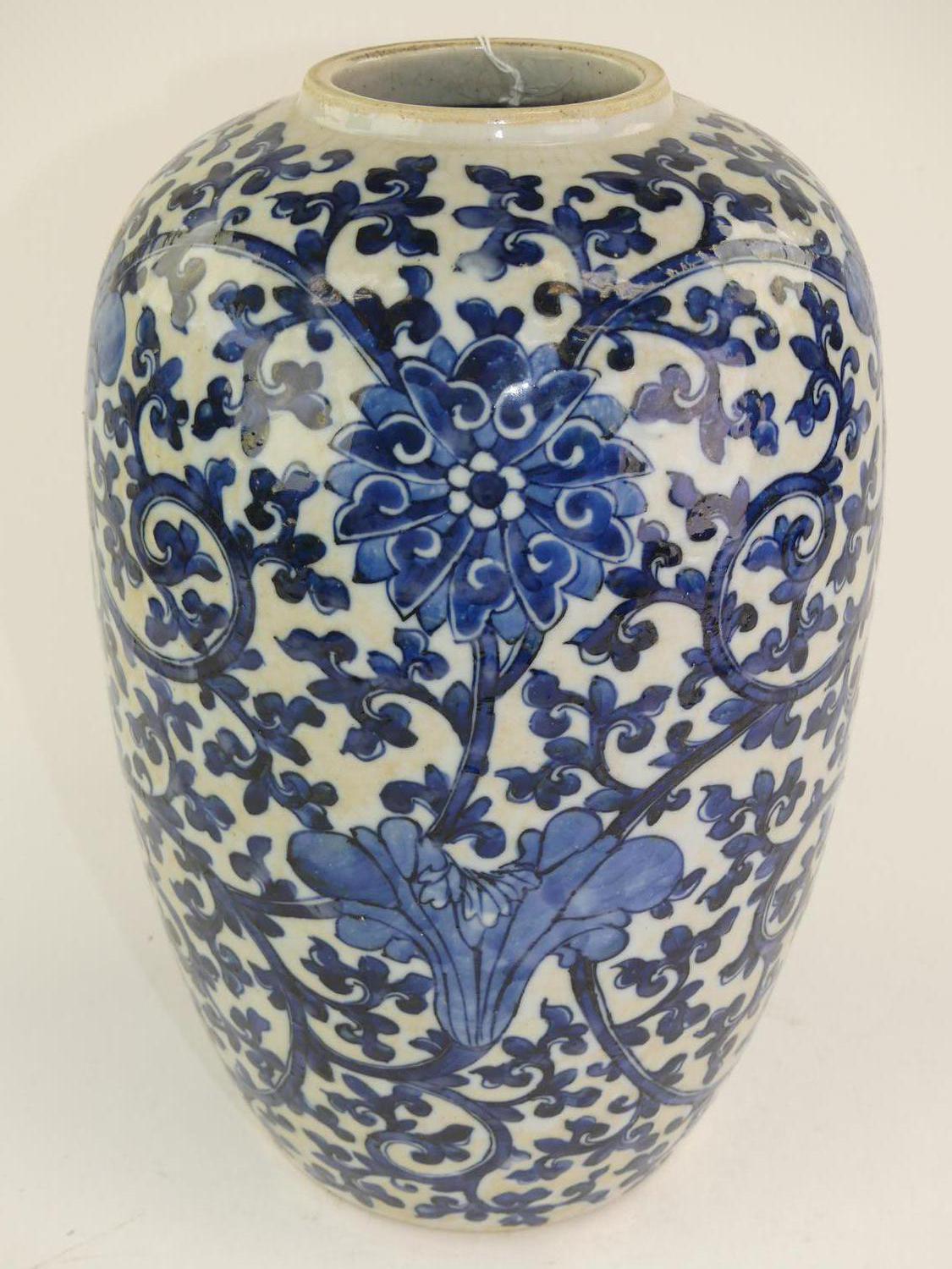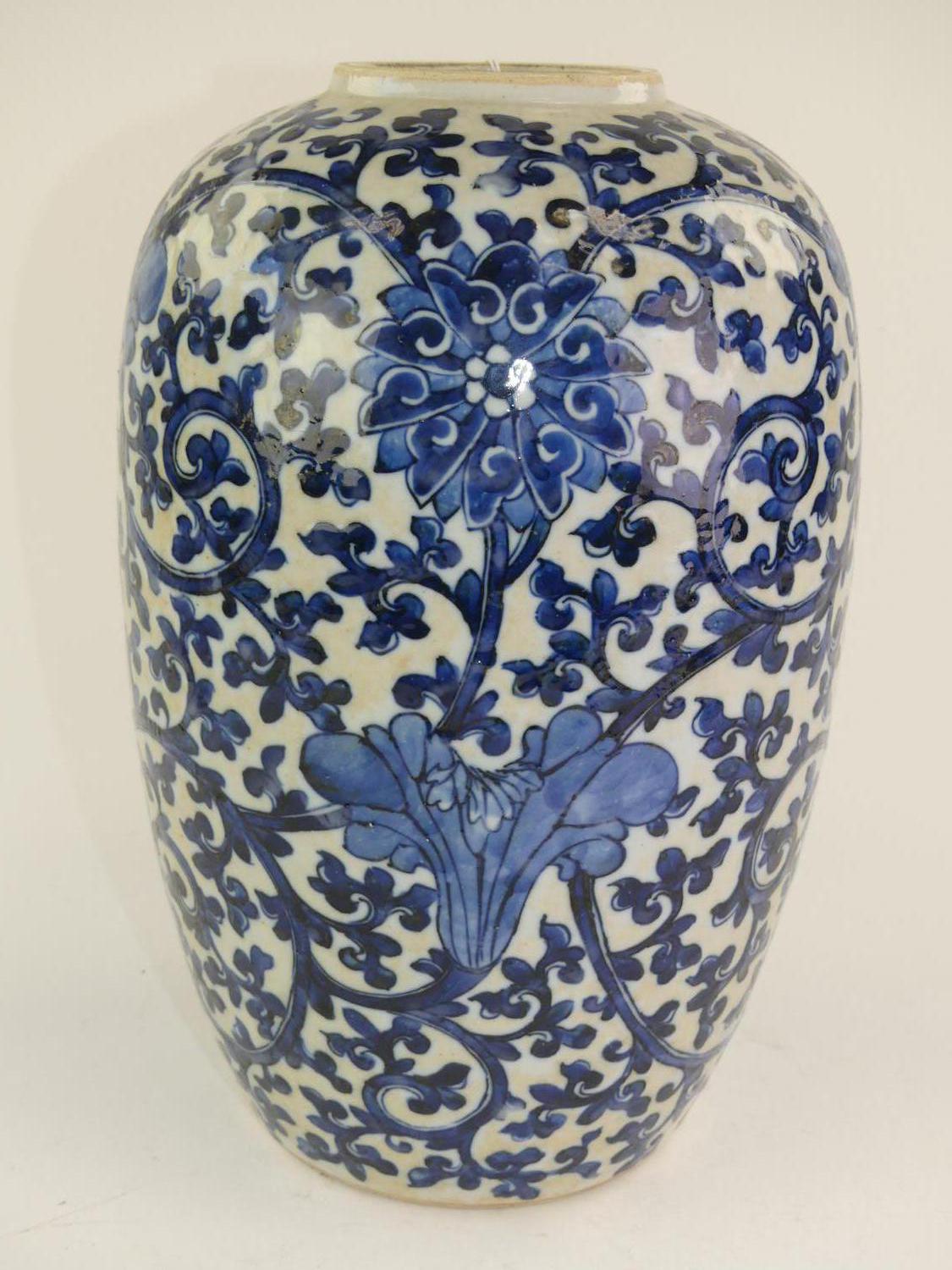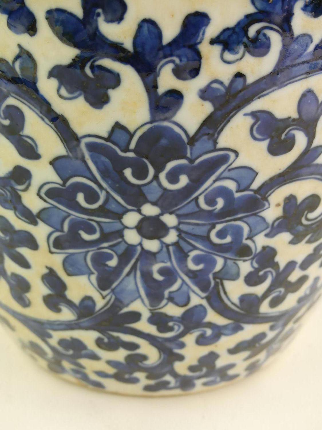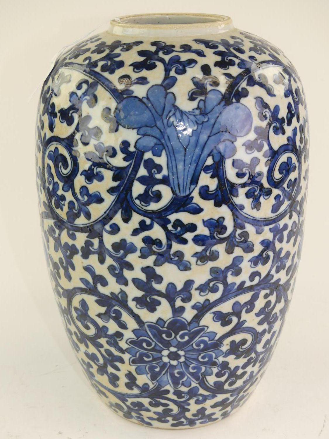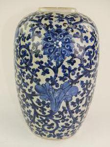 chinese blue and white palmette vase, kangxi mark, ht. 13 1/2"