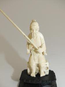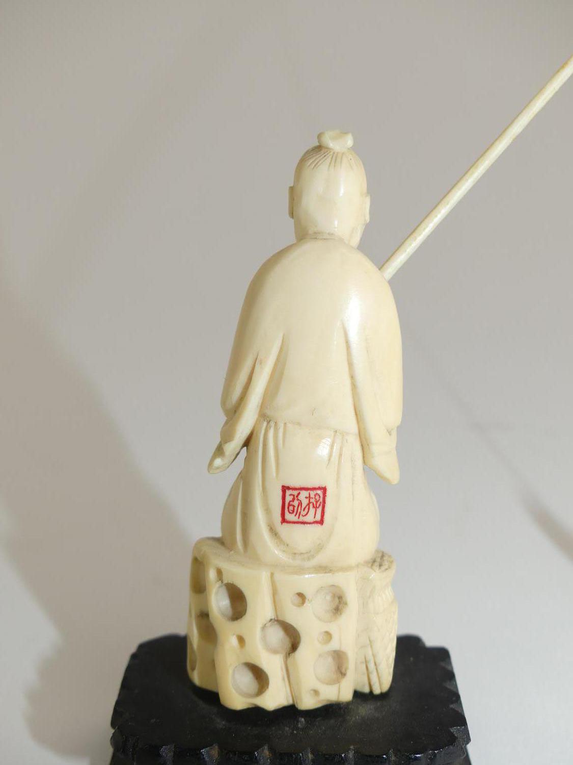 japanese carved ivory figure of a fisherman, c.1950, ht 4 1/2"