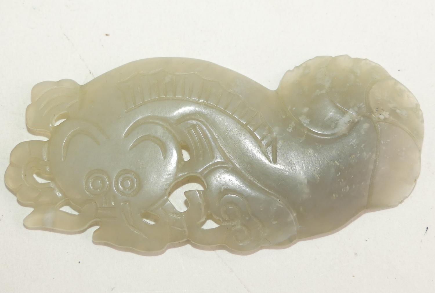 chinese carved white jade dragon, length 3"