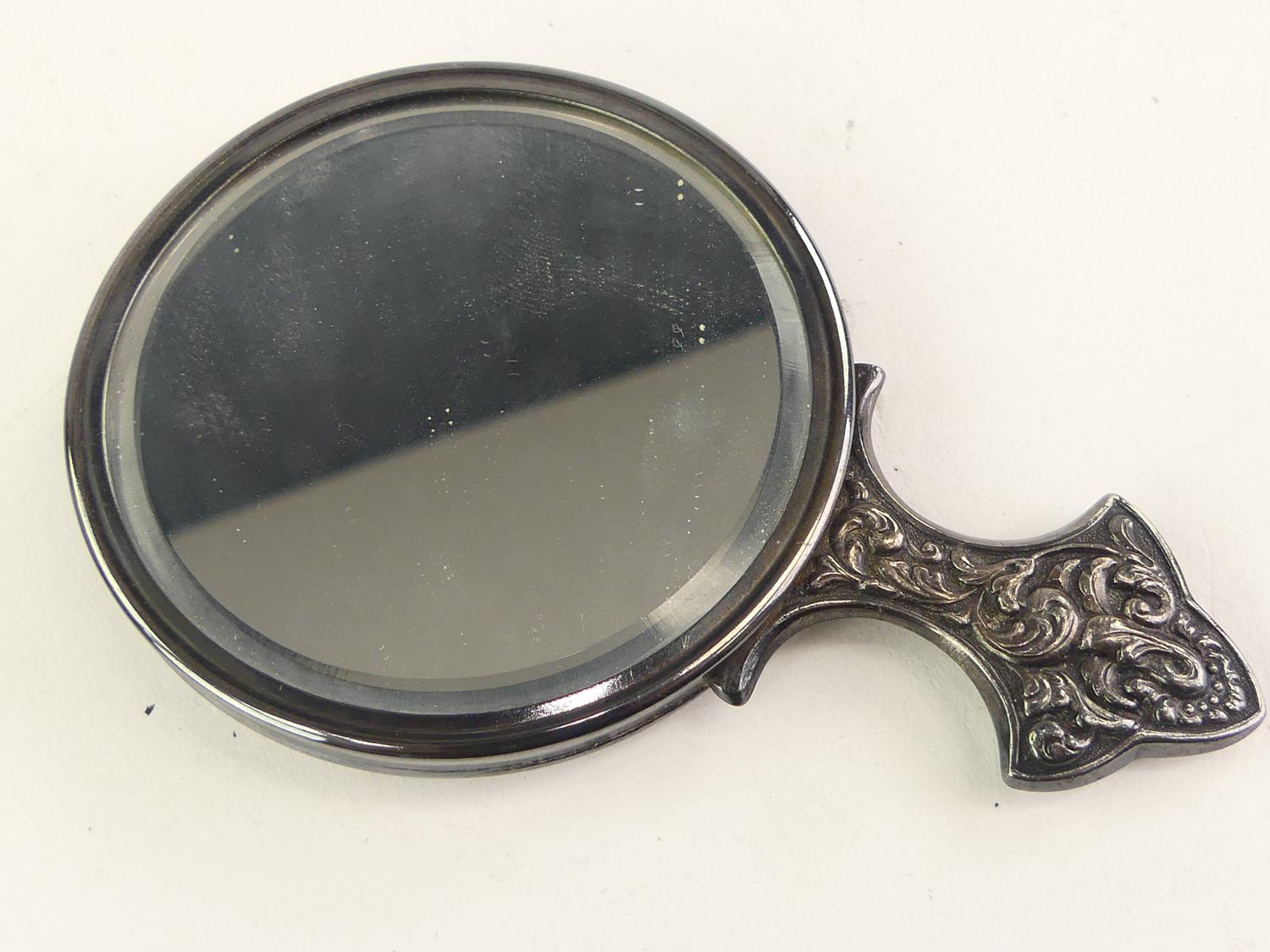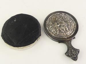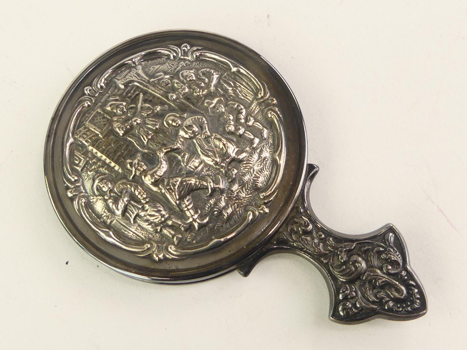 dutch silver purse mirror with reprosse figured decoration, length 4"