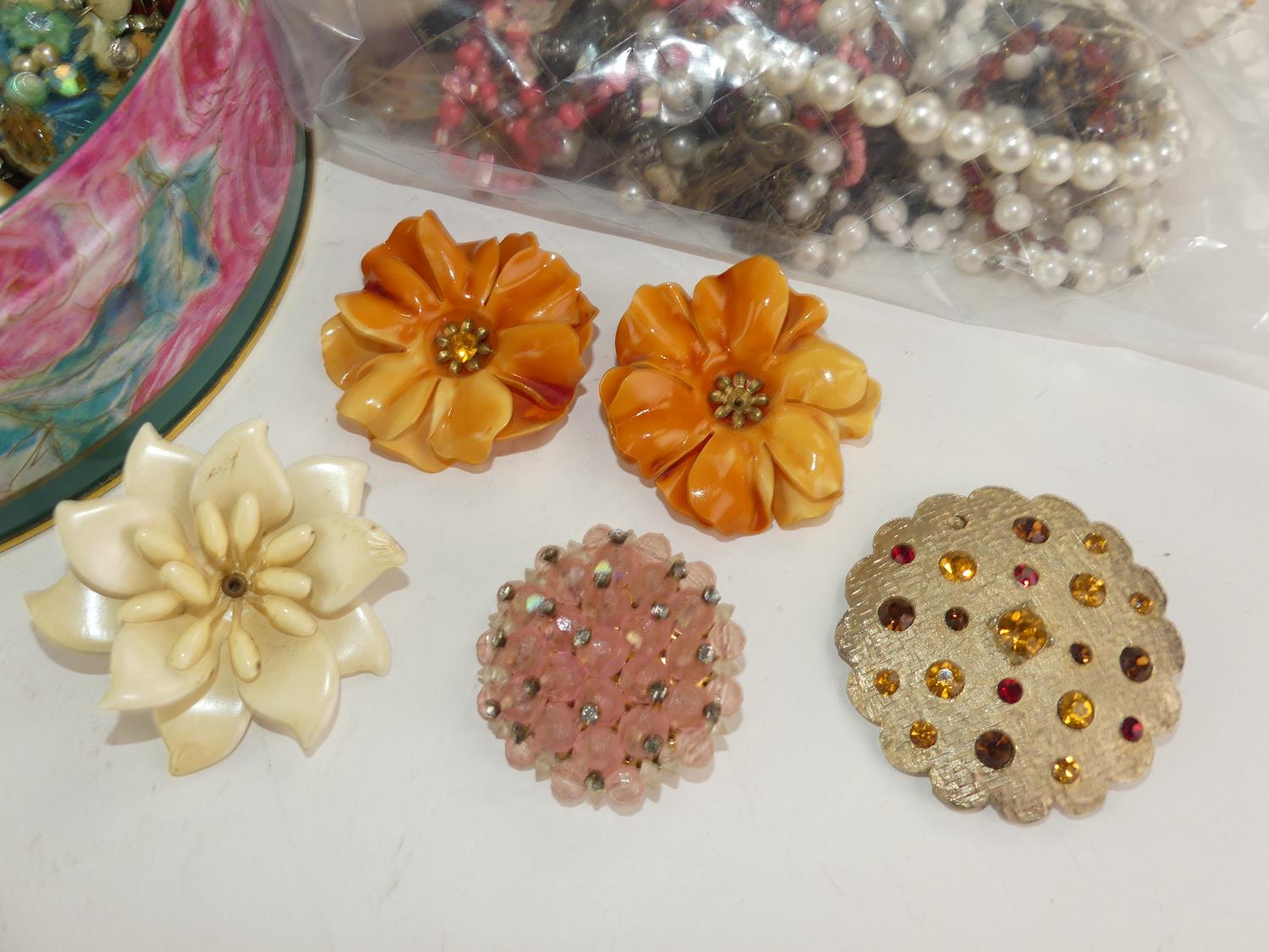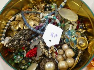 tin of misc vintage costume jewelery