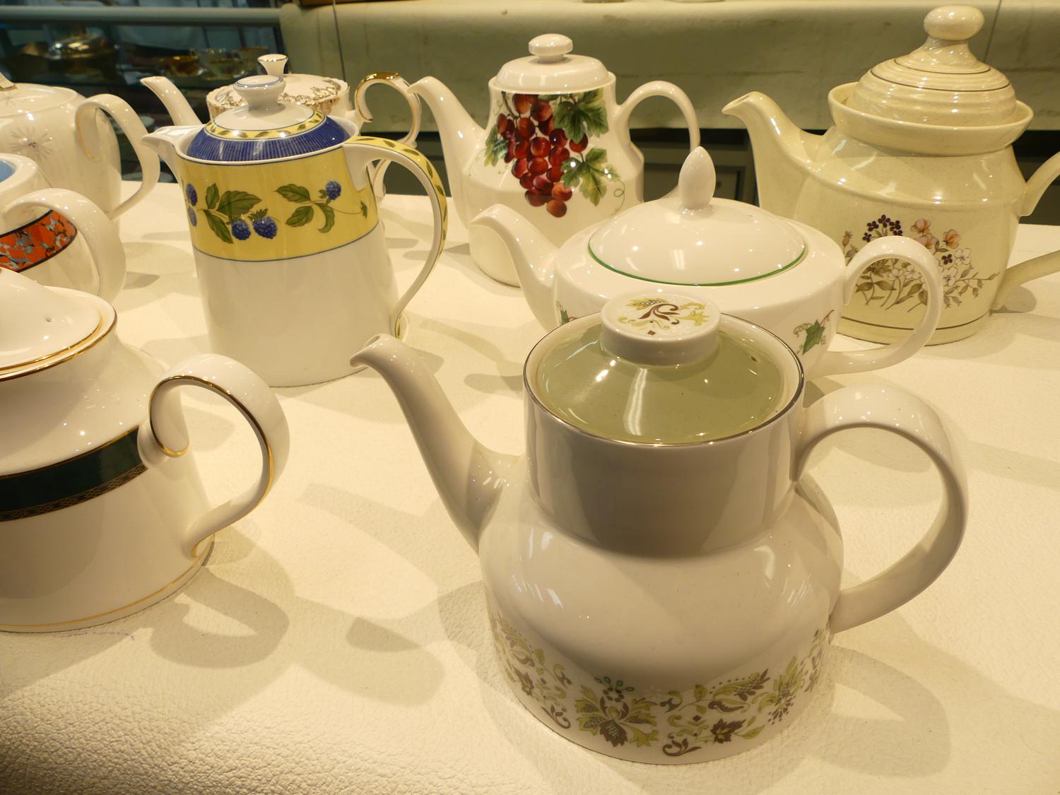 lot of teapots, royal doulton, royal vale, villeroy and boch, etc.
