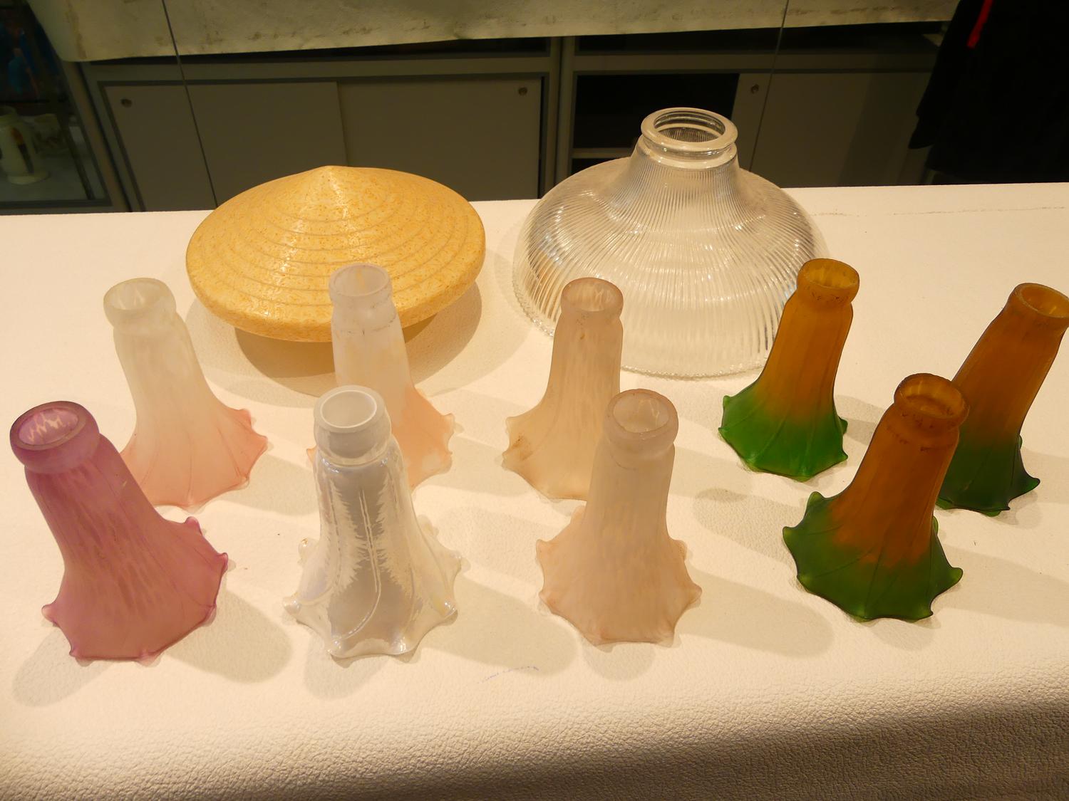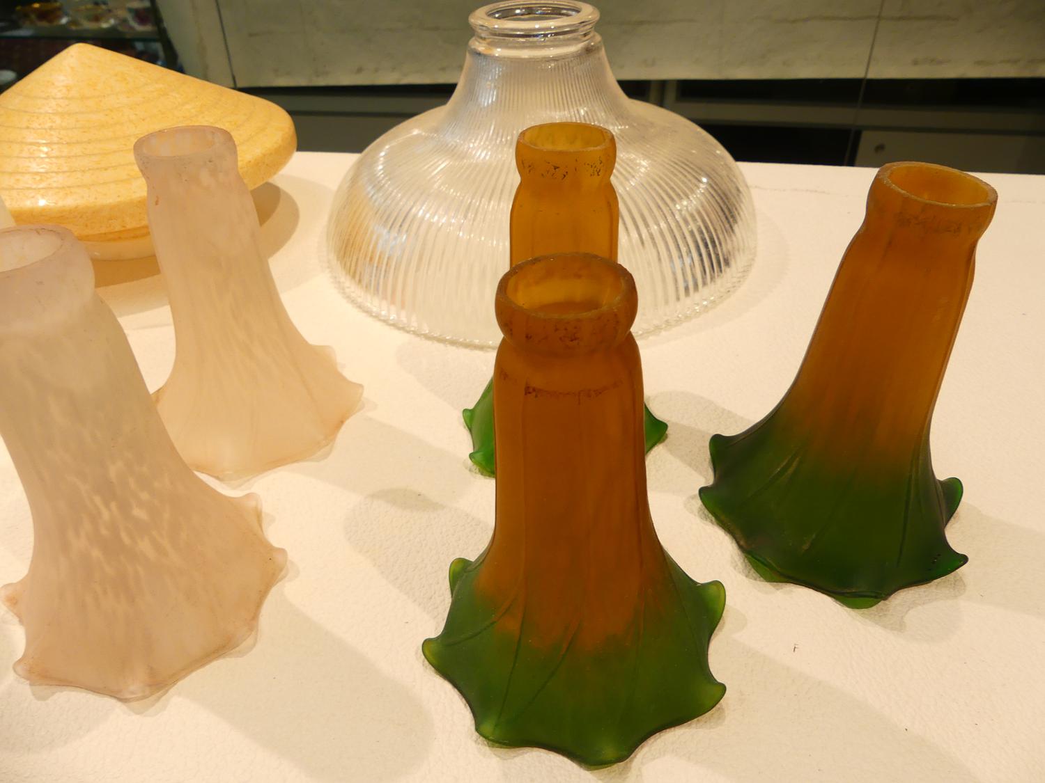 lot of art glass lamp and fixture shades