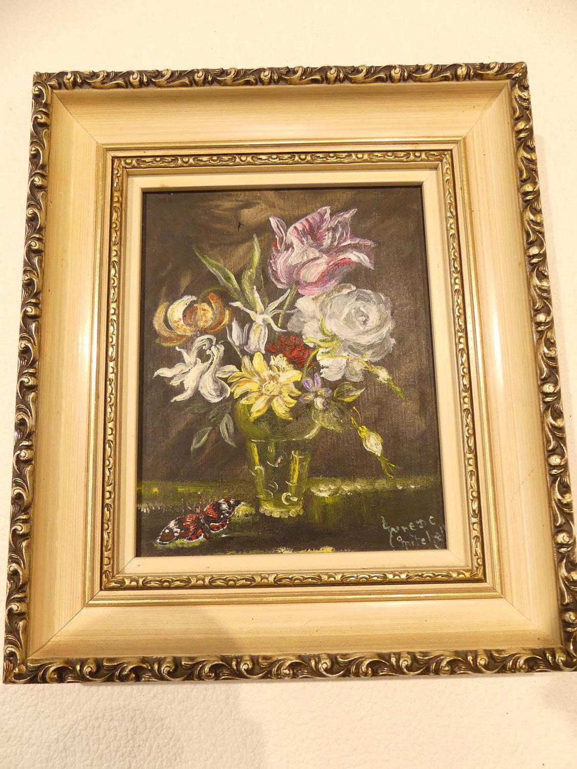 lot of silver plate and a small painting