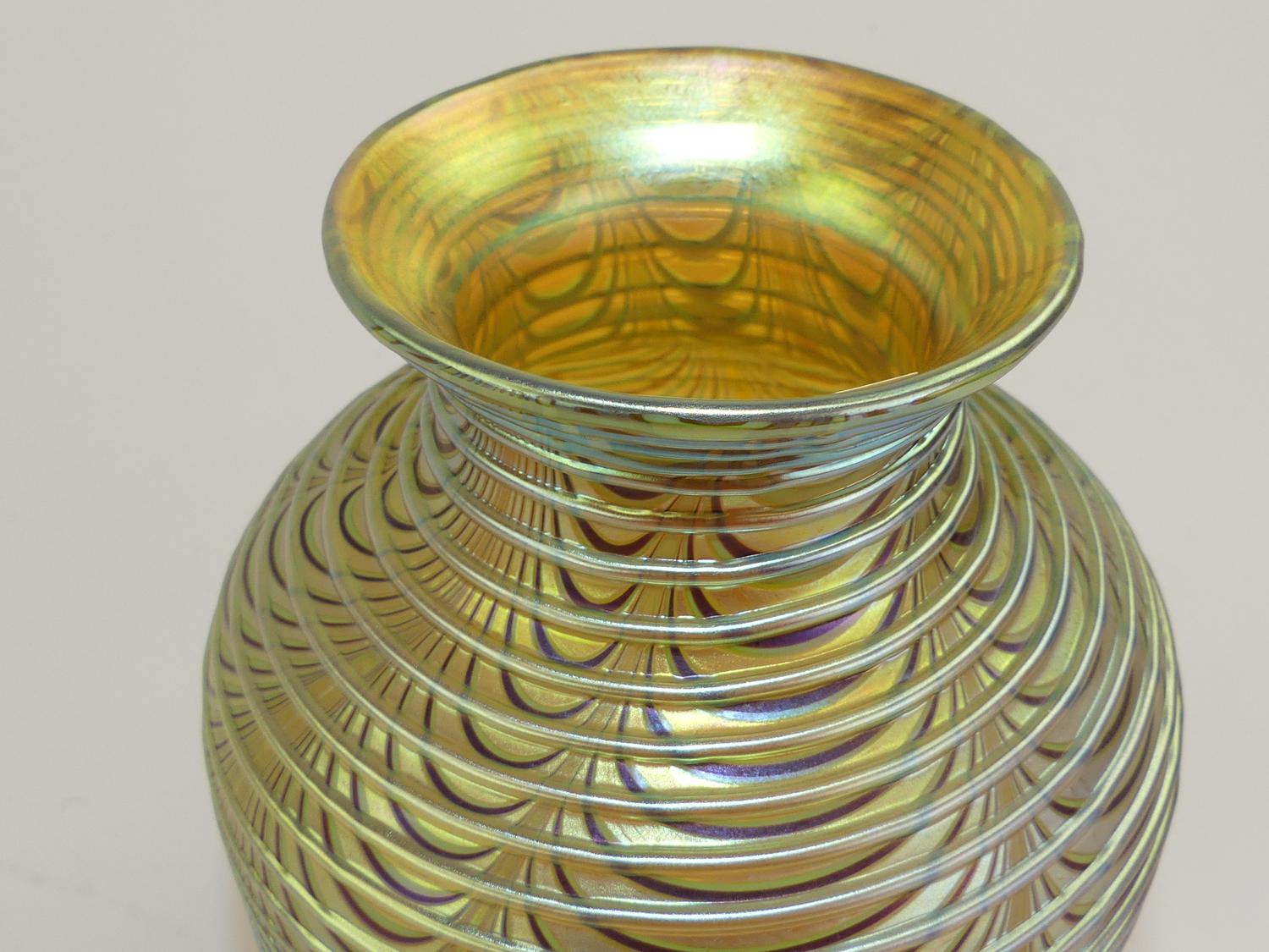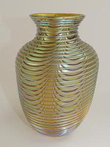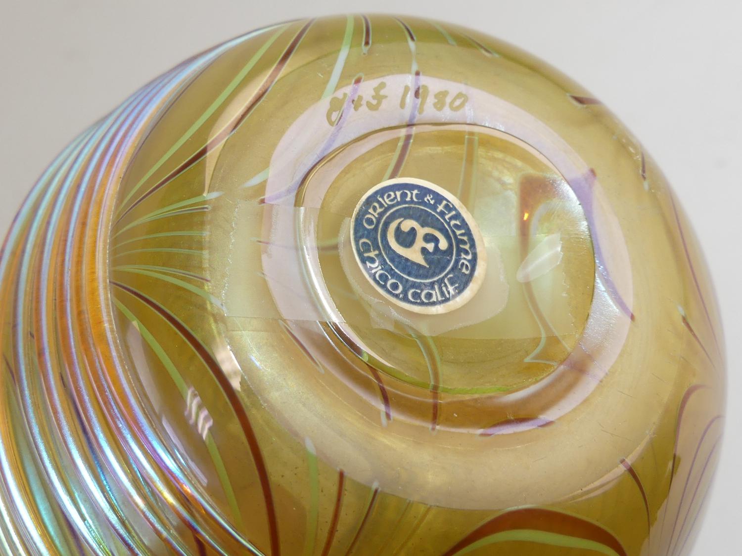 american art glass vase by orient & flume, chico california, ht. 7 1/4"