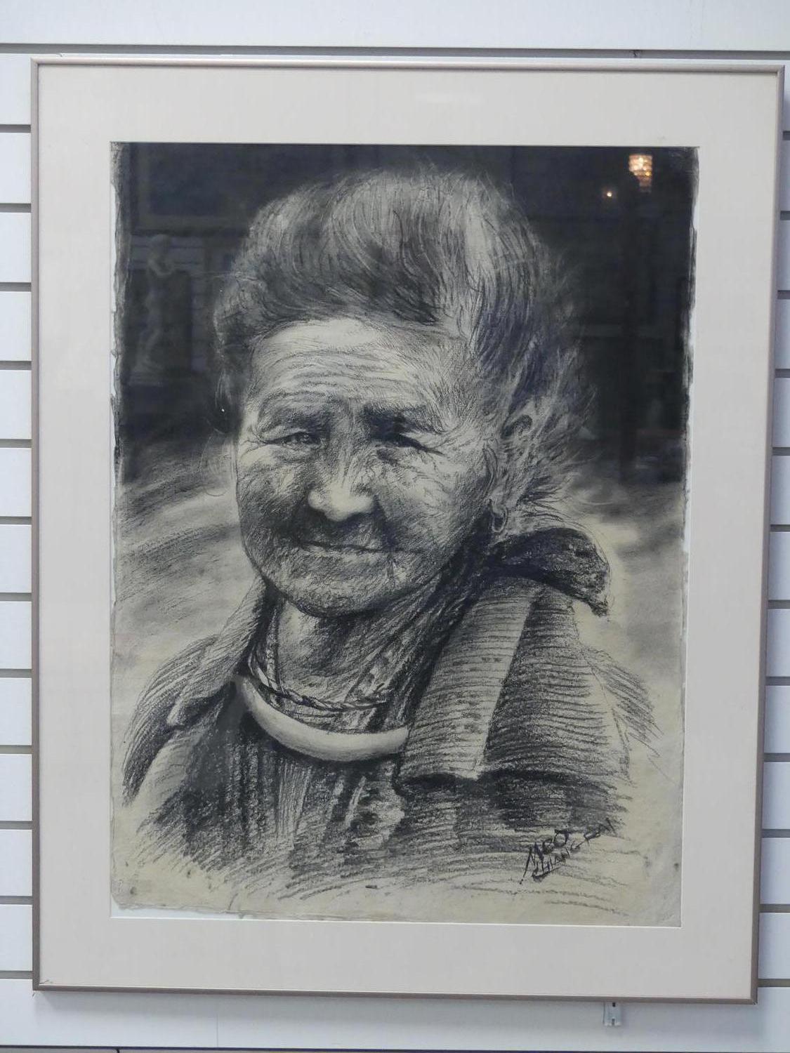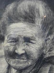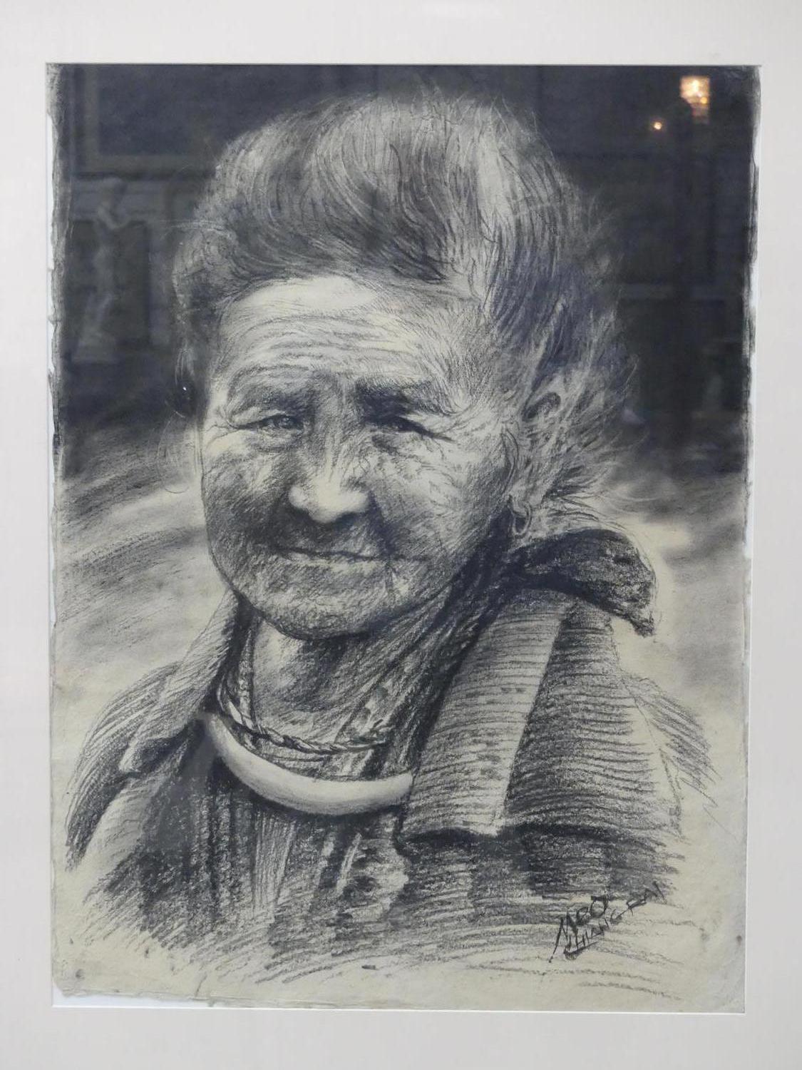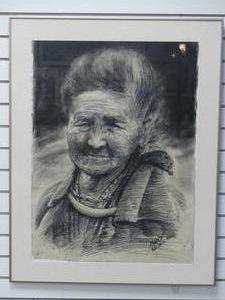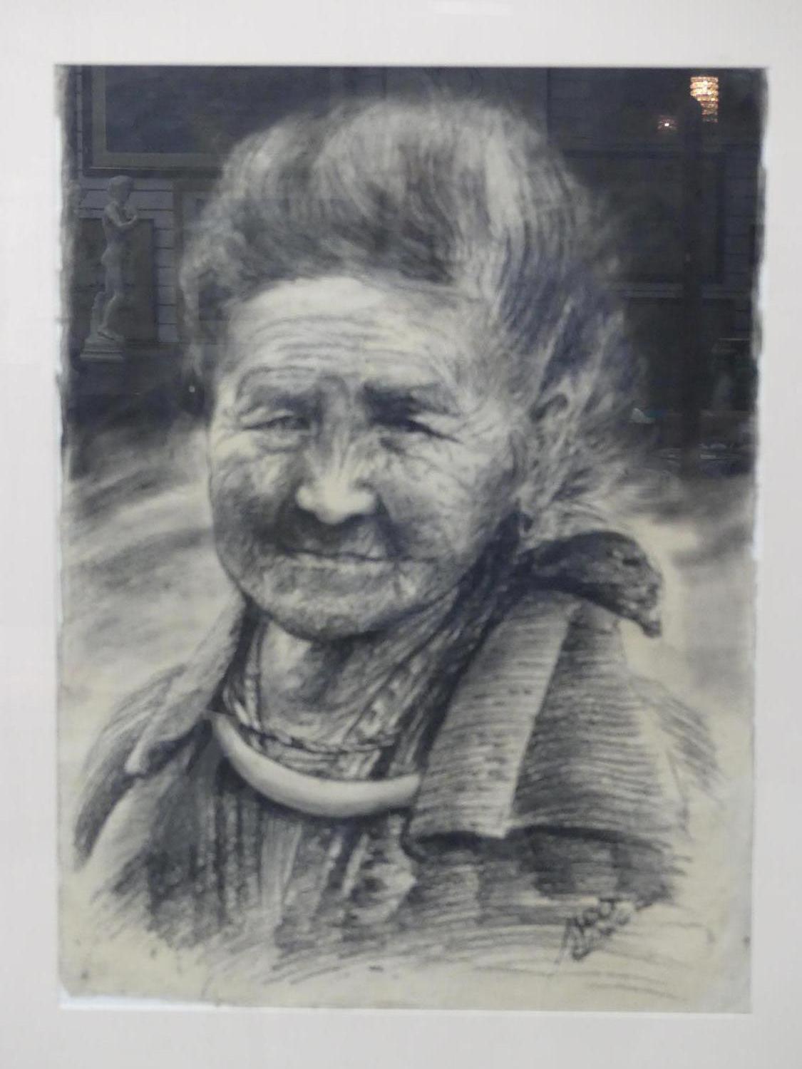 meo, chiang rai, charcoal drawing on paper, 30" x 22", portrait study of a woman"
