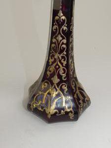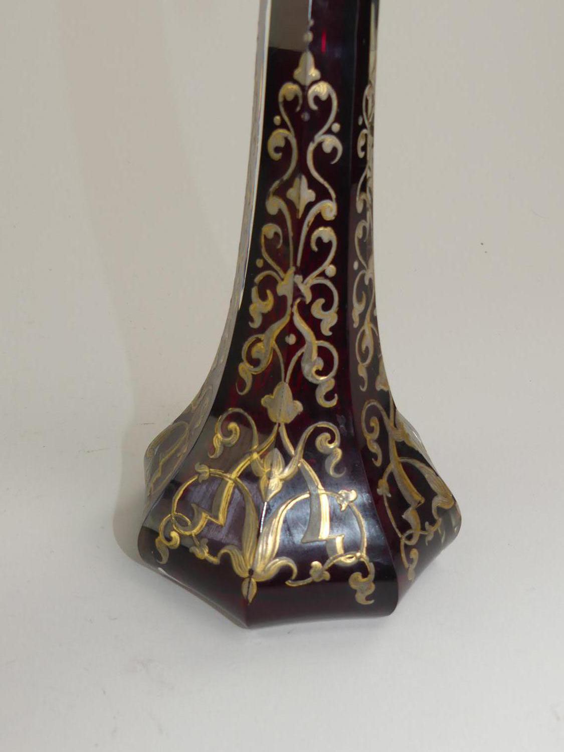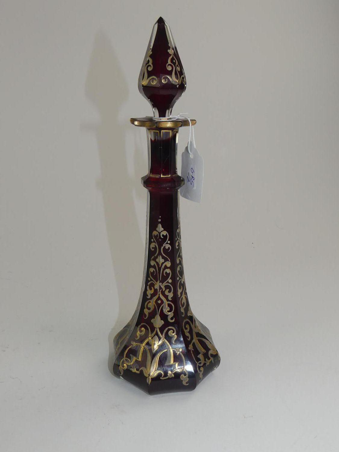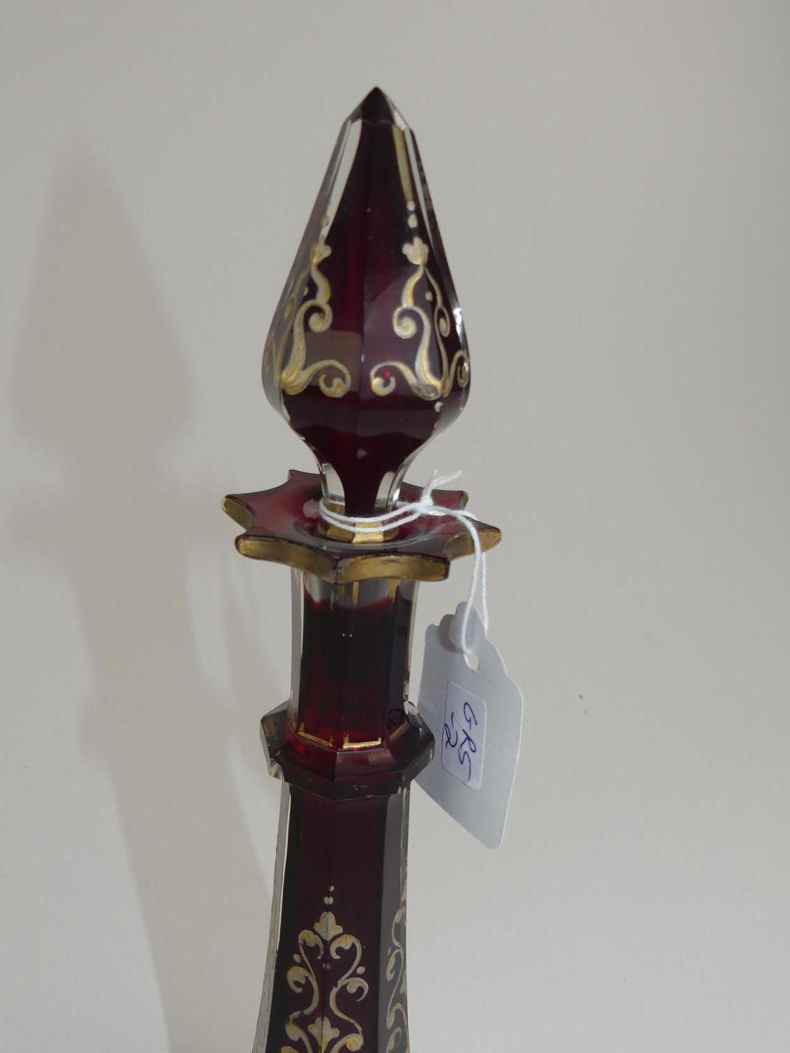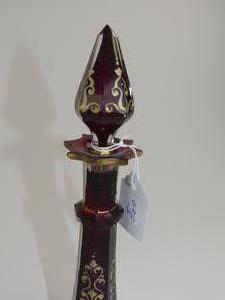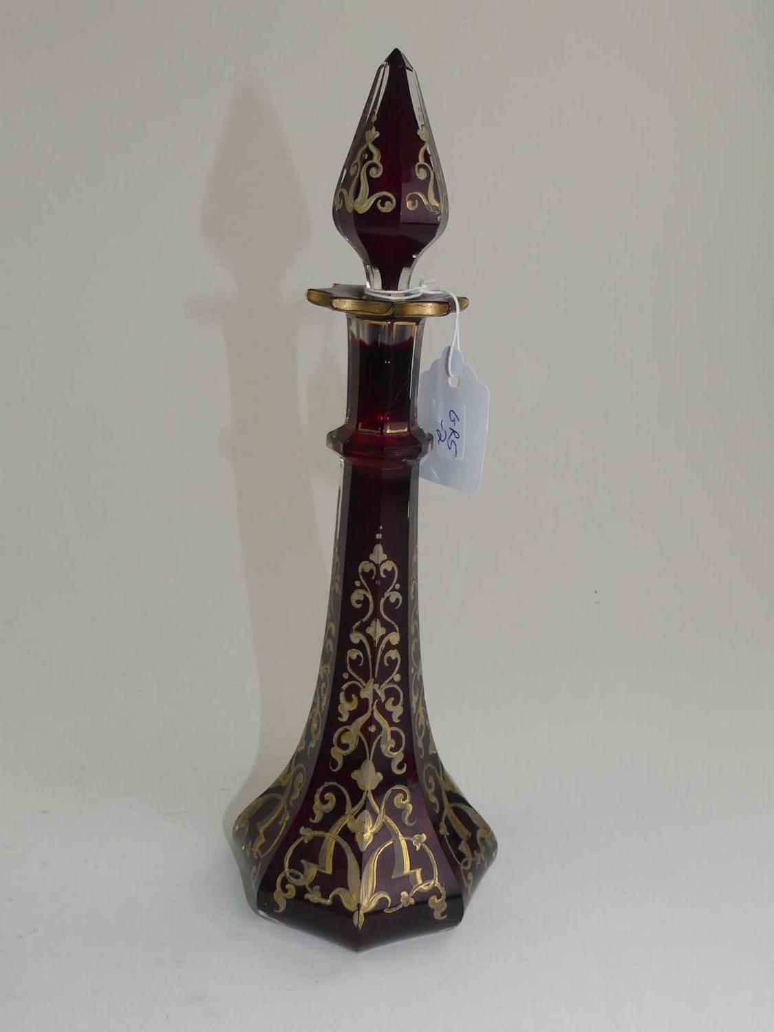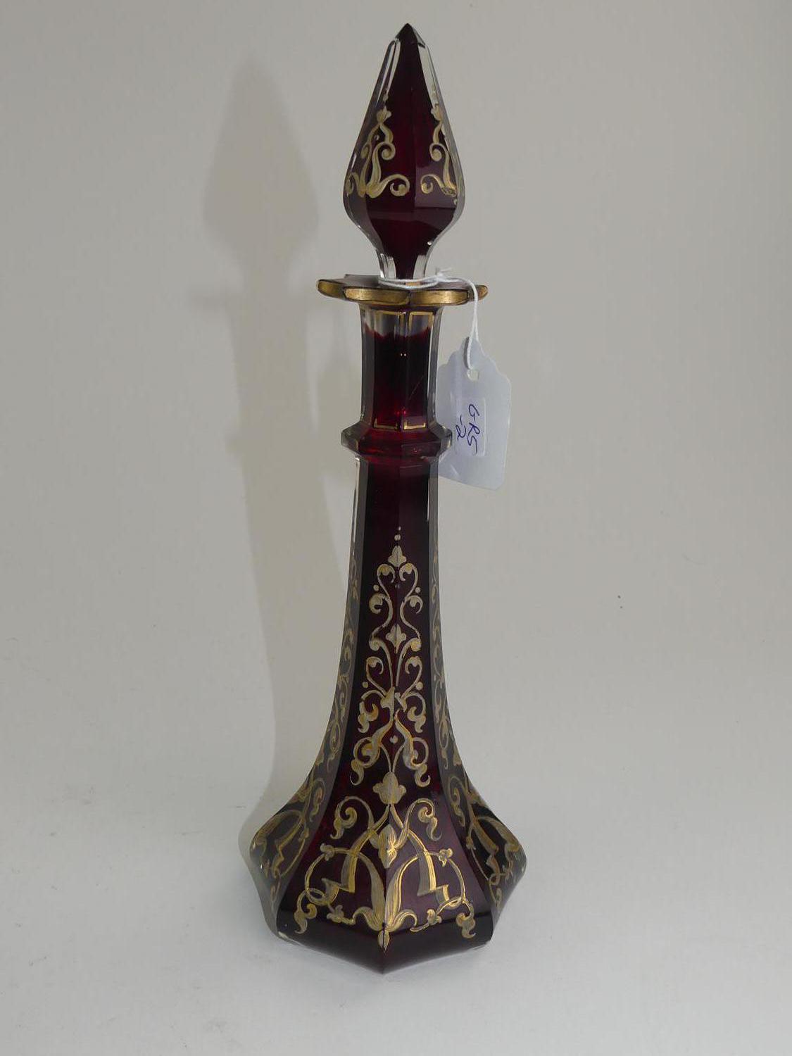 late 19th century bohemian gilt decorated ruby glass decanter, ht. 12"