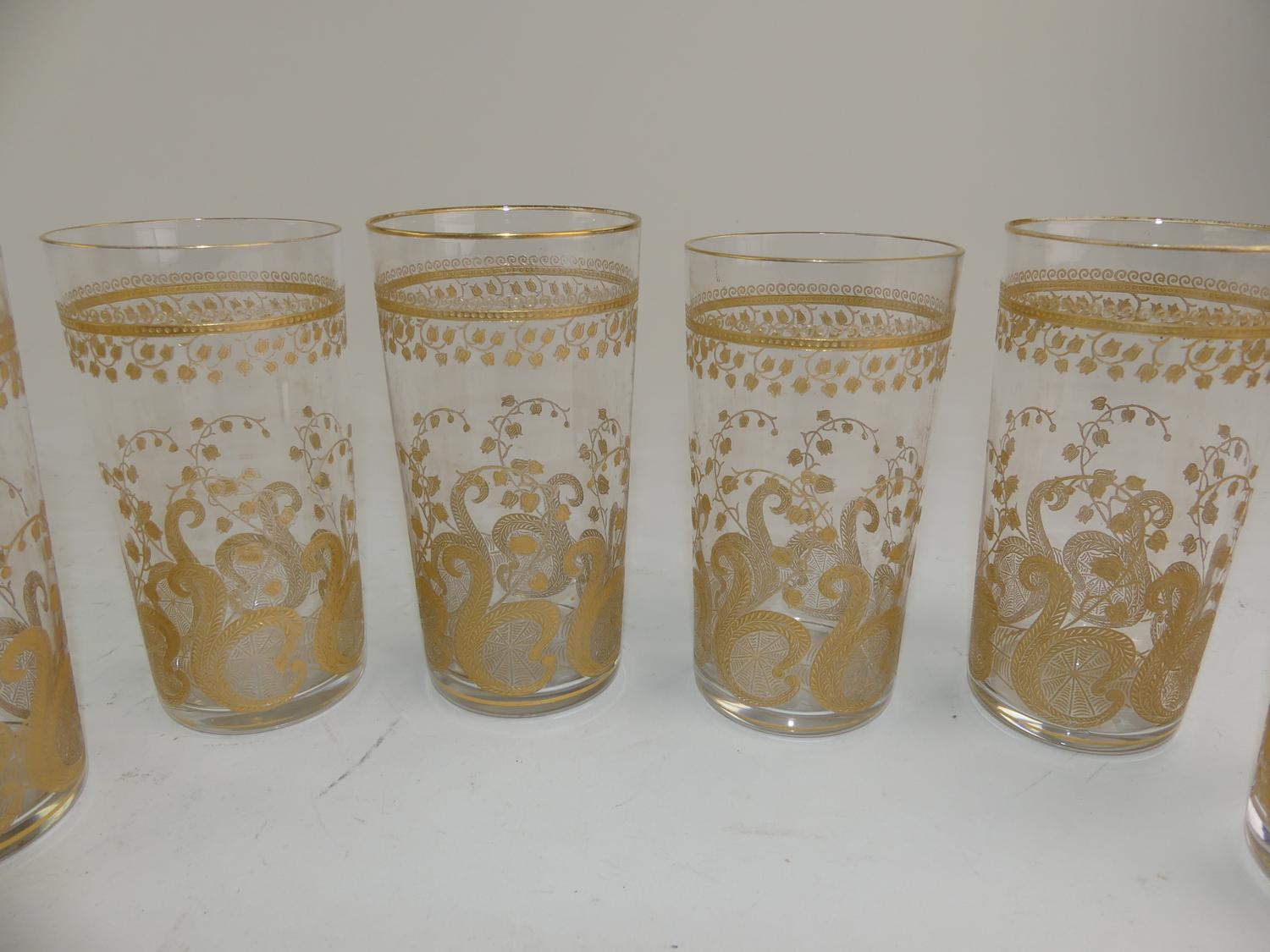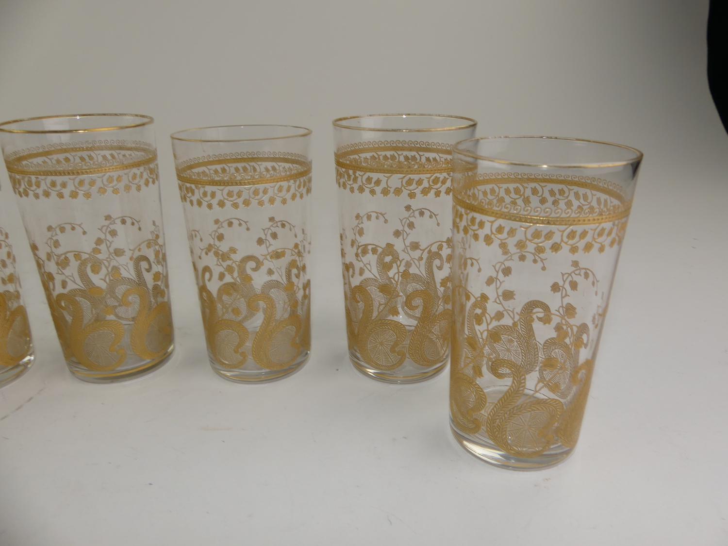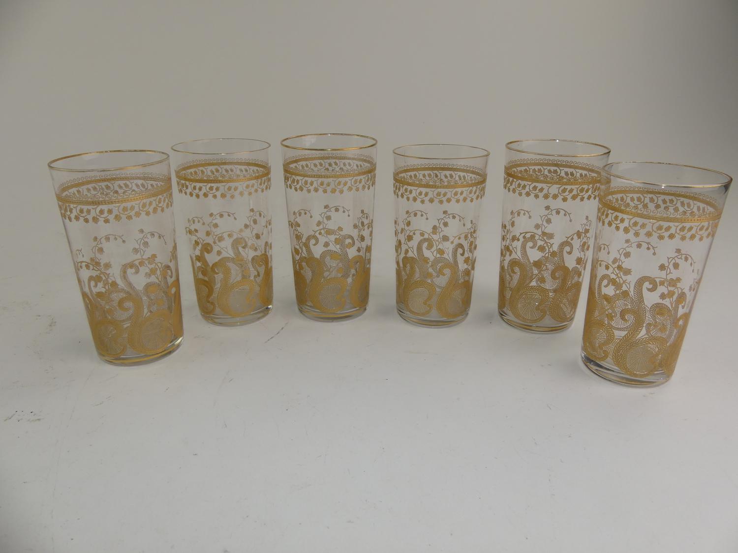 set of six vintage gilt decorated glasses, ht. 4 1/4"