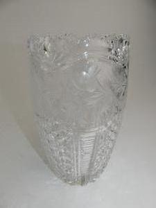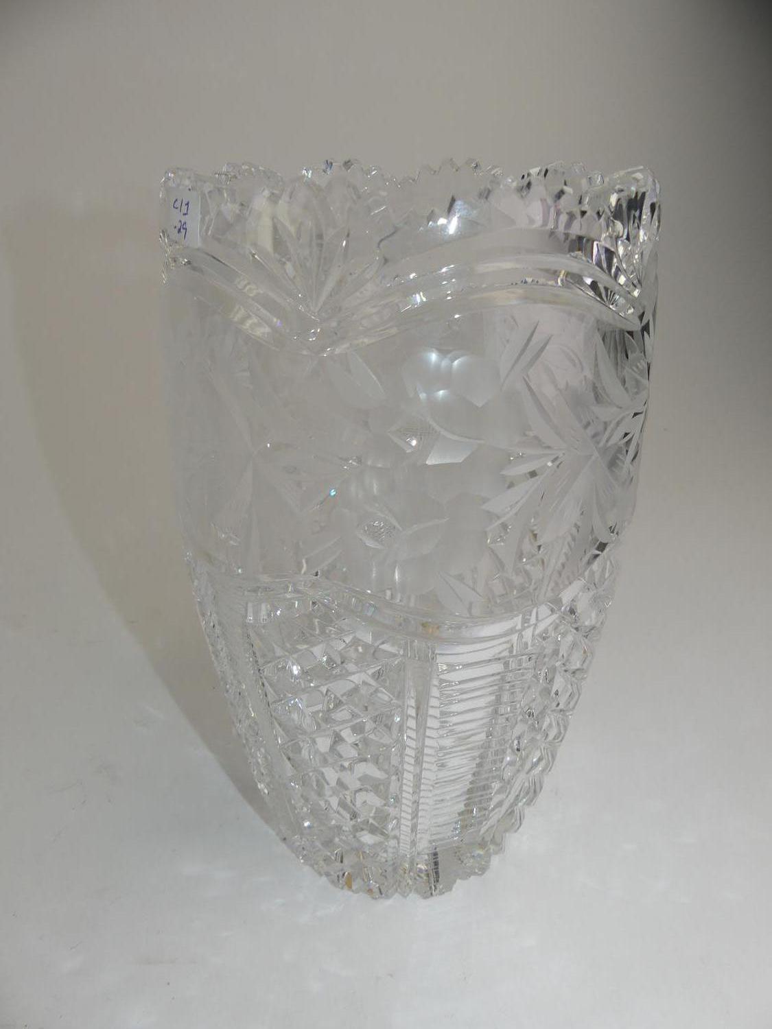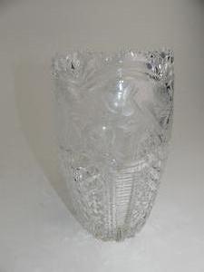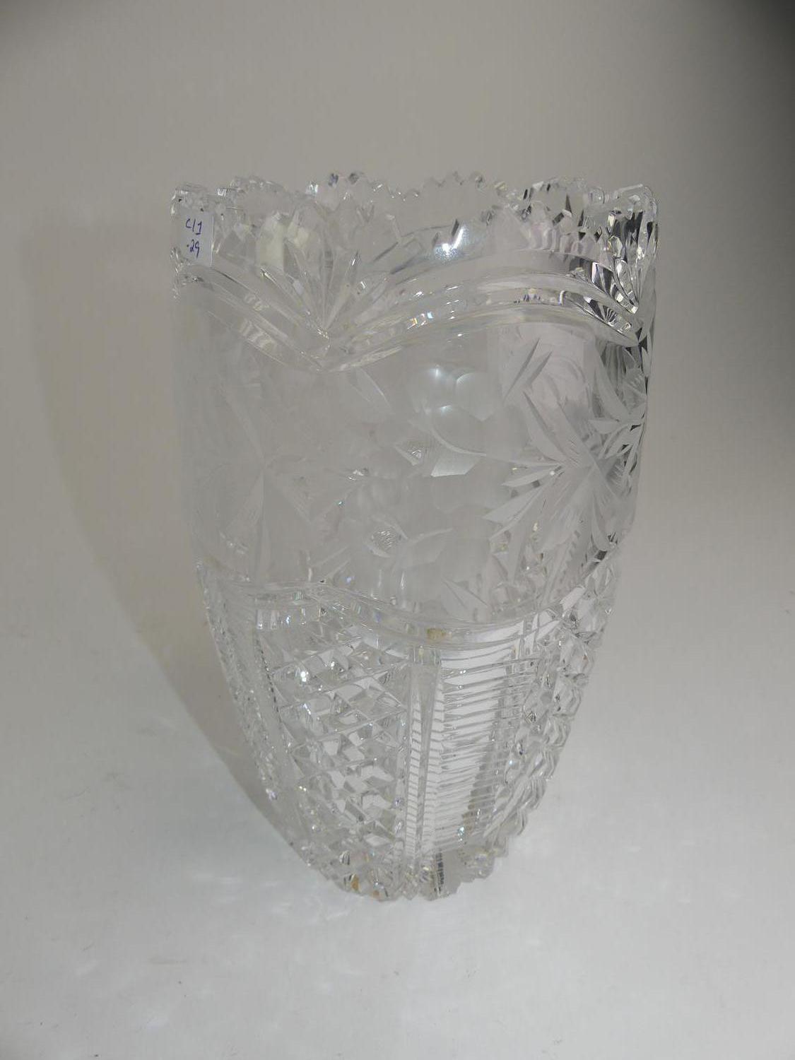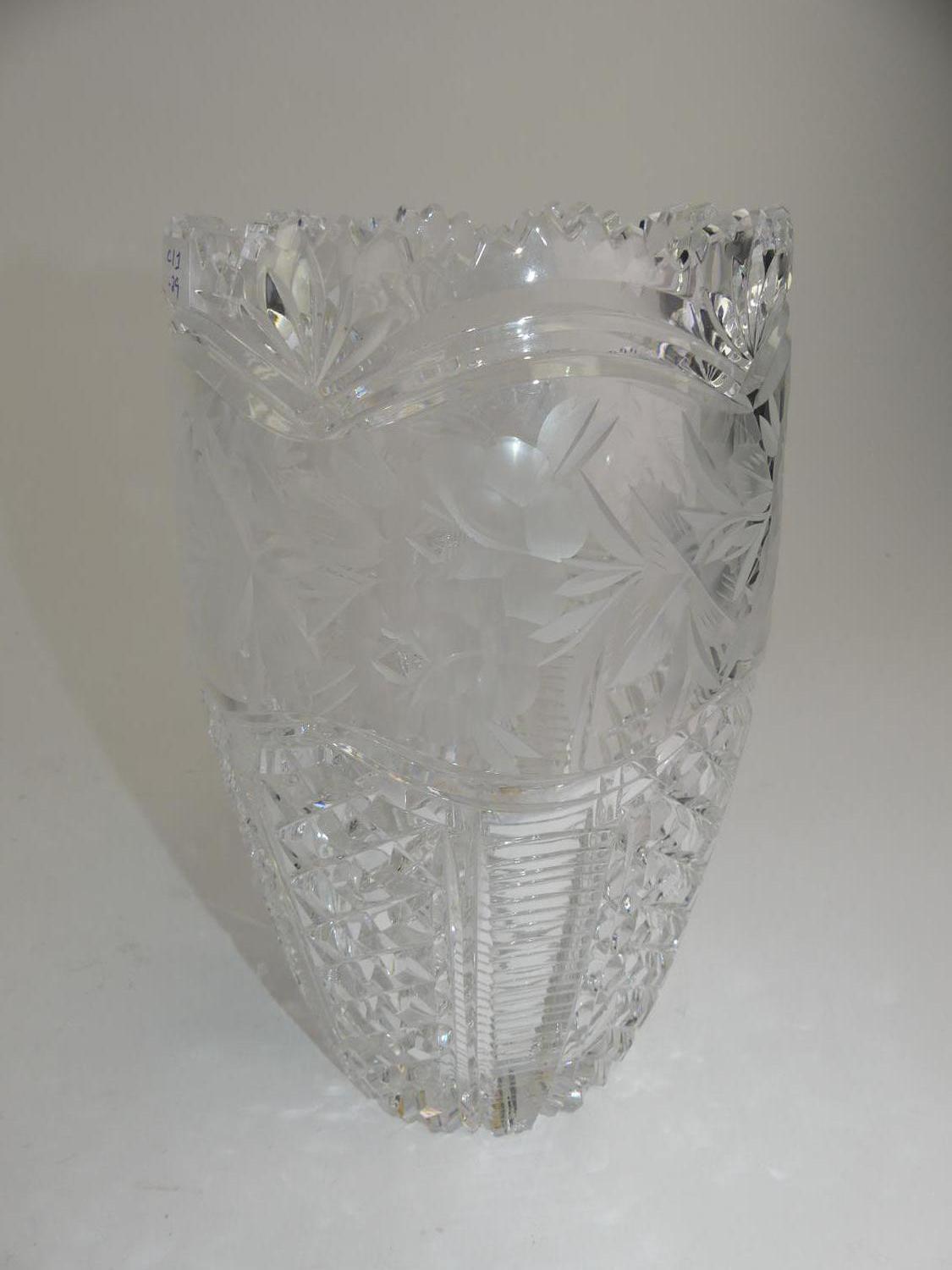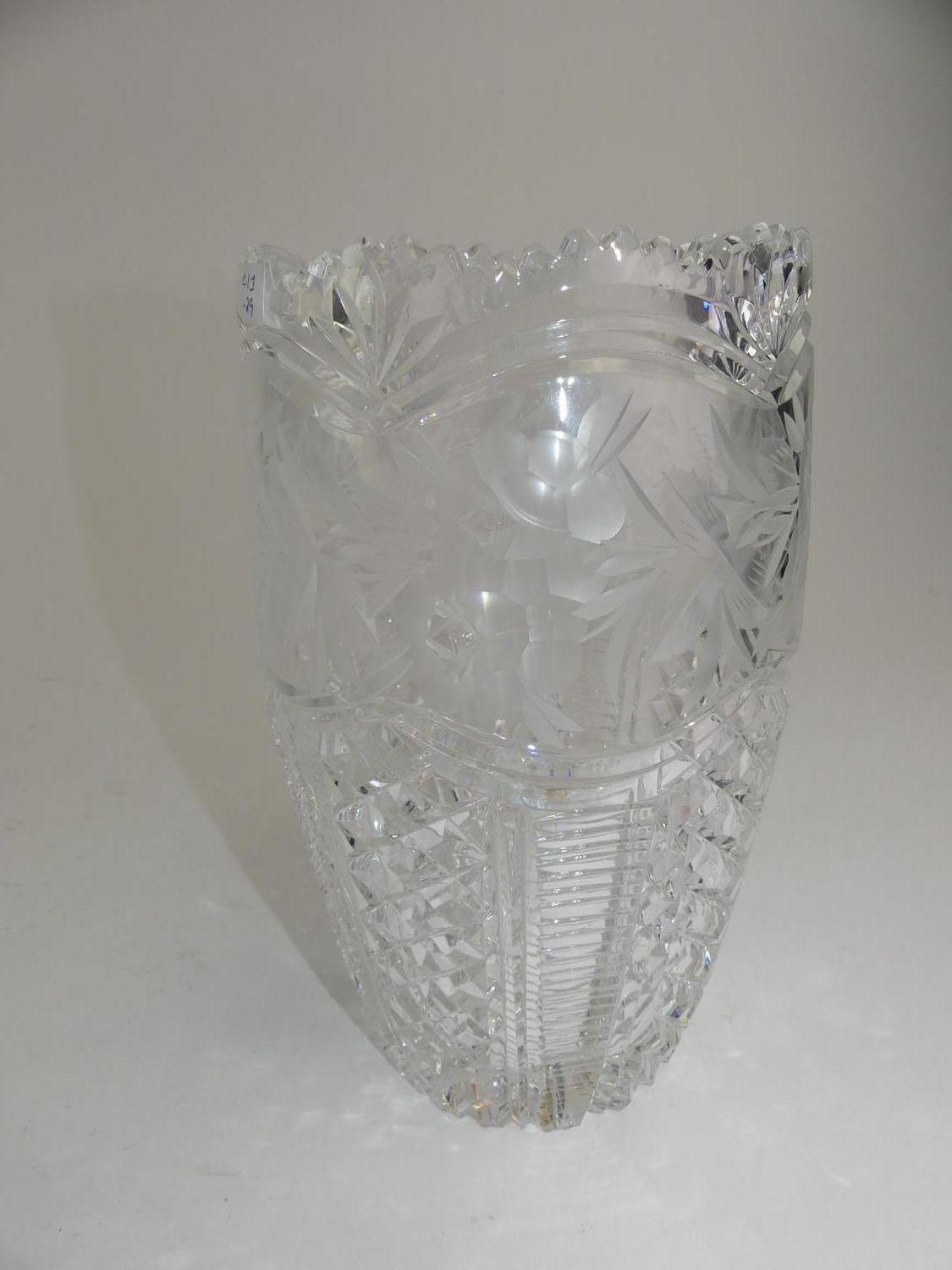 cut and etched glass vase, ht 9 3/4"