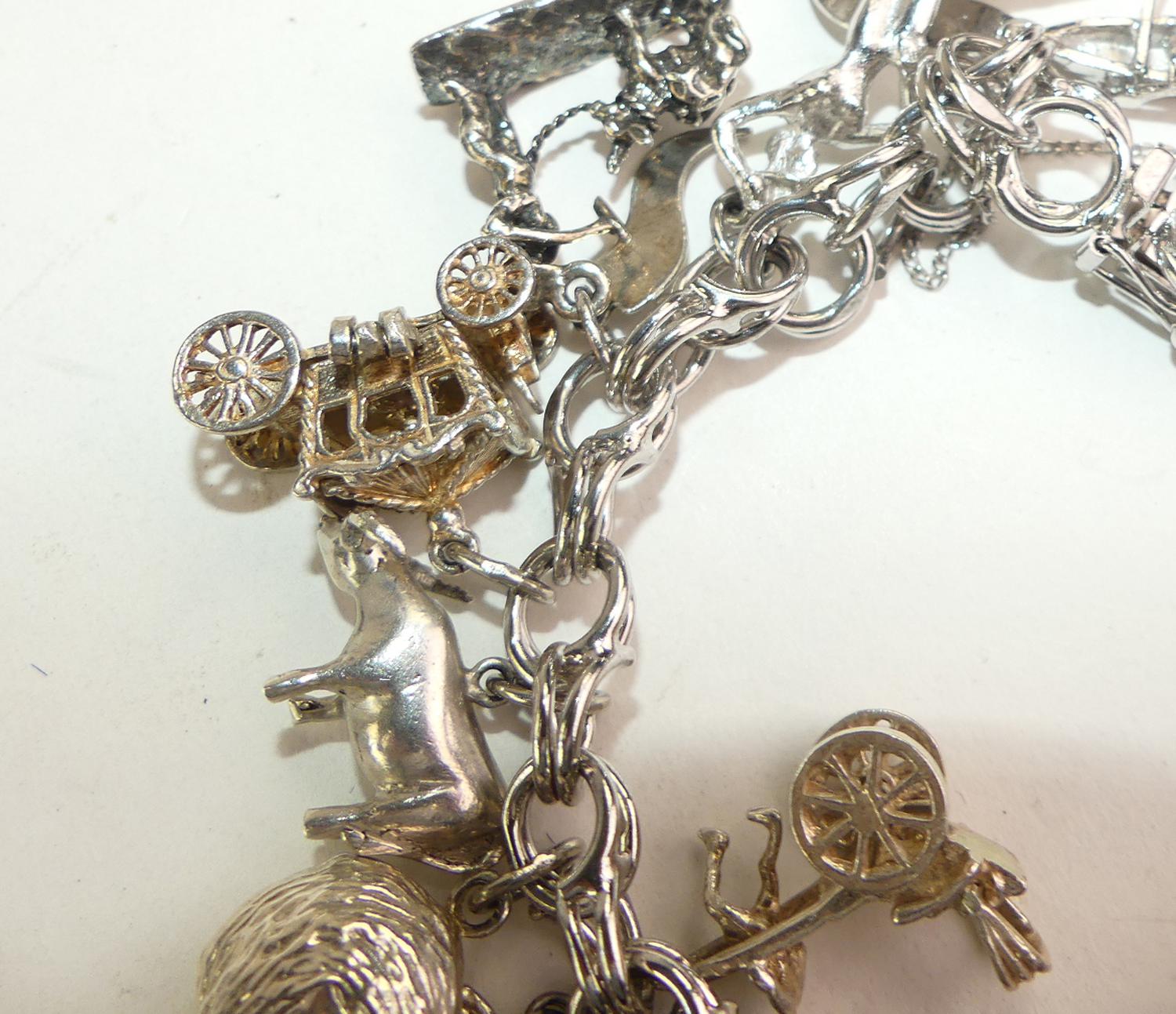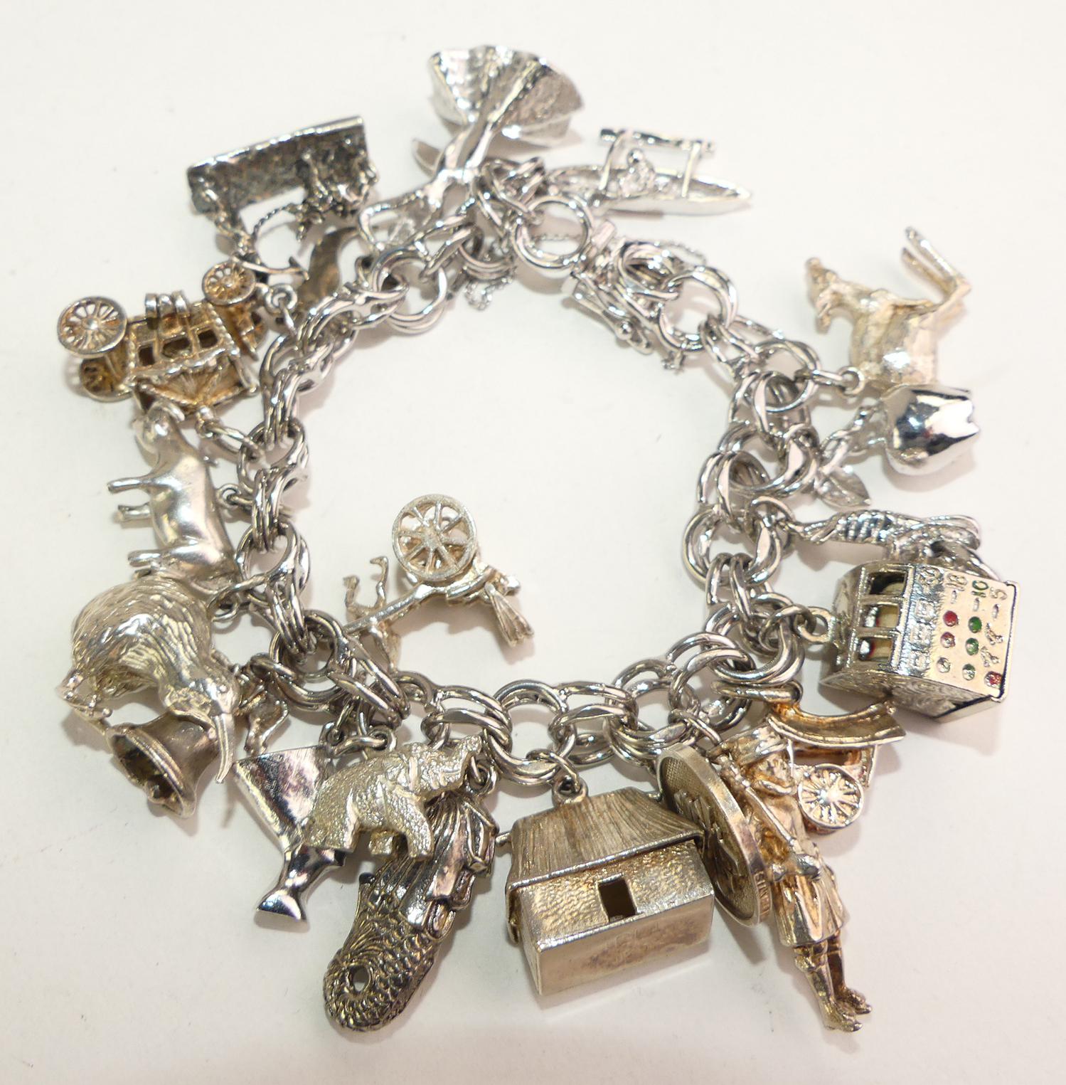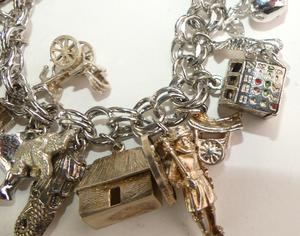 vintage heavy sterling silver charm bracelet, length 7", weighing approx 96.1 grams