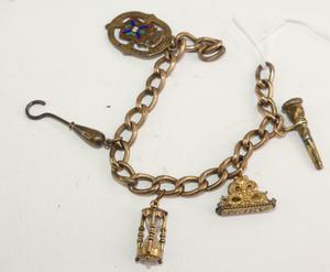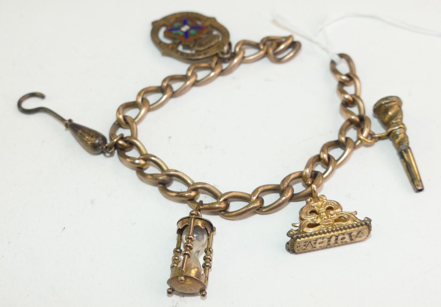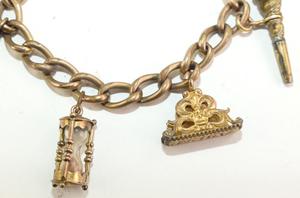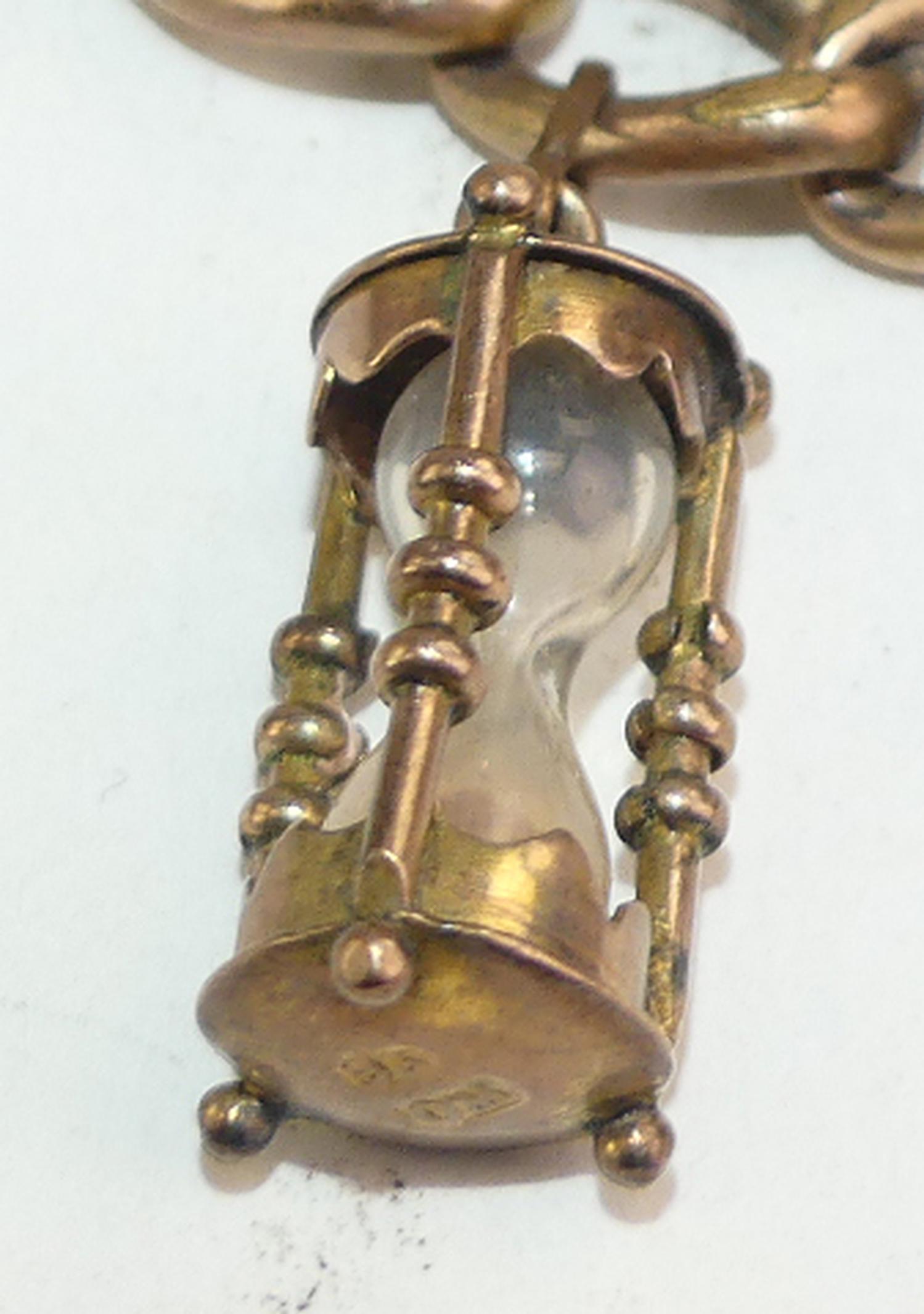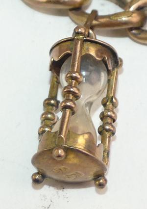 victorian gold filled charm bracelet, length 7" no closure, 9k pink gold hourglass charm