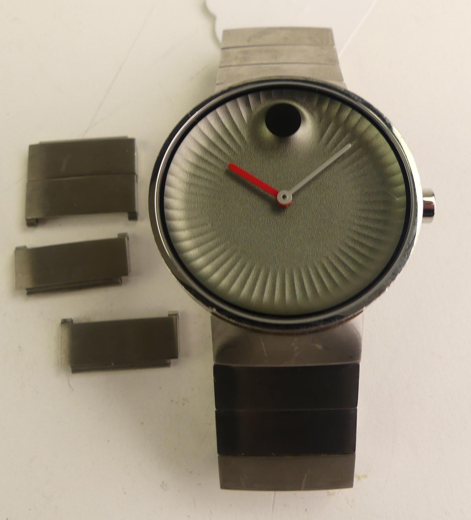 gents movado edge watch, with extra bracelet links, bracelet 7 1/2"