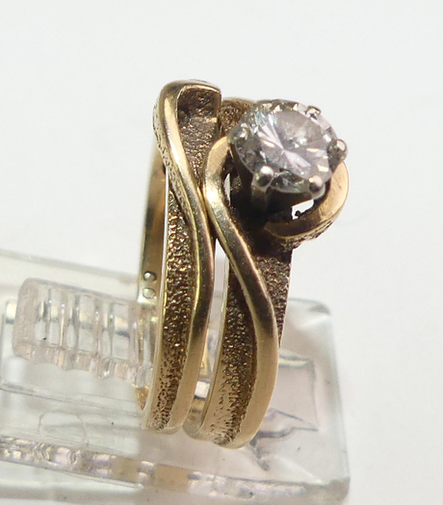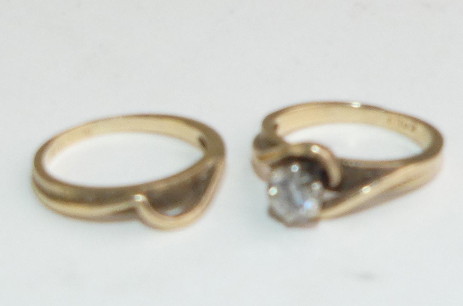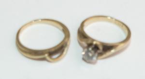 14k gold interlocking wedding ring and band, 0.5cts, 4.2 grams