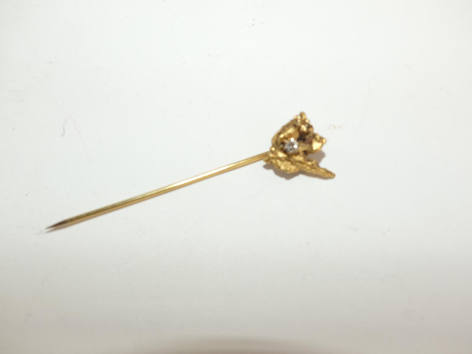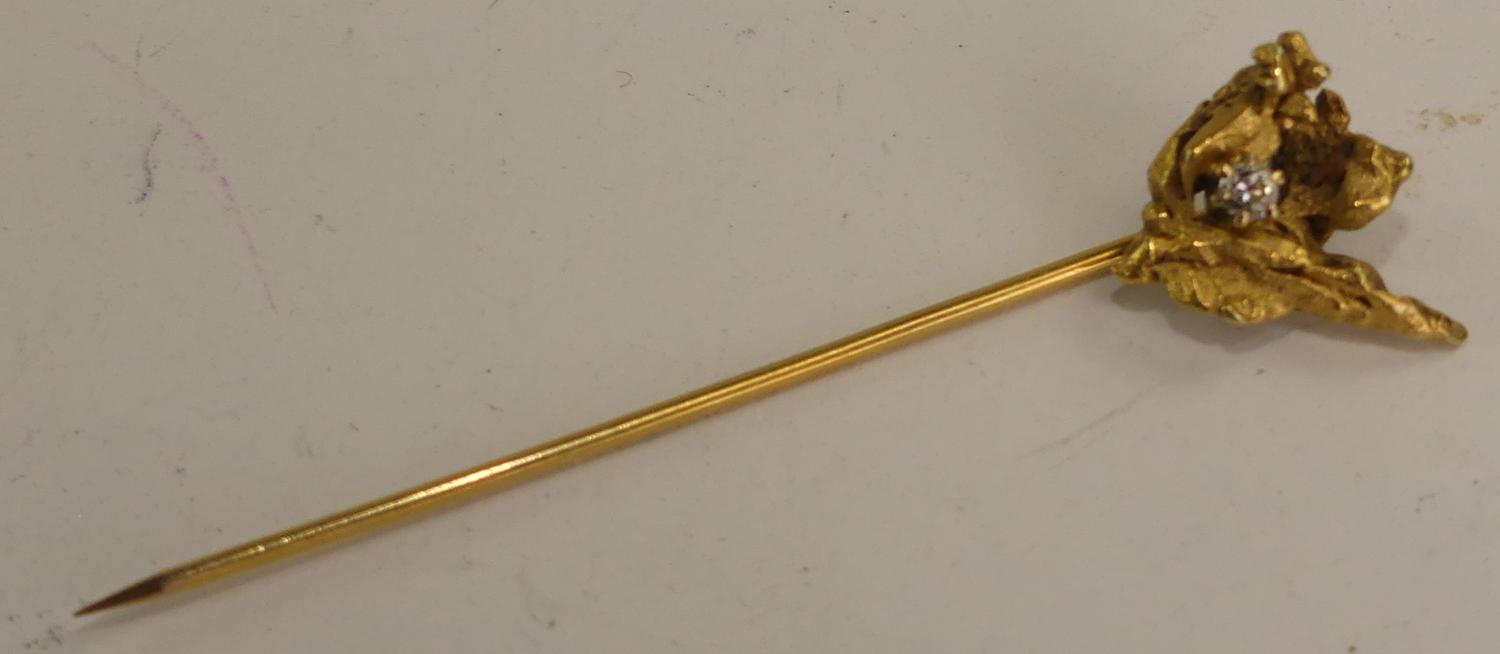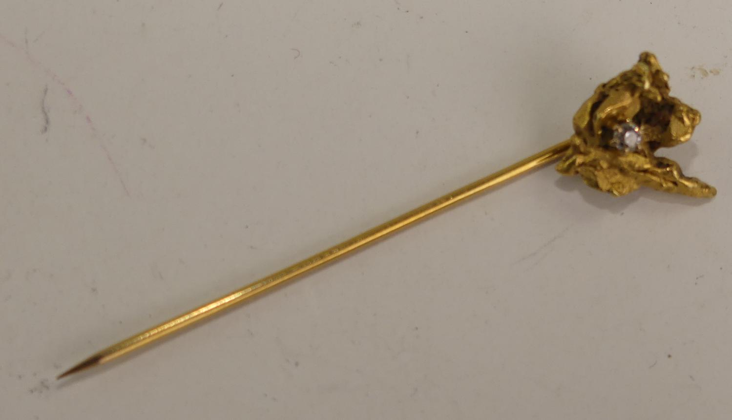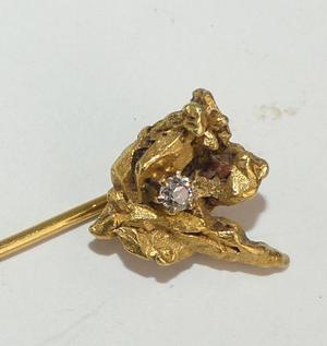 14k mounted gold nugget diamond stickpin, weighing approx 3.0 grams