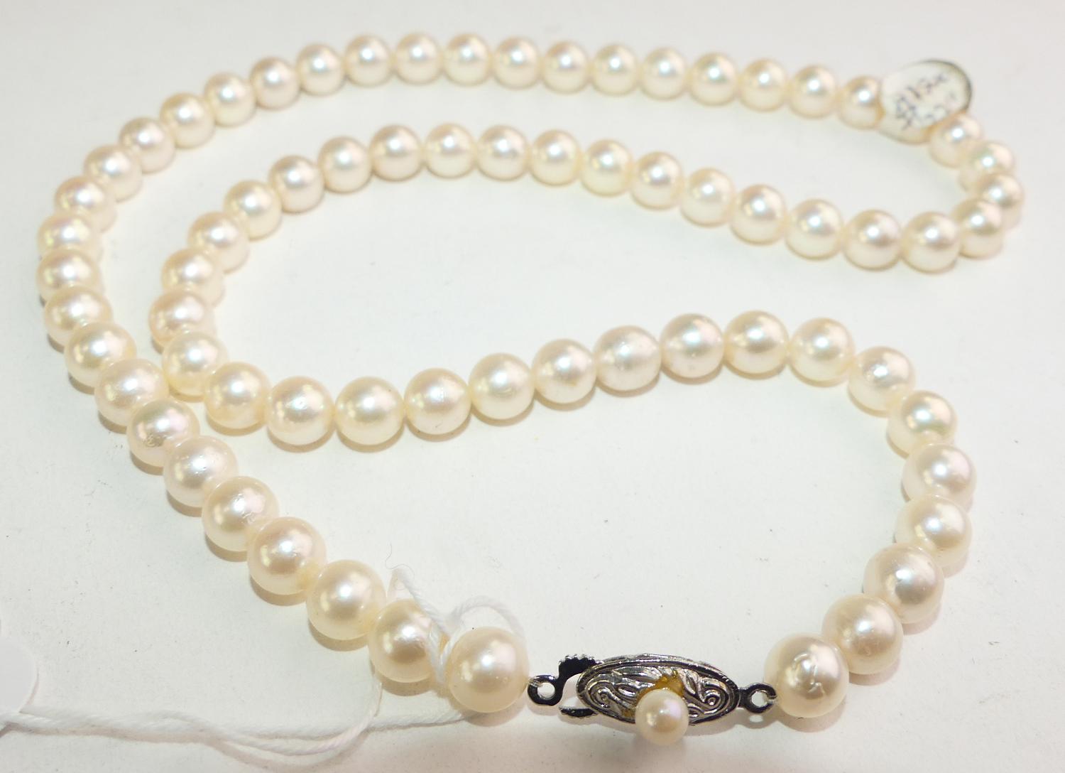 pearl necklace with sterling silver closure, 21"