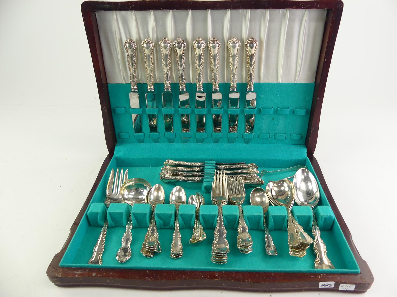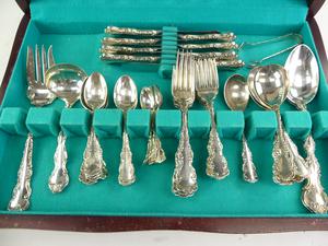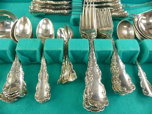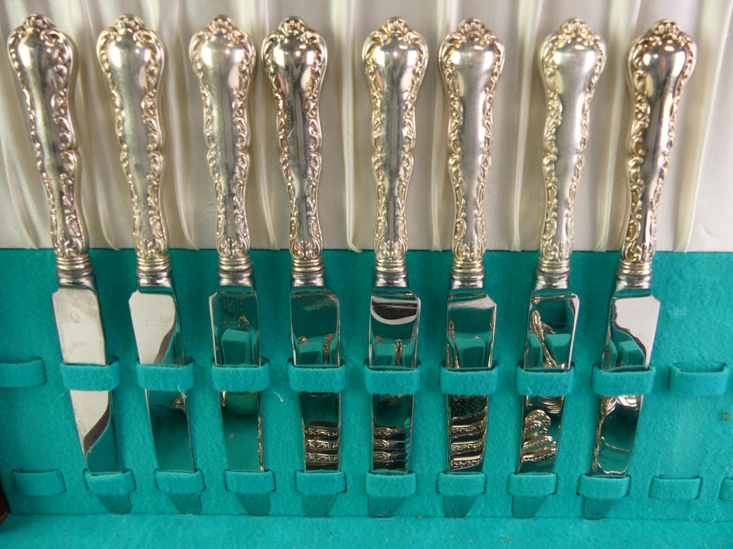 set of birks sterling and birks regency plate richelieu pattern flatware, 1,061 grams of weighable sterling silver plus 8 sterling handled dinner knives and 8 sterling handled butter knives