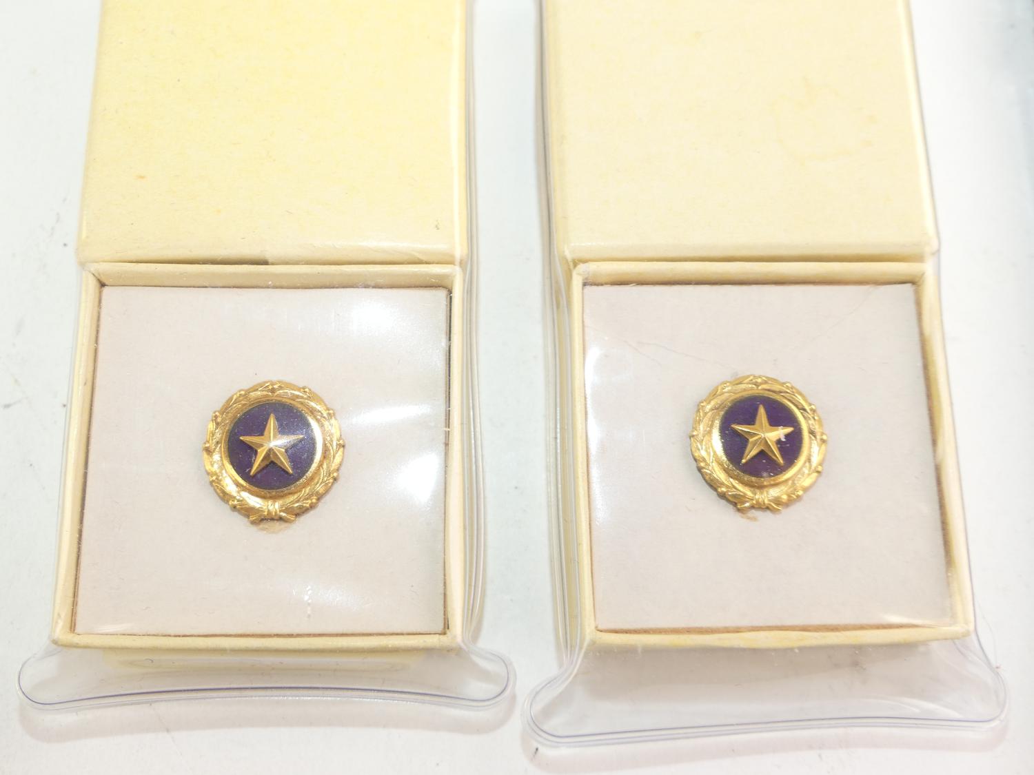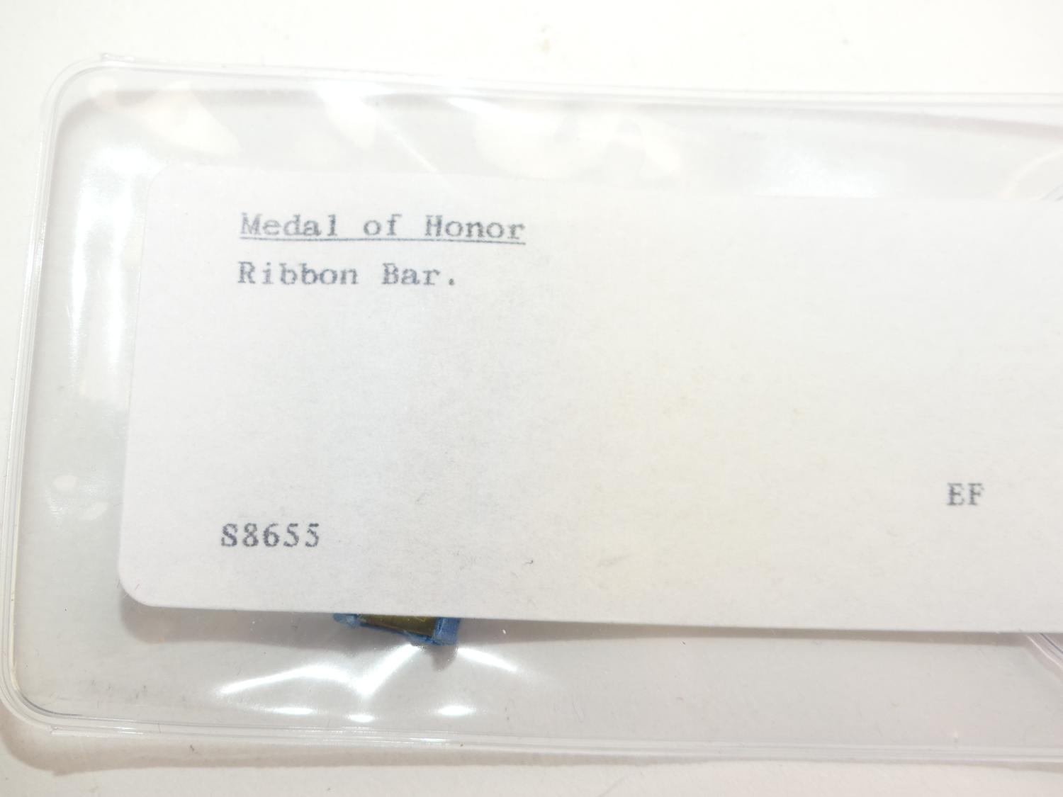 us military medal miniatures, ribbons and pins. medal of honor miniature x 1; medal of honor ribbons x 9; gold star lapel pins x 2.