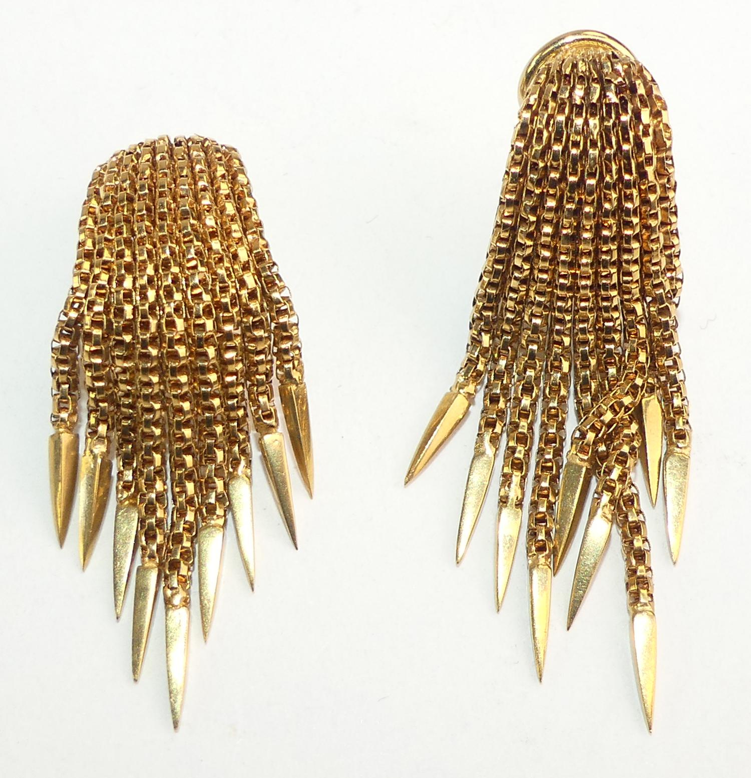 18k yellow gold tassel earrings, weighing approx 18.6 grams