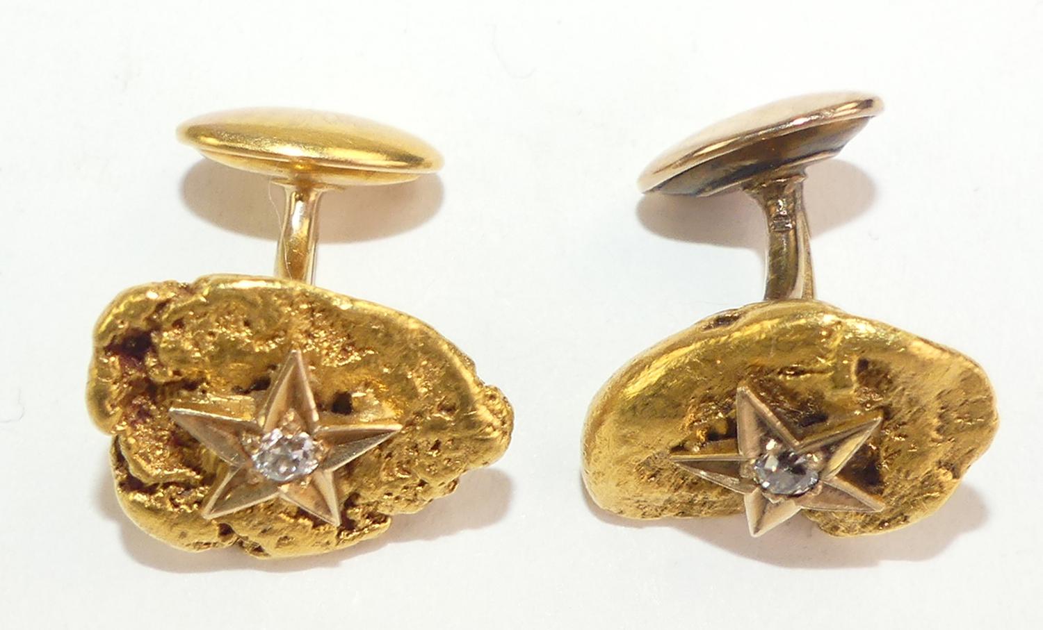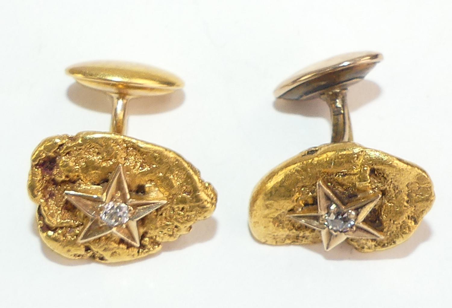 pair of gold nugget and diamond cufflinks, weighing approx 12.4 grams