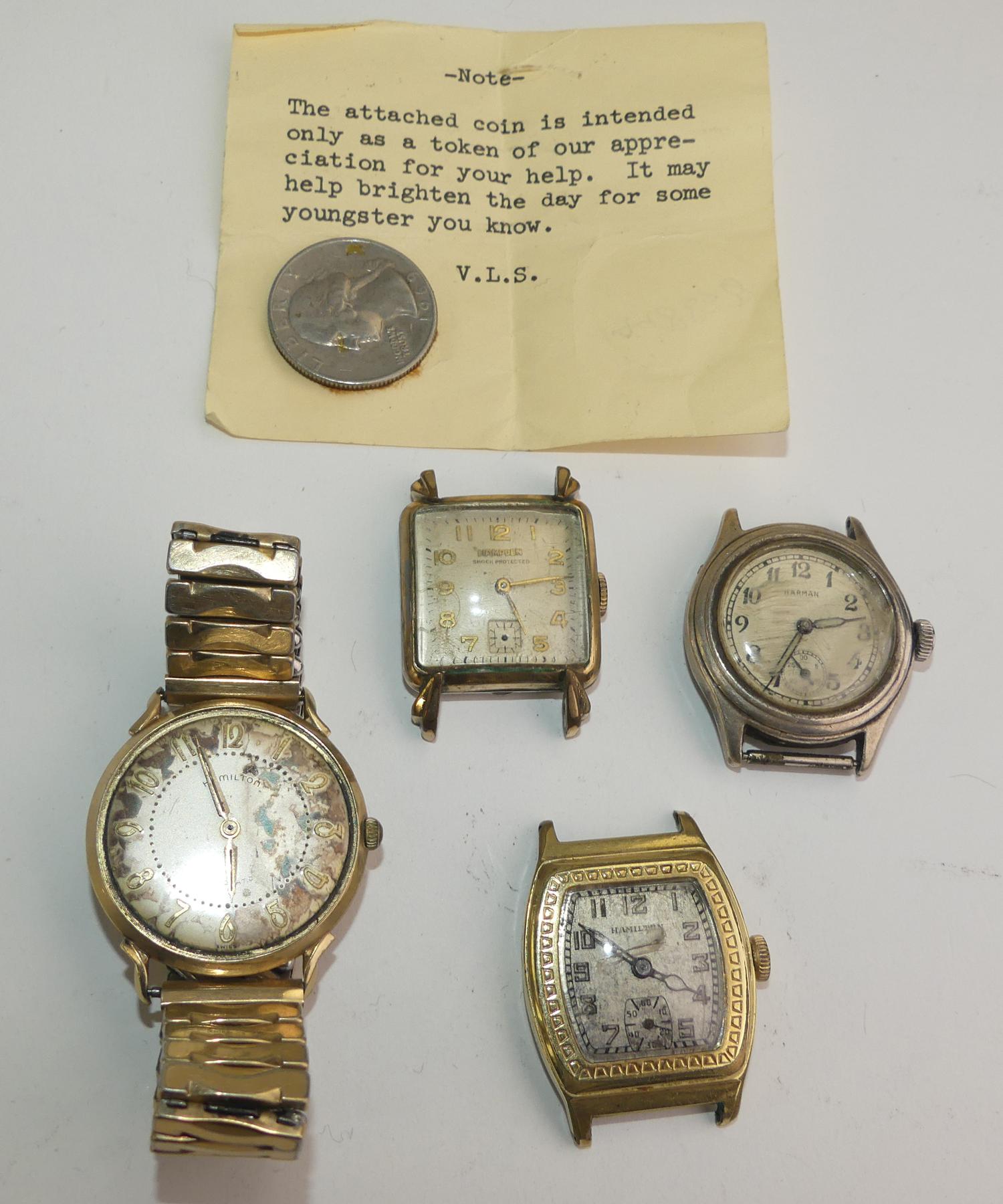 condition noted, gold filled, Hamilton missing crystal,
