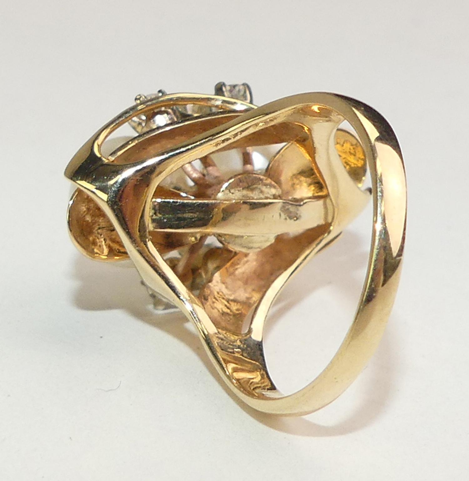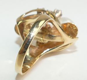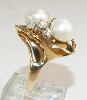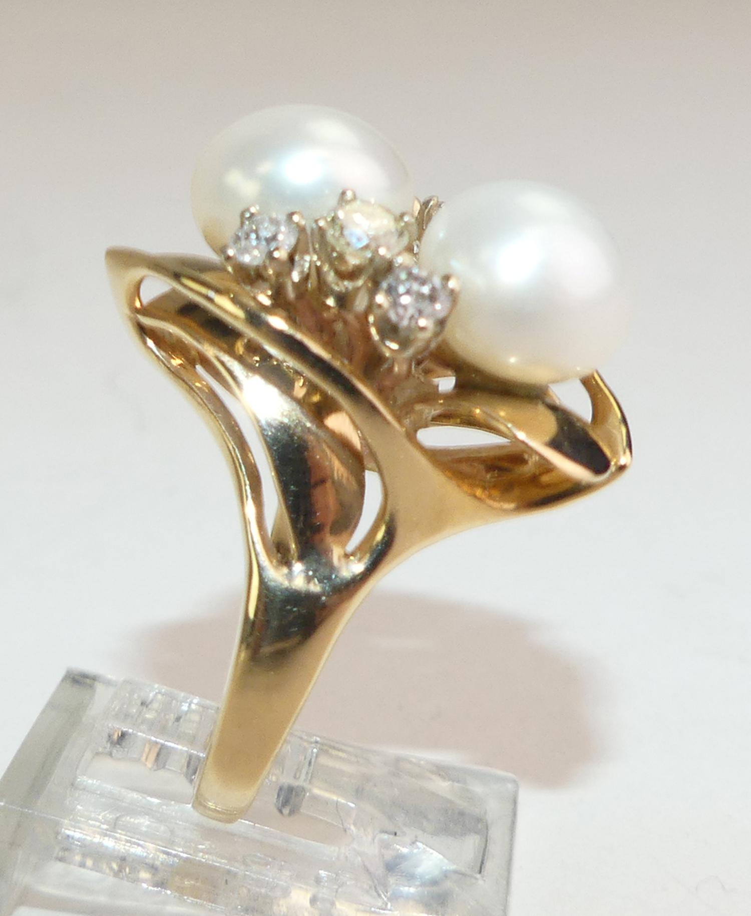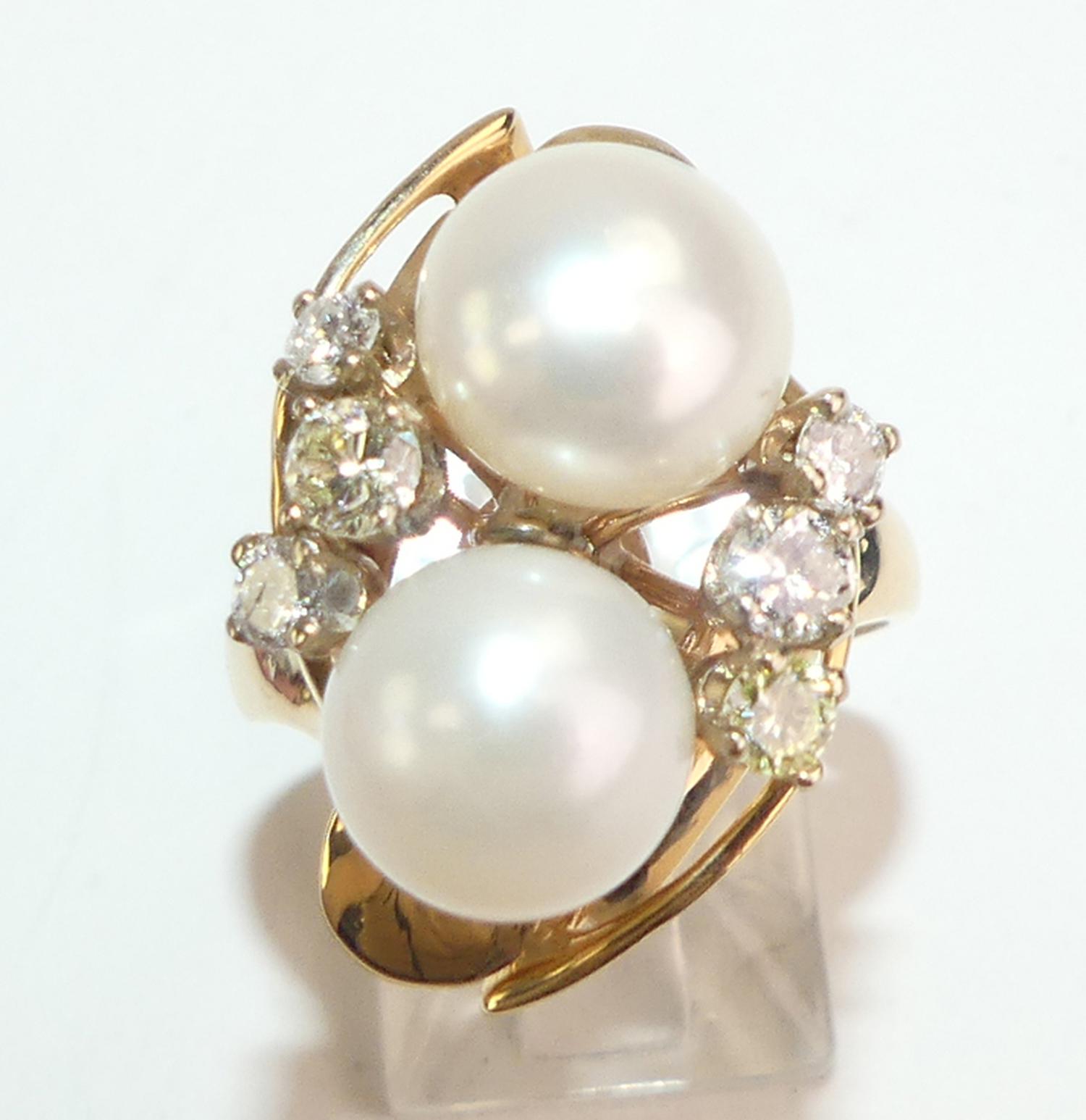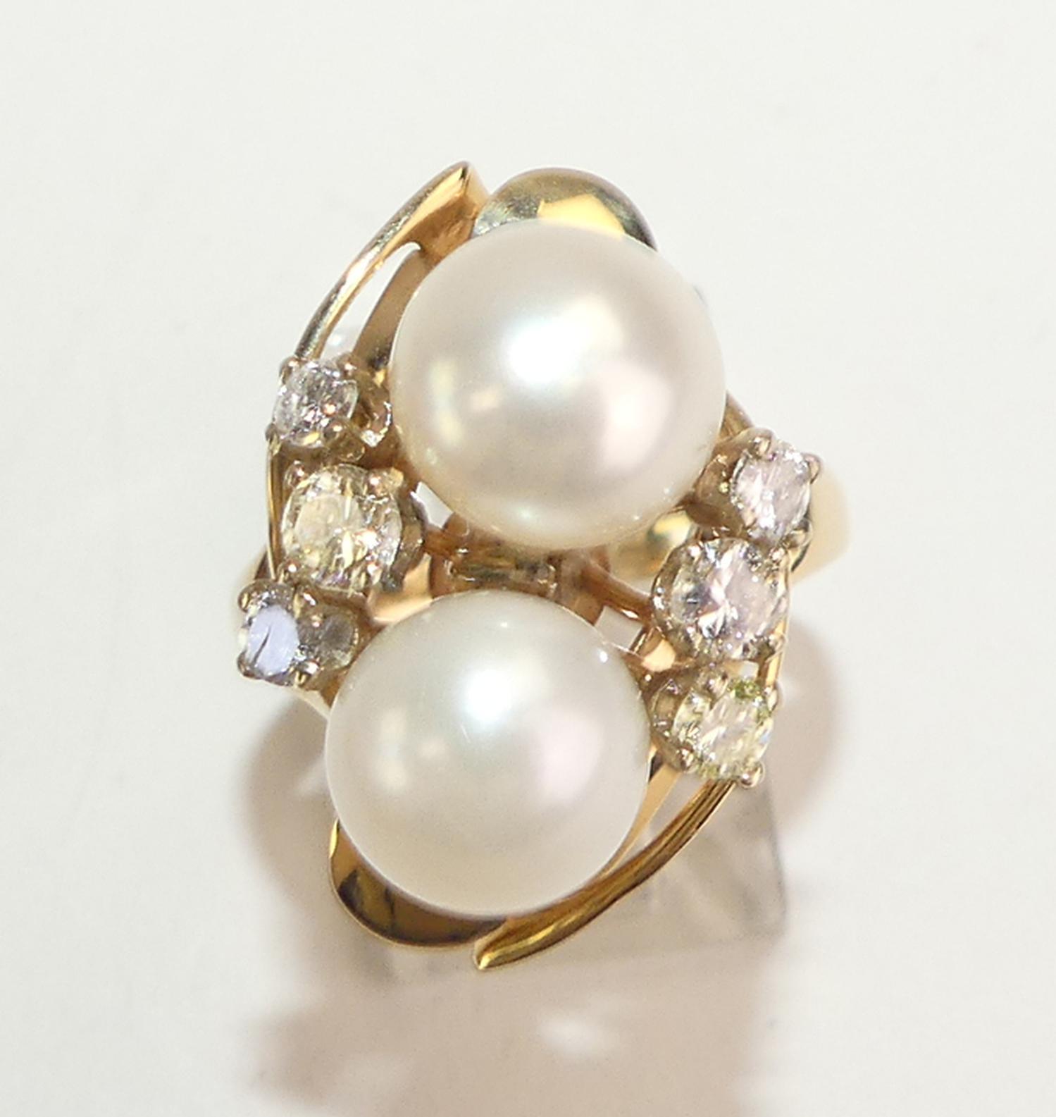 14k yellow gold pearl and diamond ring, size 6, 9.3mm pearl
