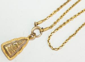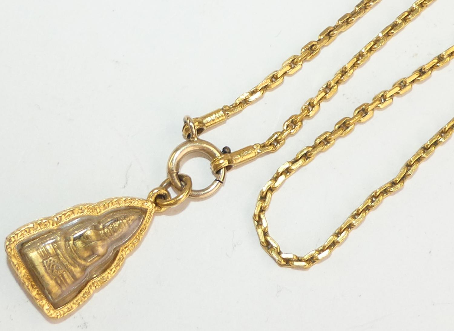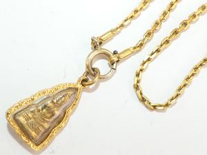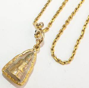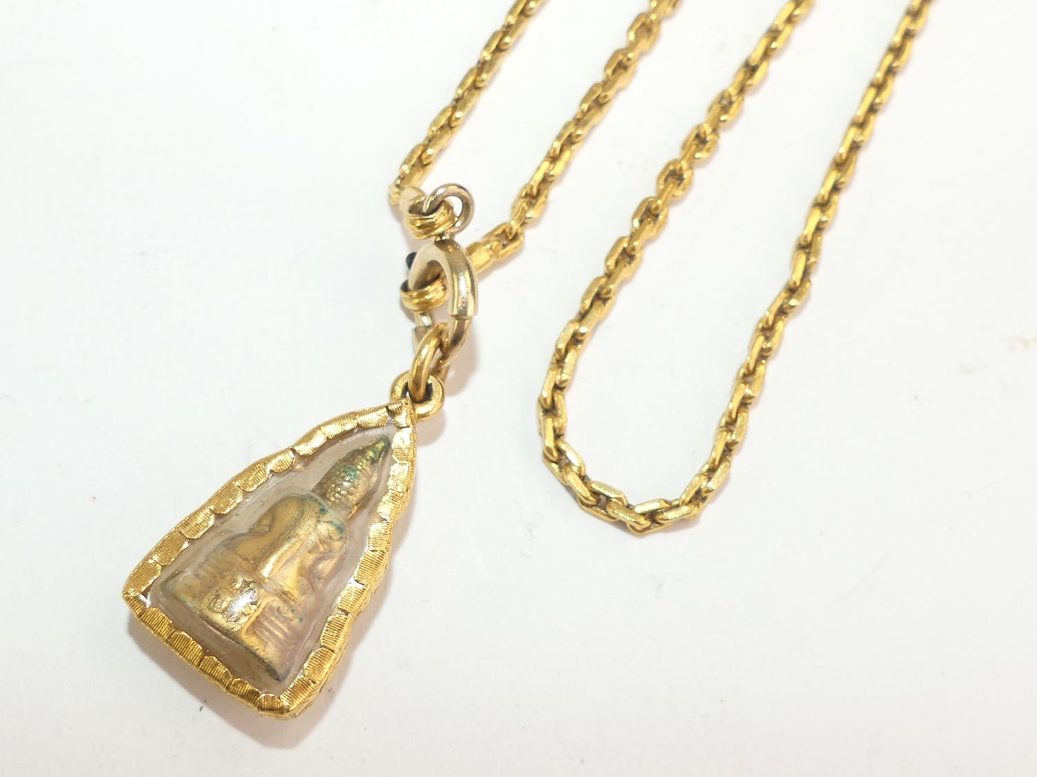 Chain alone weighs approx 29.1, buddha weighing approx 4.8 grams, replaced bail is 10K marked