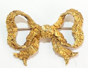 19th century gold nugget bow brooch, stamped native gold nuggets, weighing approx 9.2 grams