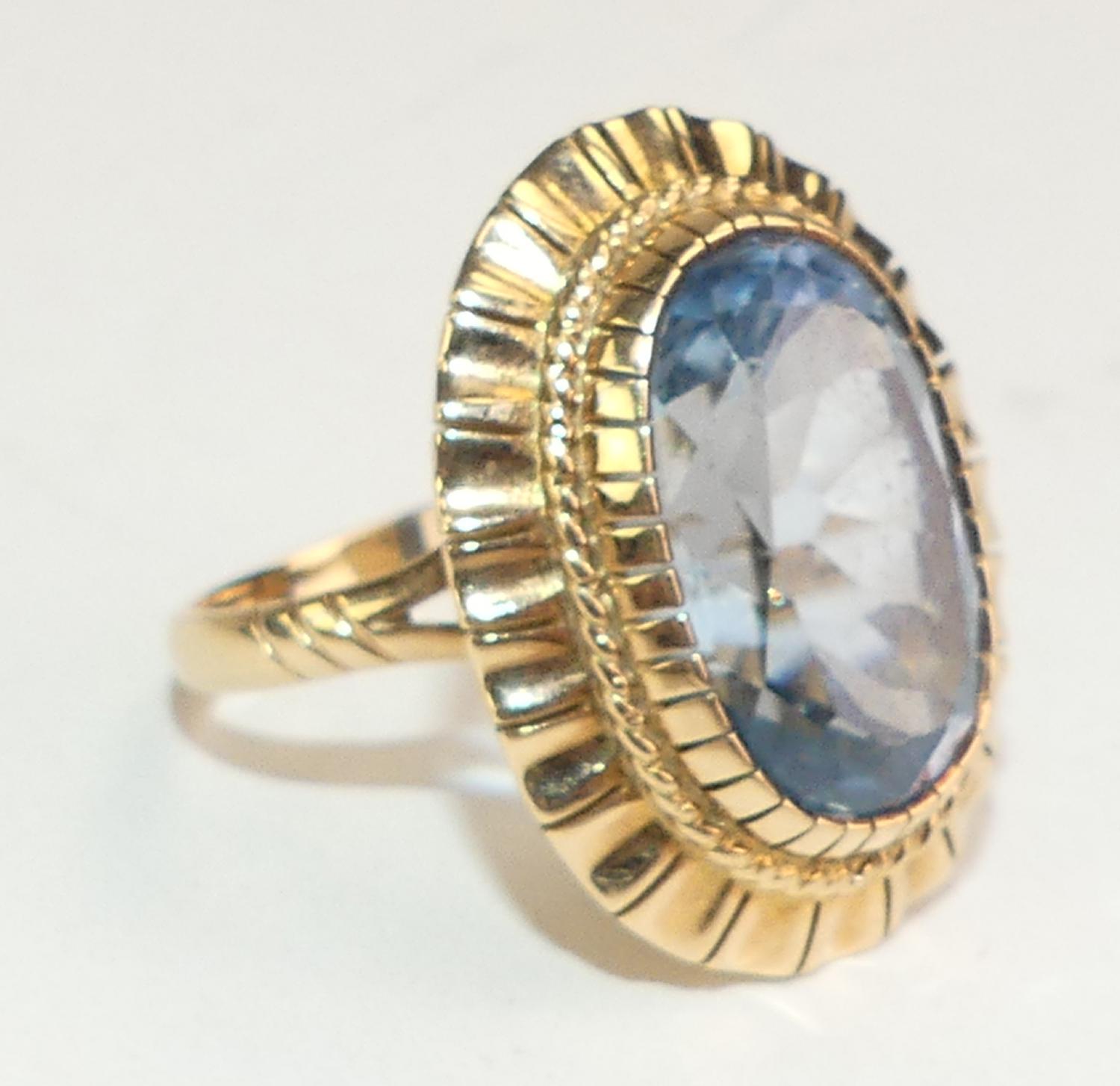 14k yellow gold synthetic spinel ring, size 6 3/4