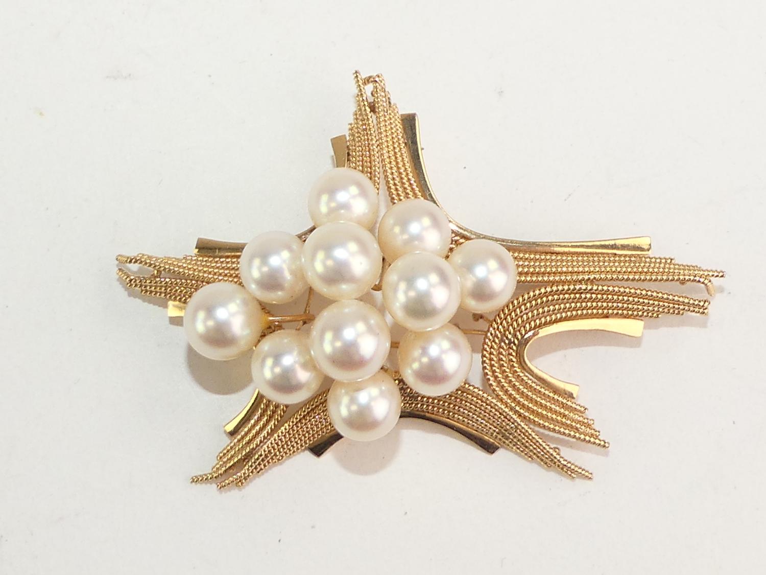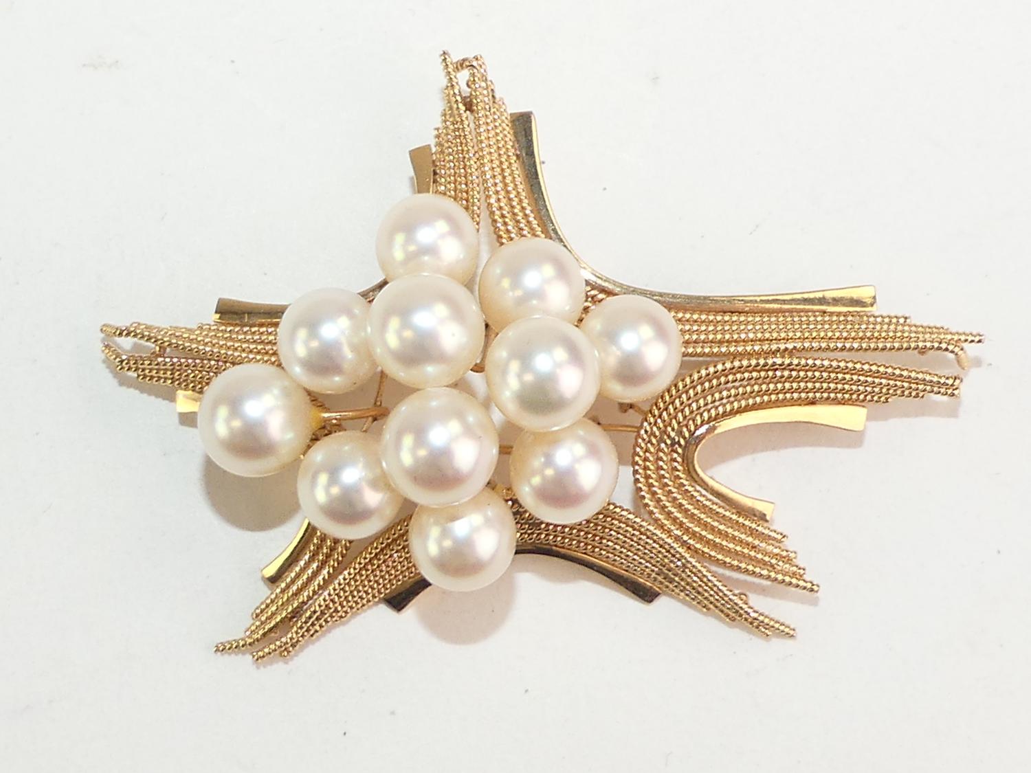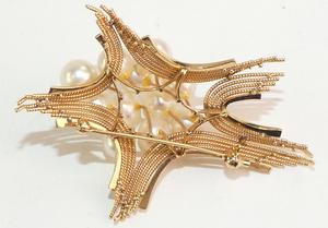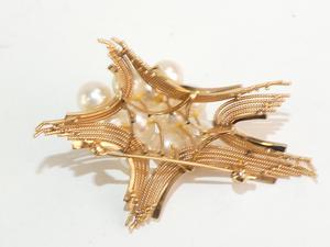 14k pink gold pearl brooch, 2 1/2"