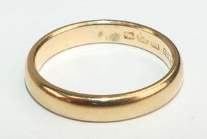 18-14k wedding band ring, size 6, weighing approx 3.5 grams