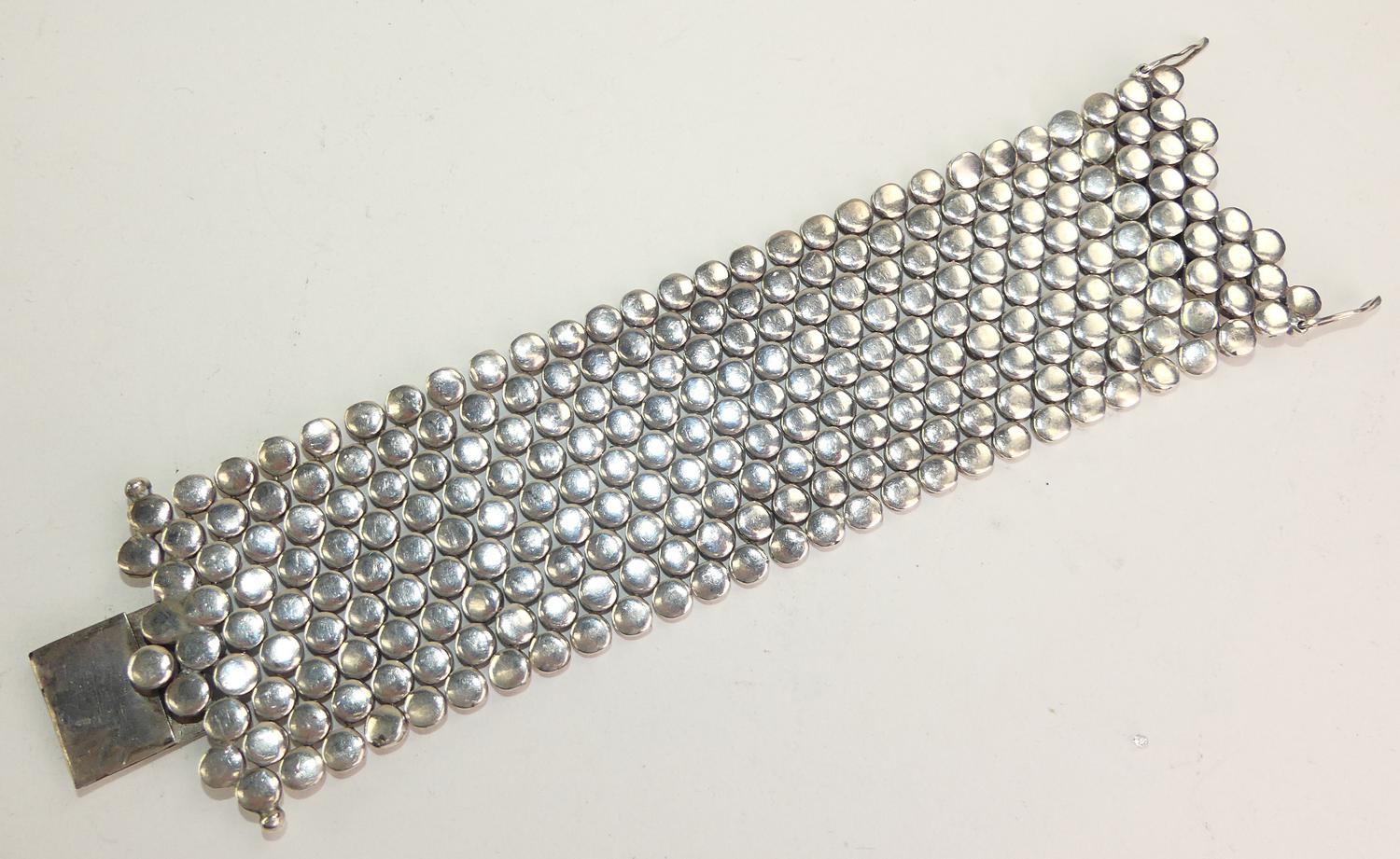 wide mexican sterling silver bracelet, length 7 1/2", weighing approx 202.4grams