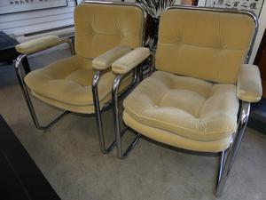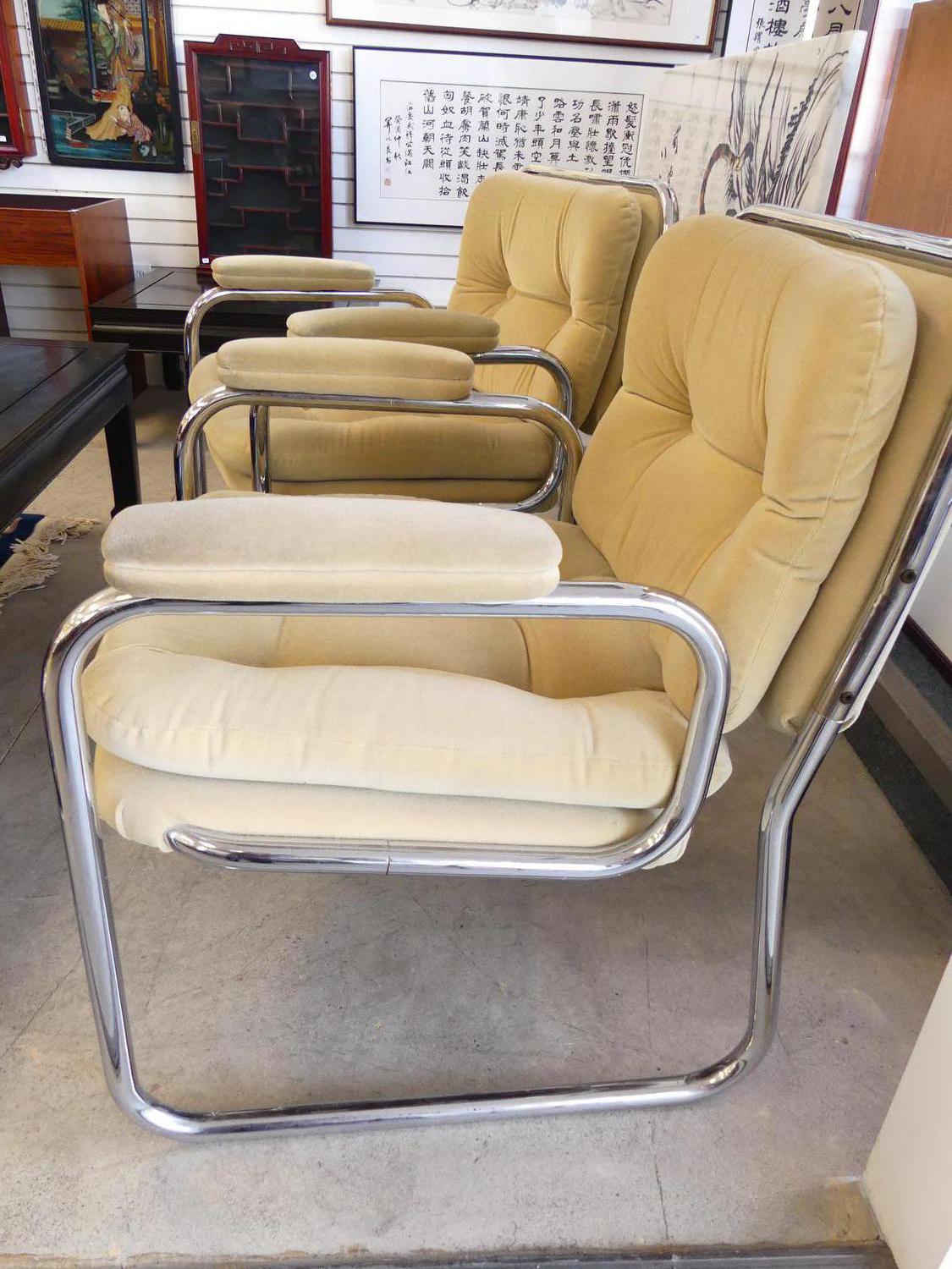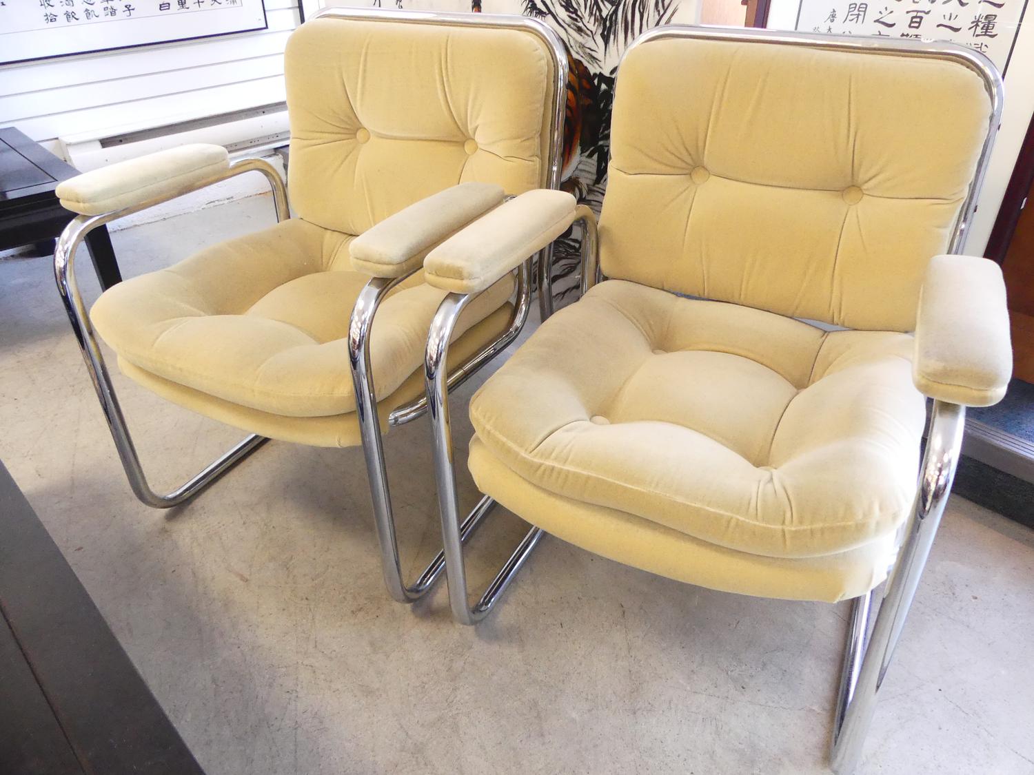 pair of upholstered tubular steel armchairs, circa 1980