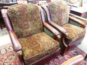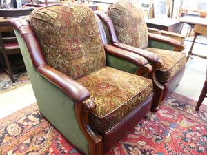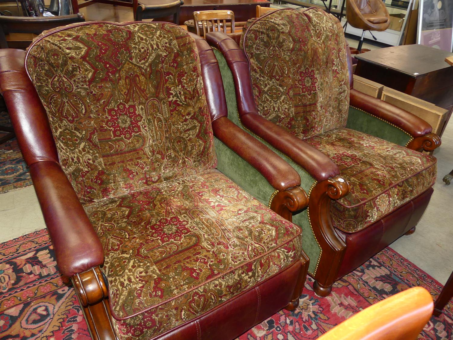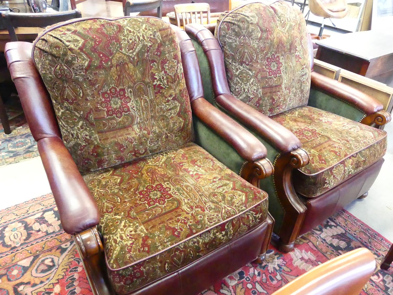 pair of upholsterd armchairs with mechanized footrest, purchased at jordans interiors
