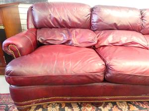 oxblood leather sofa with close nail studds, purchased at jordans interiors